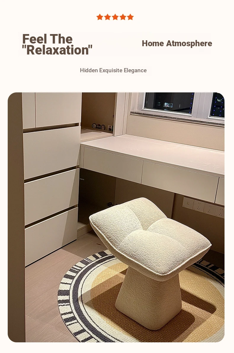 Designer Creative Makeup Vanity Table with Stool - Versatile Low Stool for Living Room and Balcony, Rotatable Shoe Changing Bench, Perfect for Nail Art and Makeup Sessions