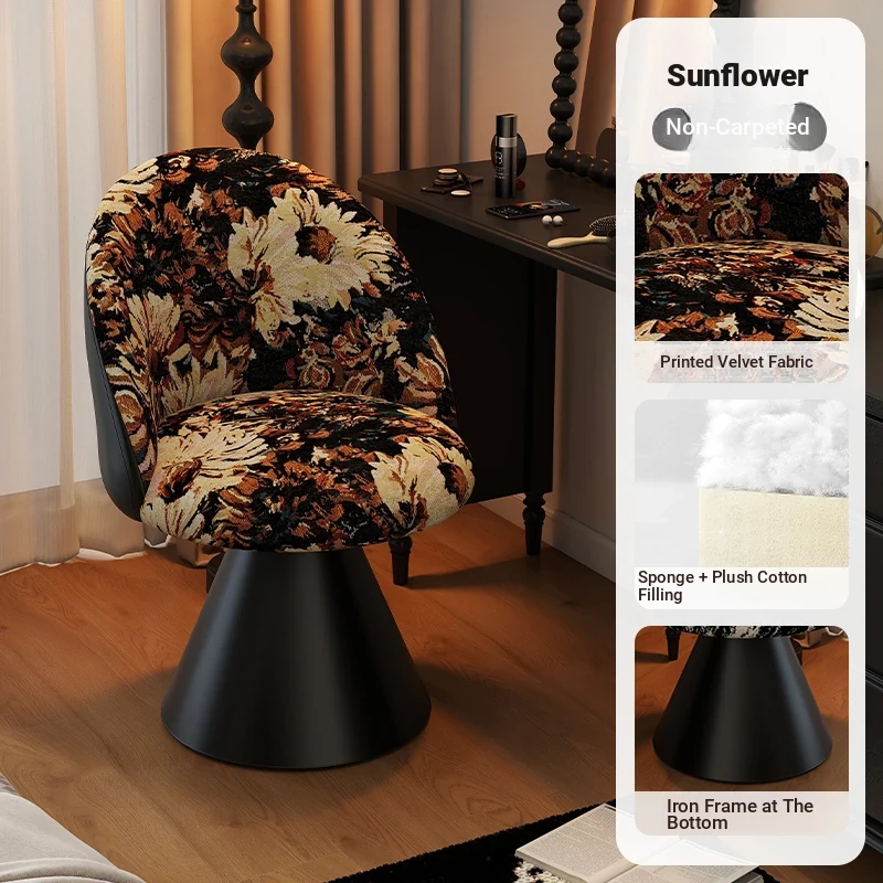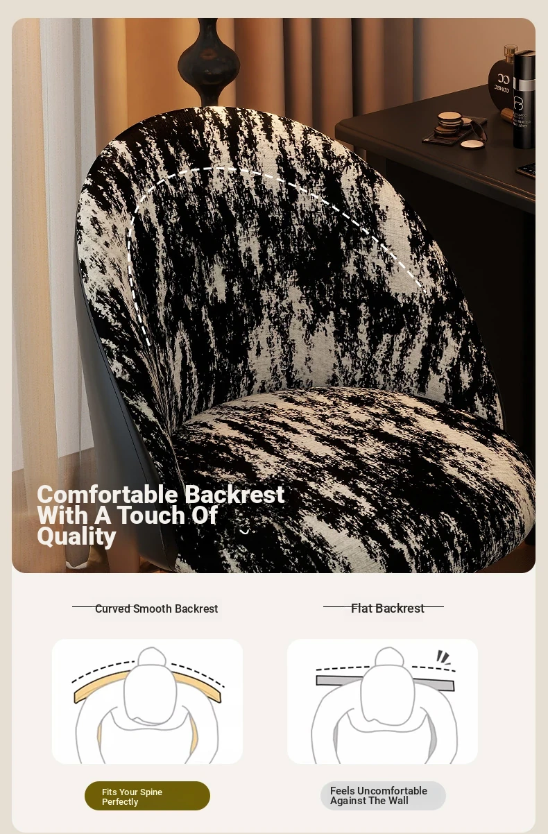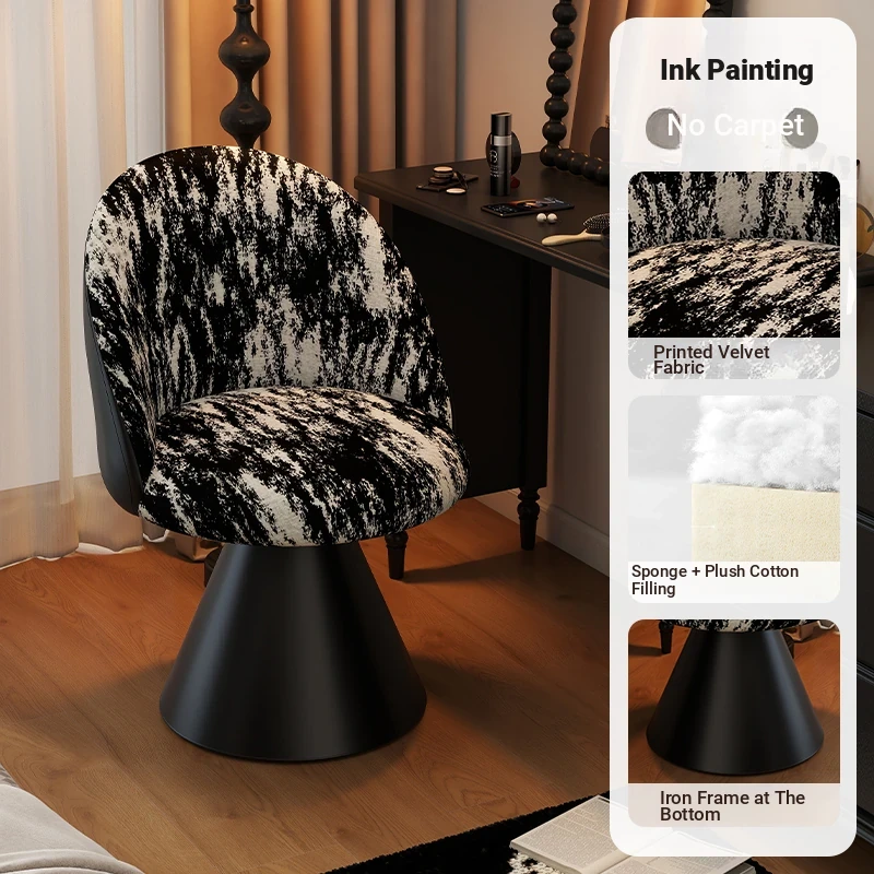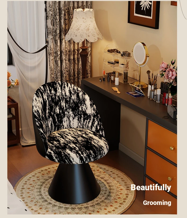 Elegant Bedroom Makeup Chair for Women - High-End Rotatable Dressing Stool with Backrest, Perfect for Vanity Use, Stylish and Comfortable Home Makeup Seat