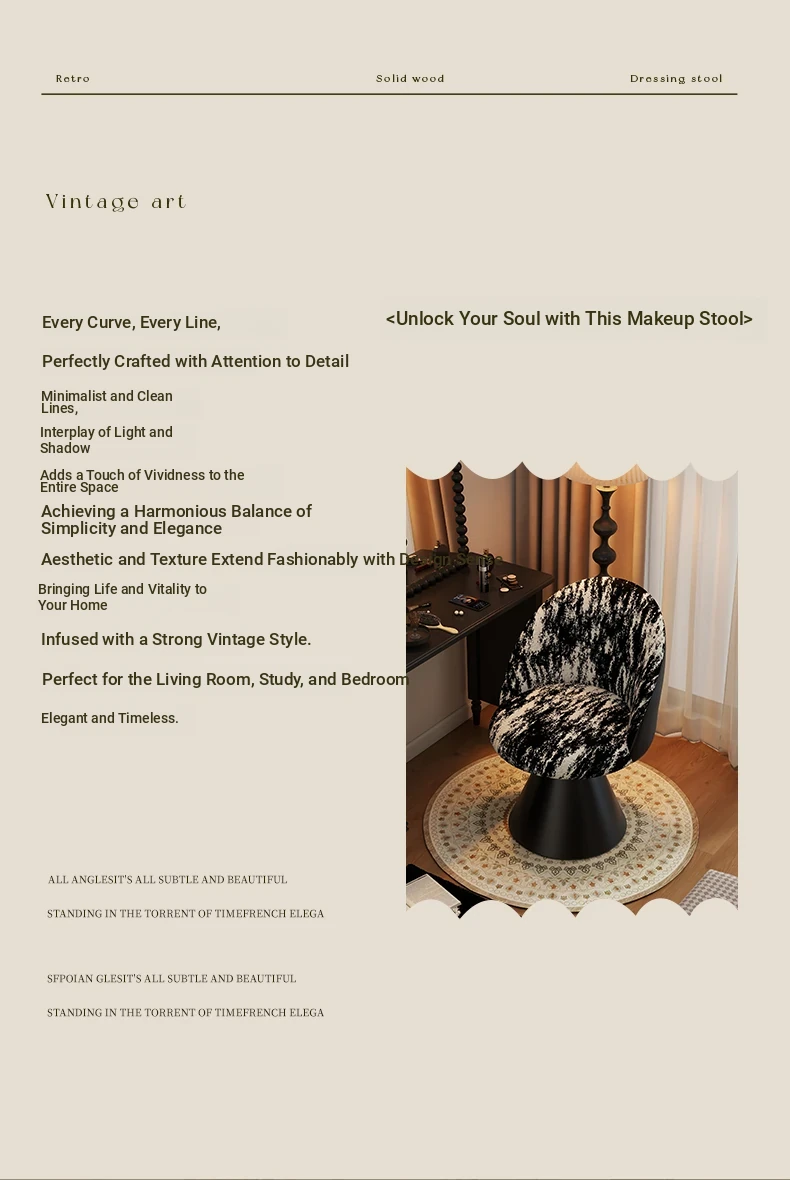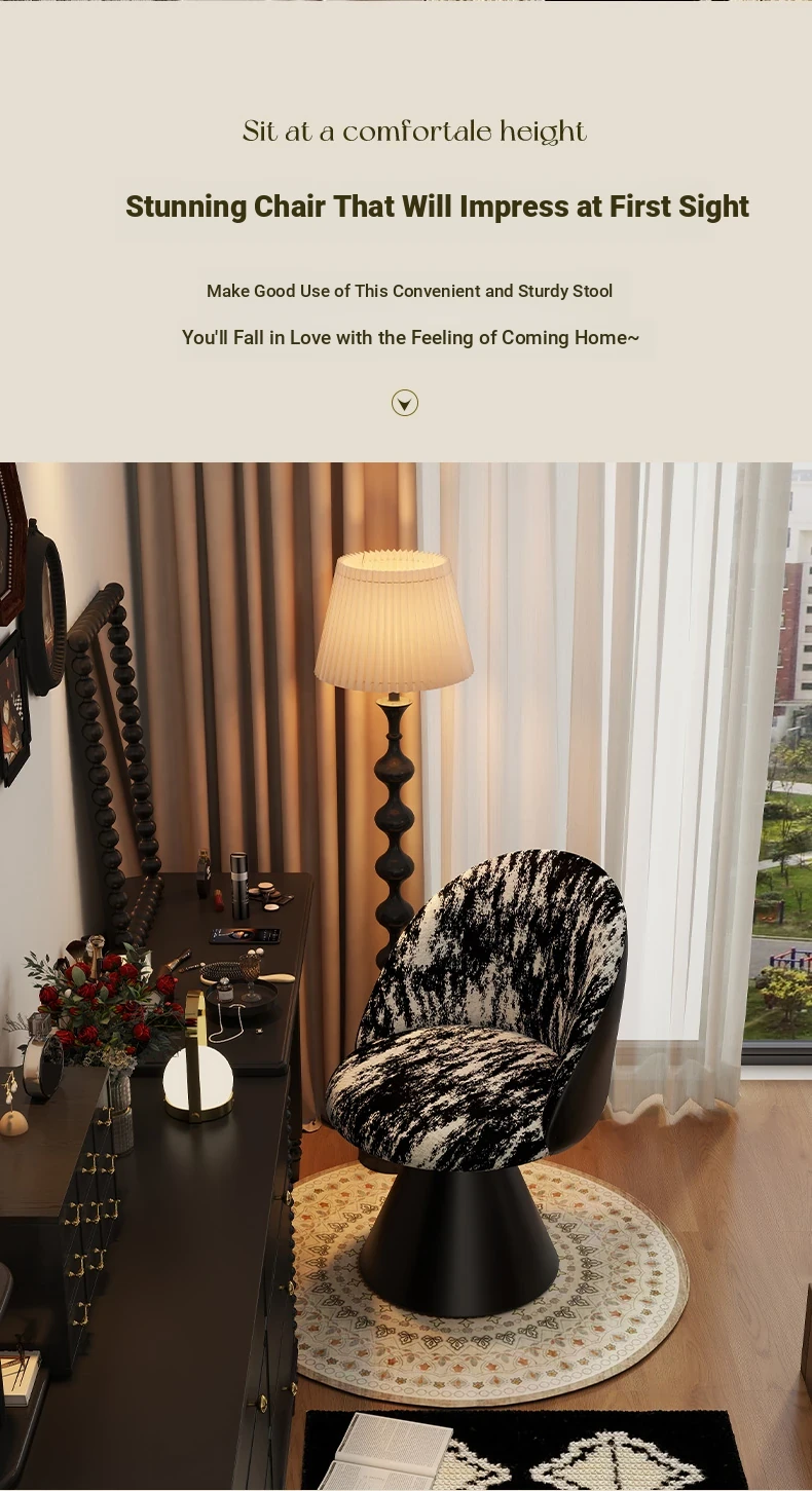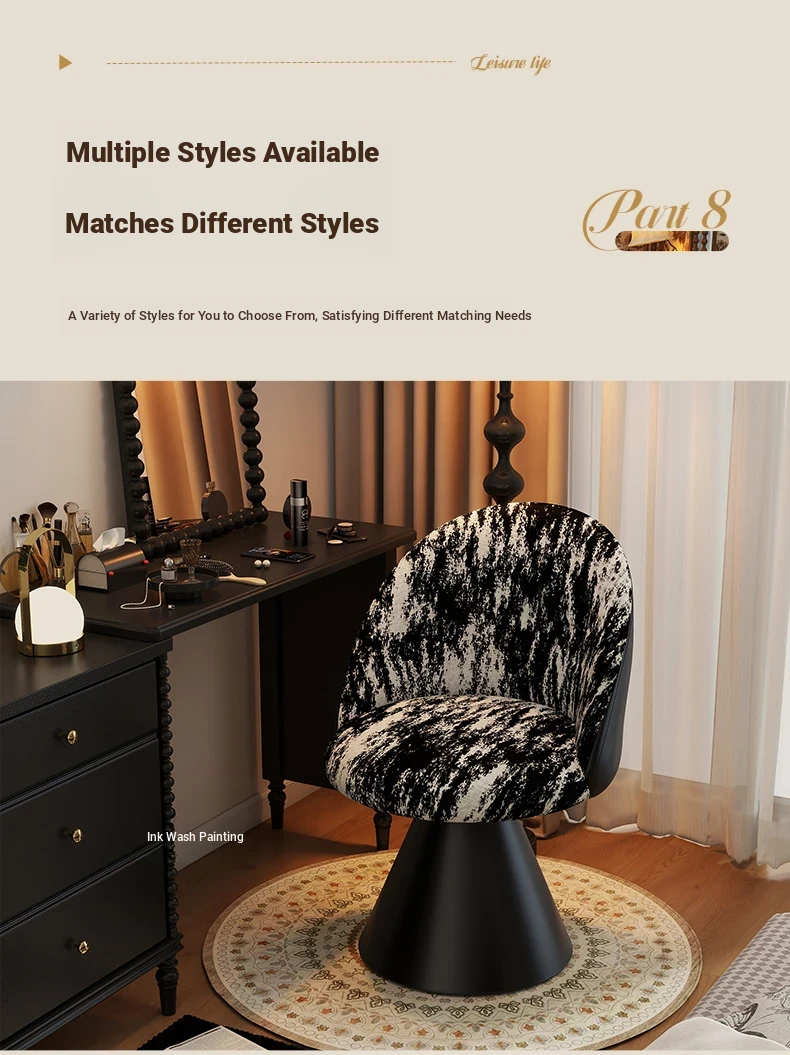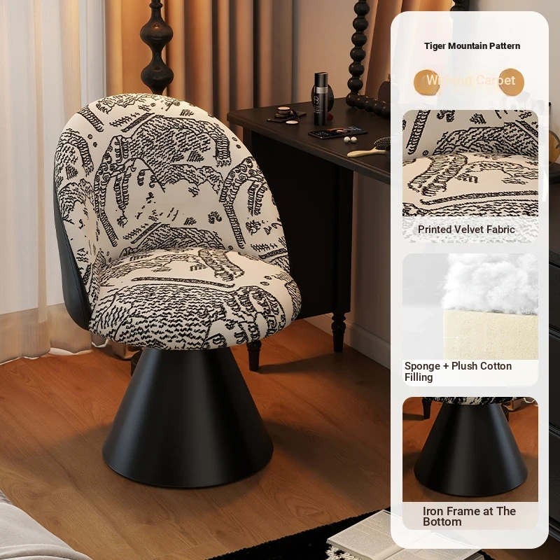 Elegant Bedroom Makeup Chair for Women - High-End Rotatable Dressing Stool with Backrest, Perfect for Vanity Use, Stylish and Comfortable Home Makeup Seat