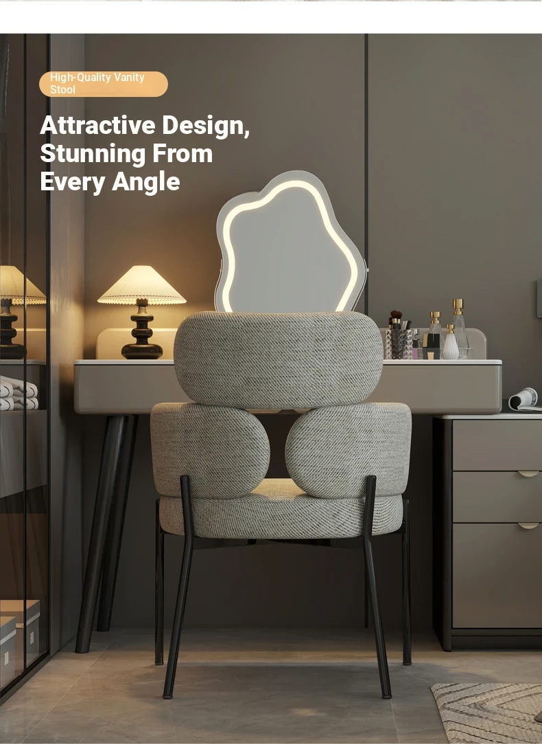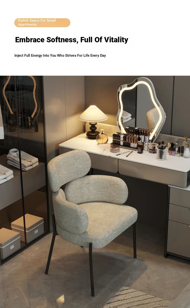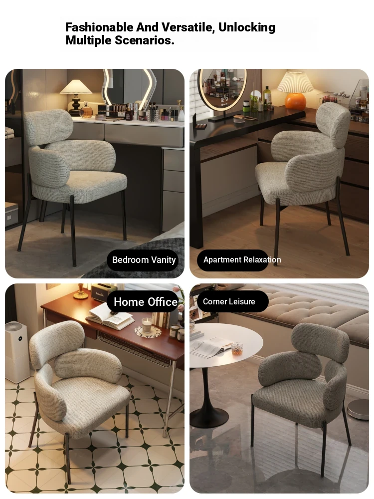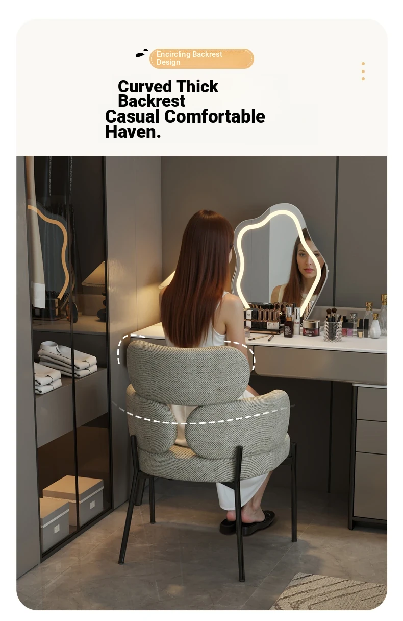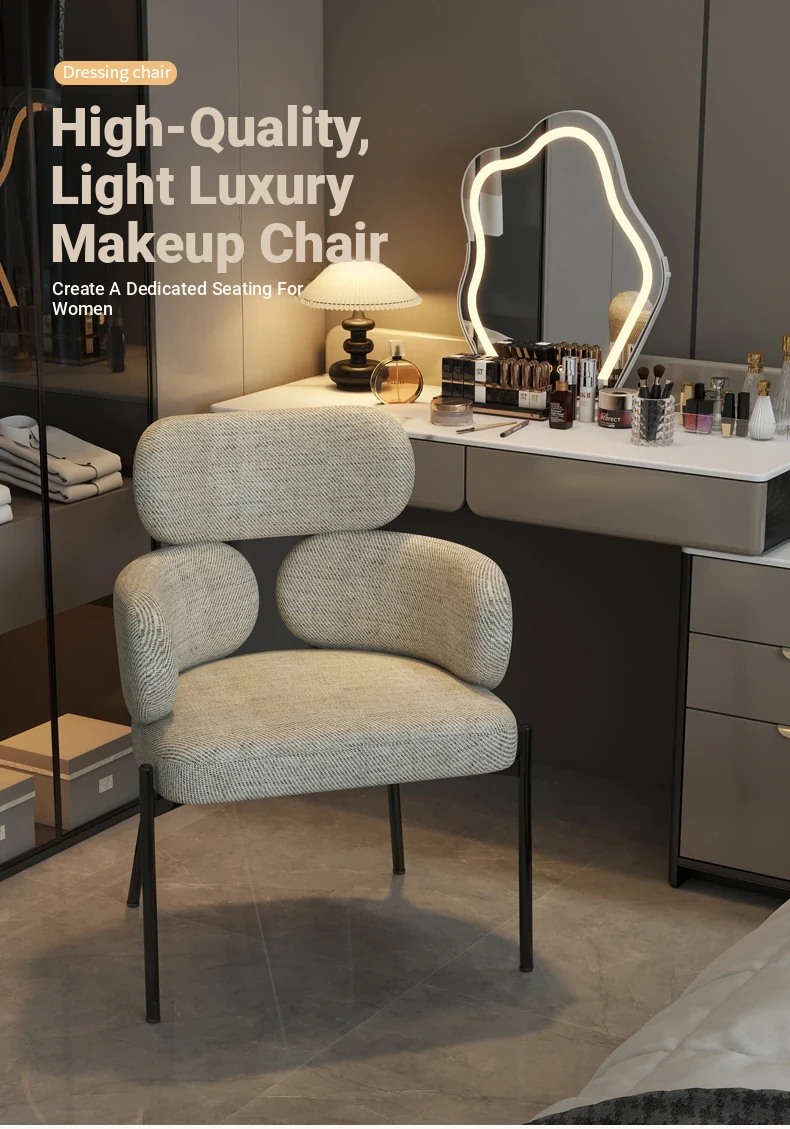 Elegant Makeup Chair for Home Bedroom - Luxurious Dressing Table Stool with Backrest, Ideal for Wardrobe and Nail Art, Single Sofa Design