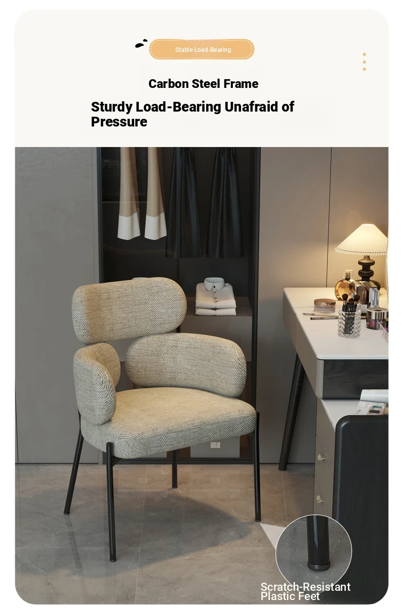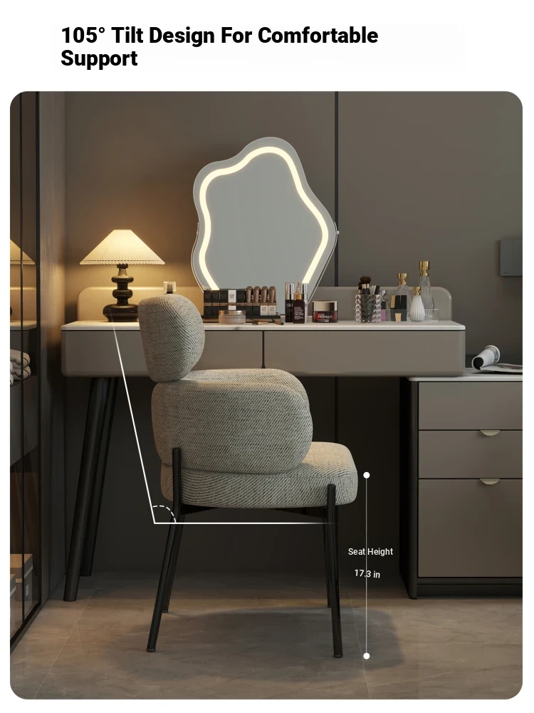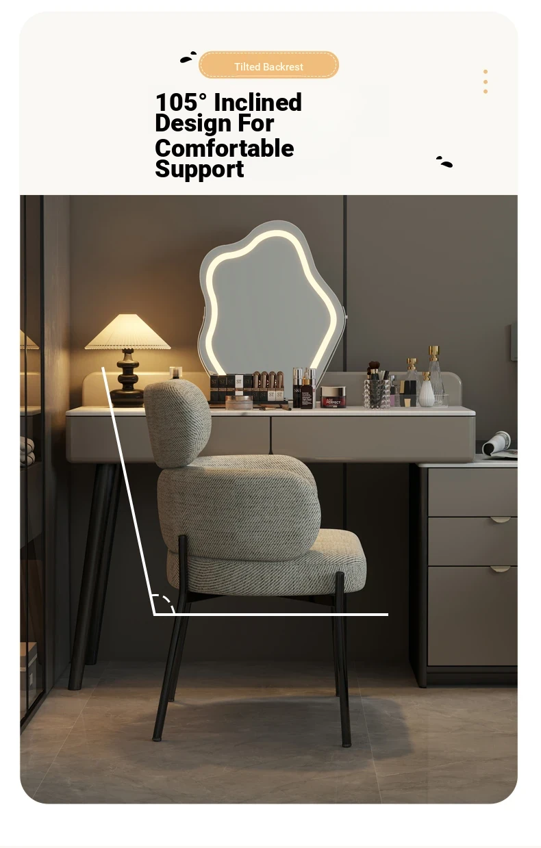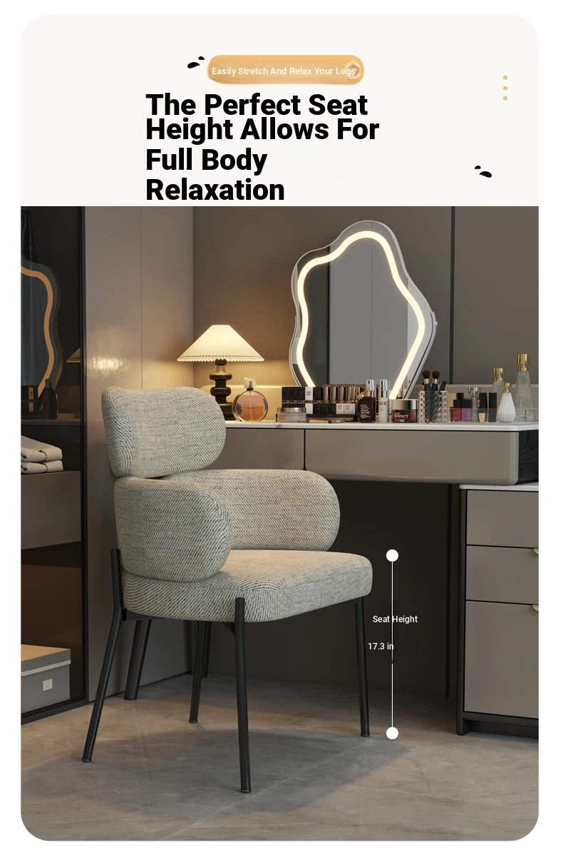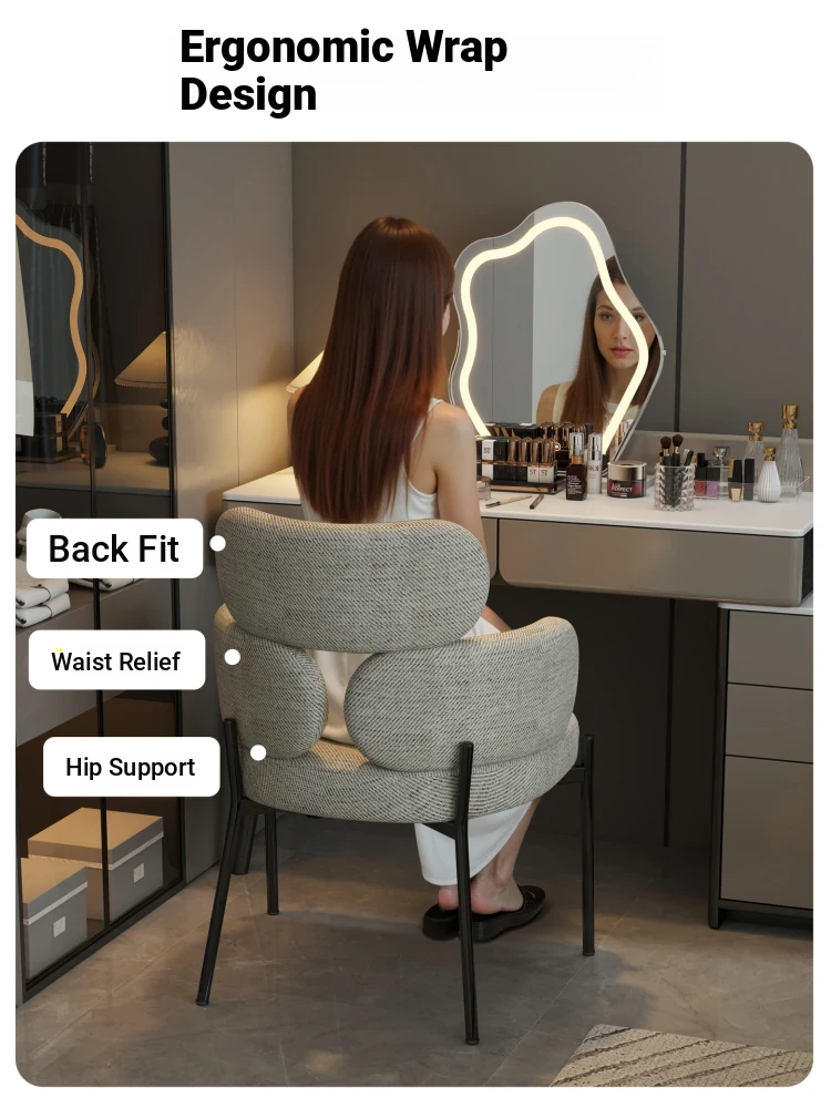 Elegant Makeup Chair for Home Bedroom - Luxurious Dressing Table Stool with Backrest, Ideal for Wardrobe and Nail Art, Single Sofa Design