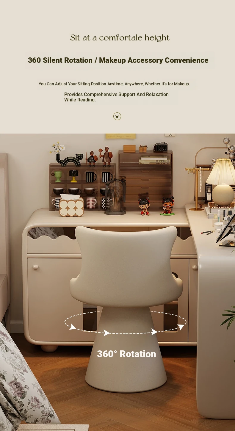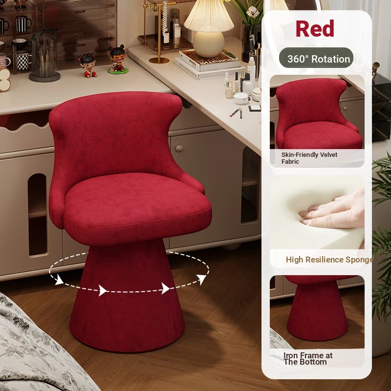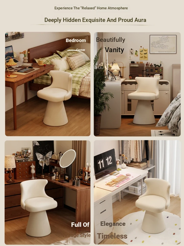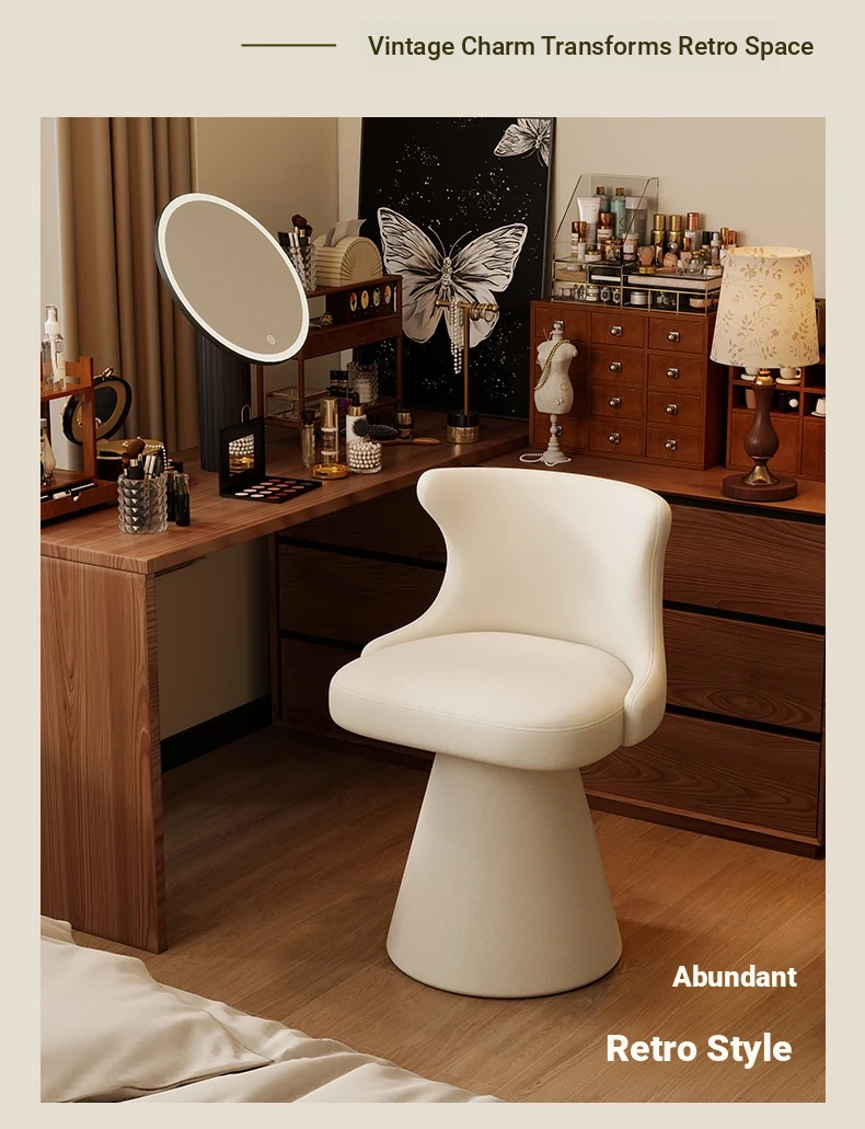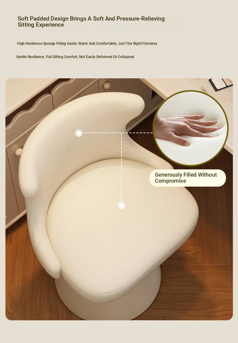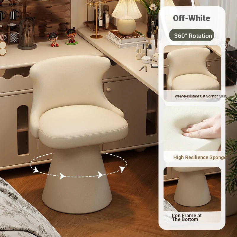 Elegant Makeup Stool for Women - Stylish Rotating Vanity Chair for Bedroom and Dressing Room, Chic Italian-Inspired Design with Backrest, Perfect for a Luxurious Touch!