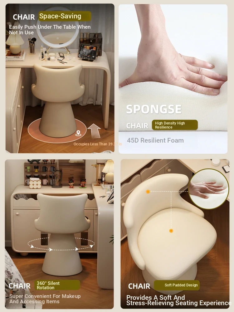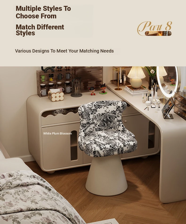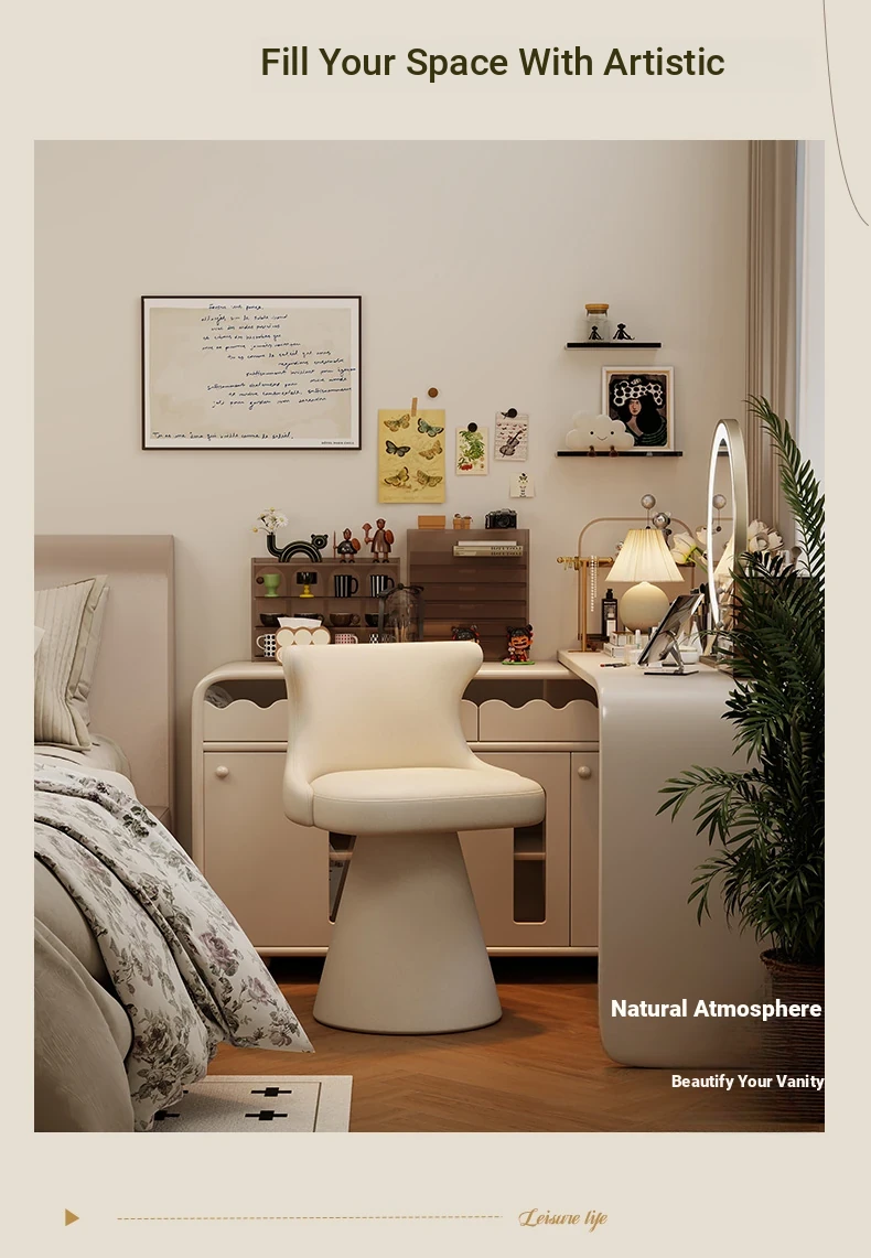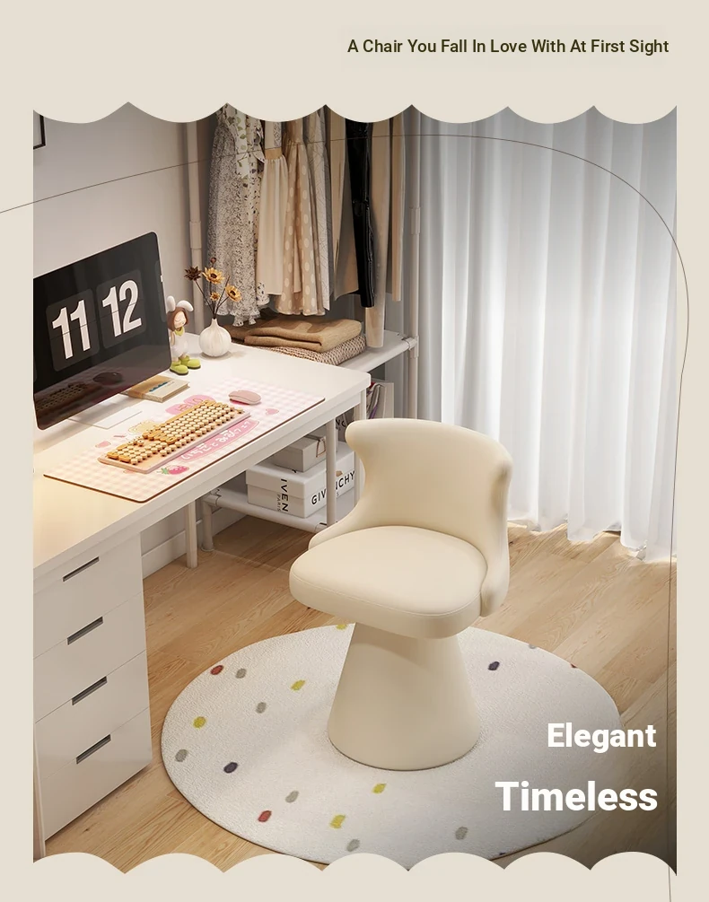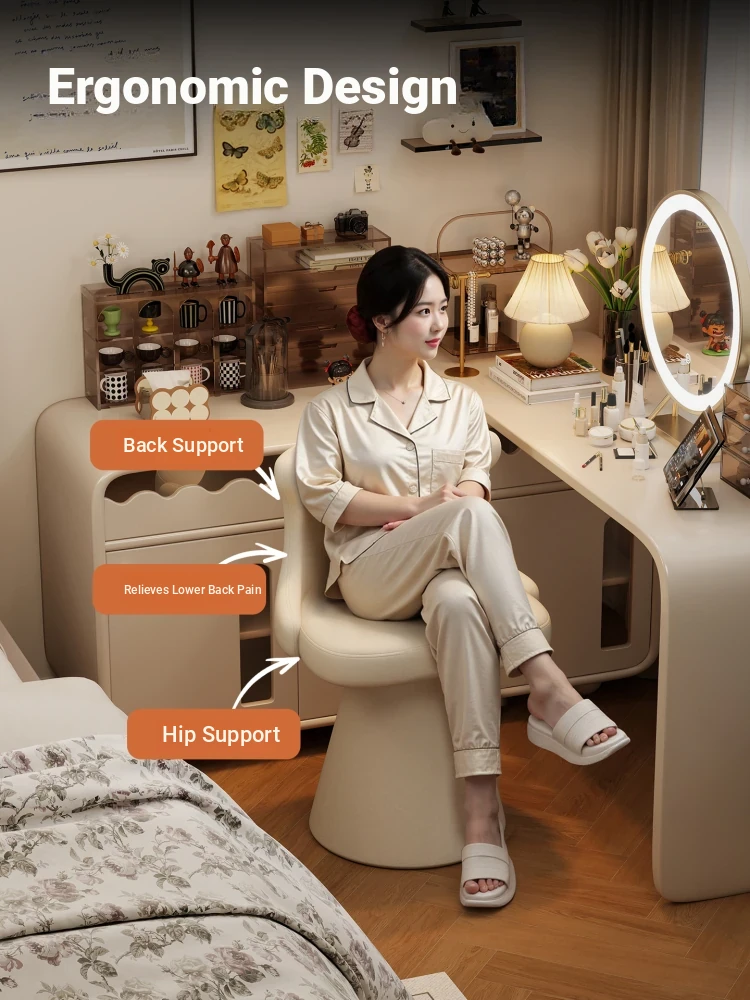 Elegant Makeup Stool for Women - Stylish Rotating Vanity Chair for Bedroom and Dressing Room, Chic Italian-Inspired Design with Backrest, Perfect for a Luxurious Touch!