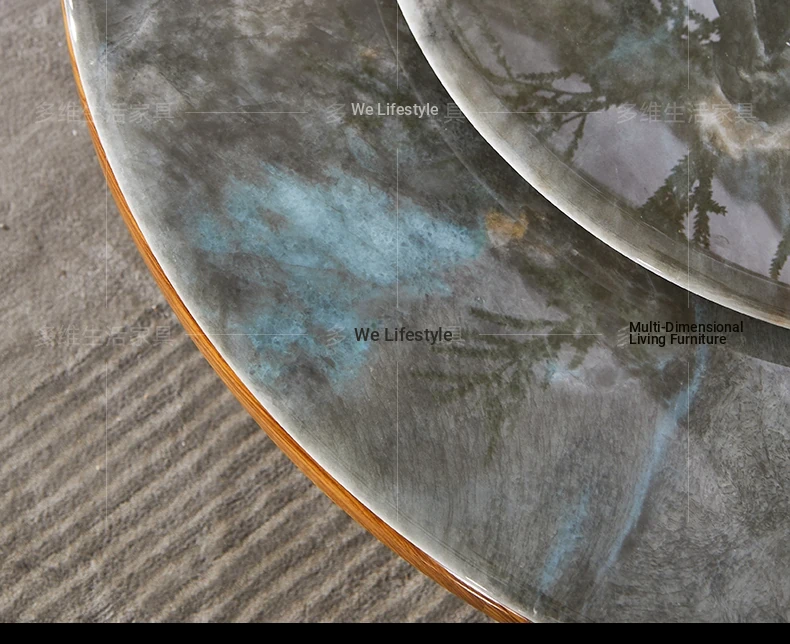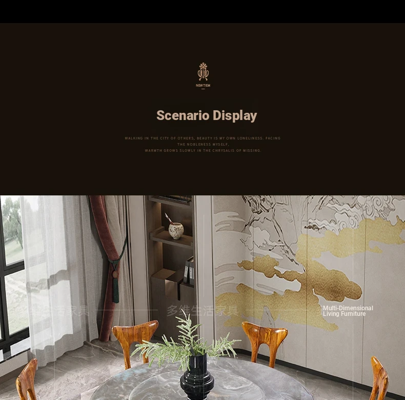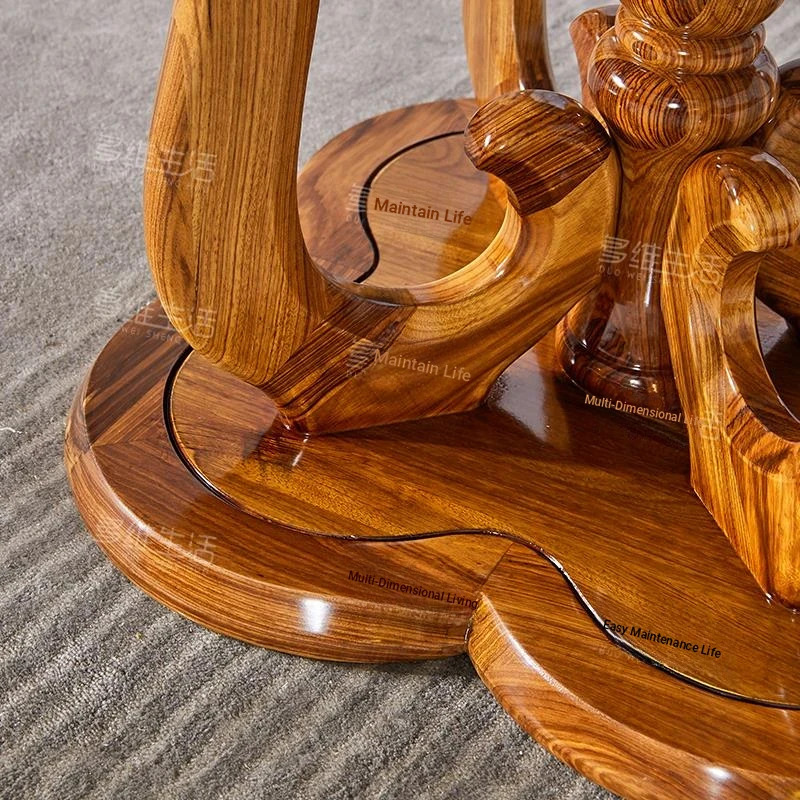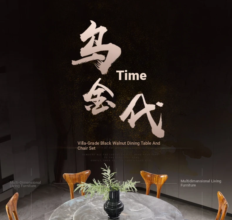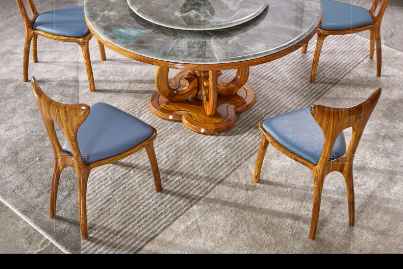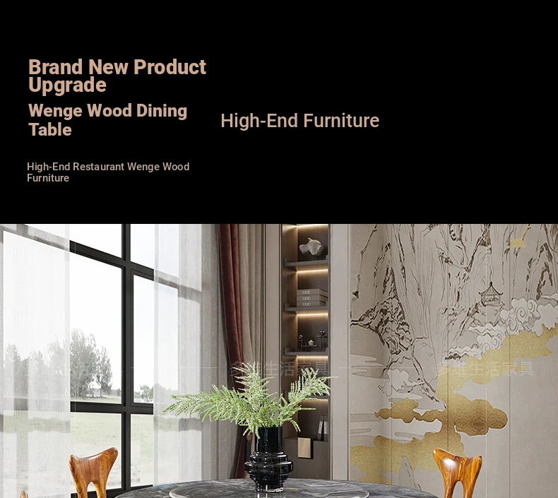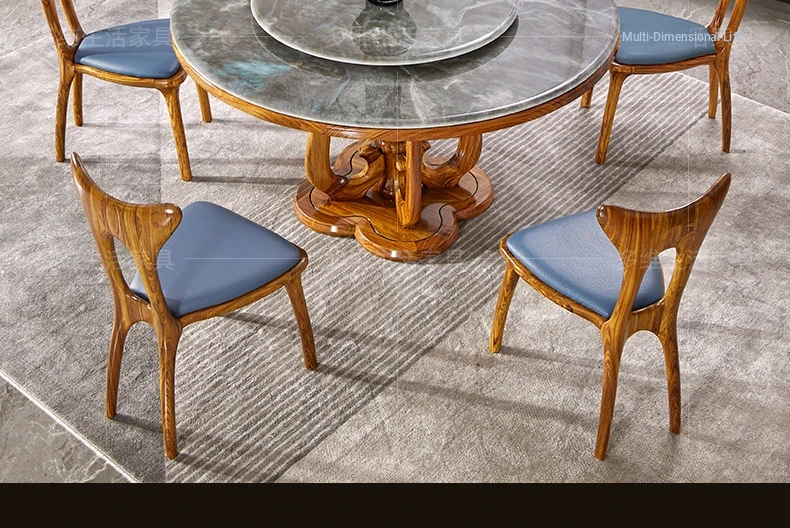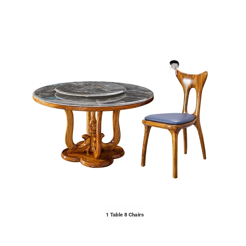 Elegant New Chinese Style Black Gold Wooden Dining Table Set with Round Marble Top and Lazy Susan - Solid Wood Dining Table for Home Use