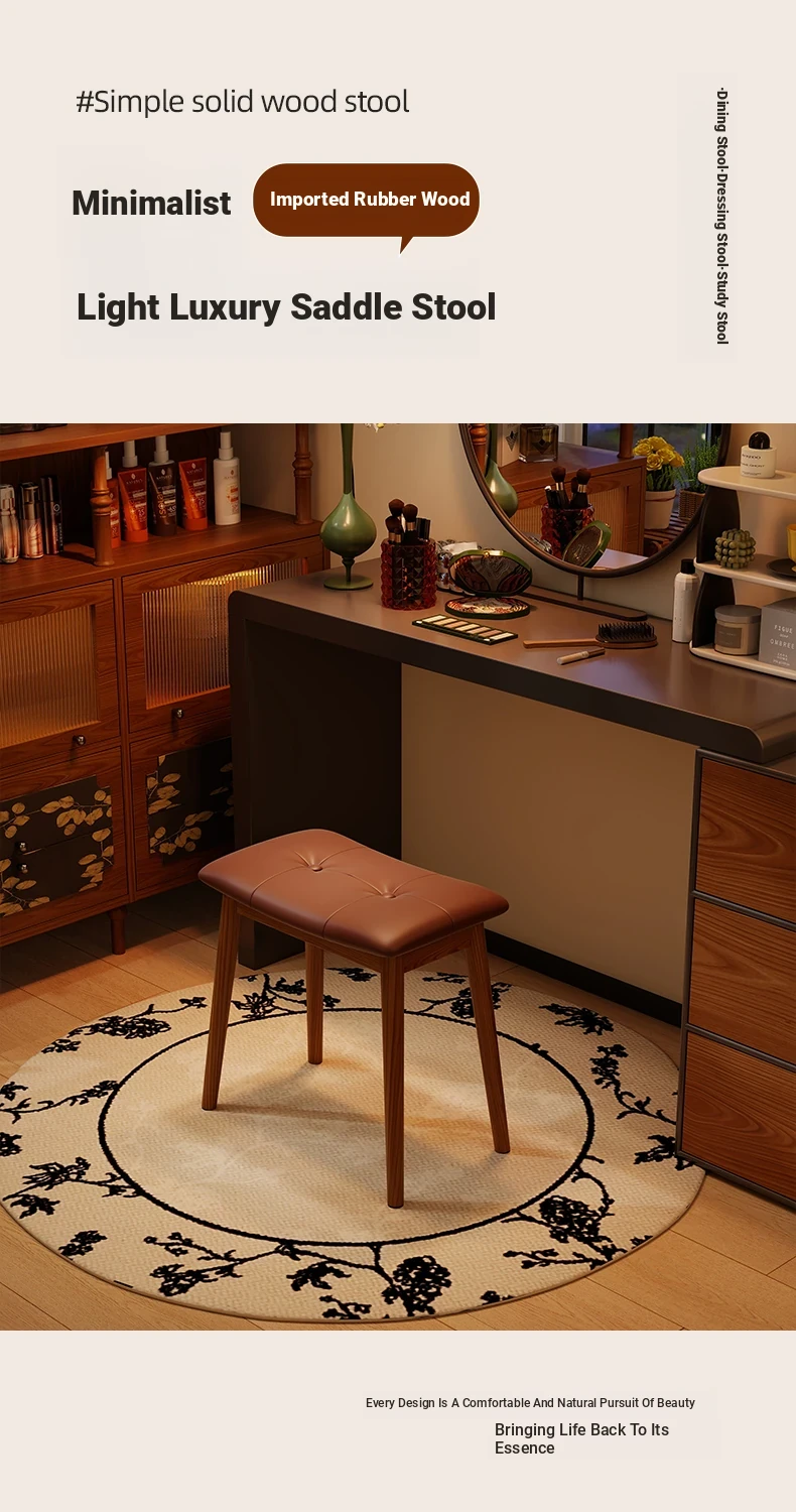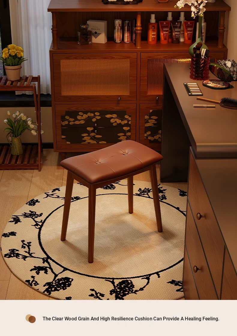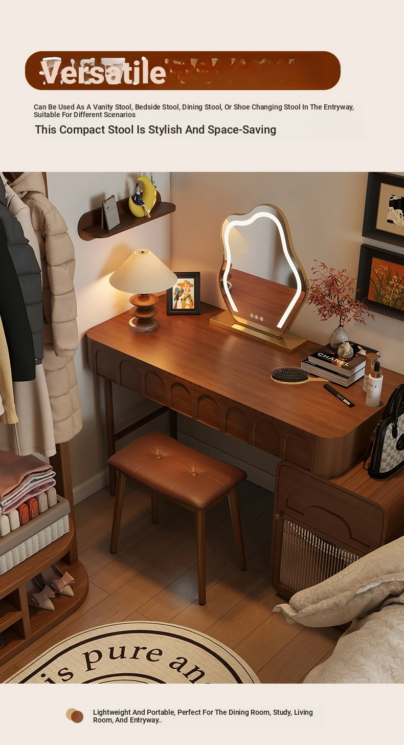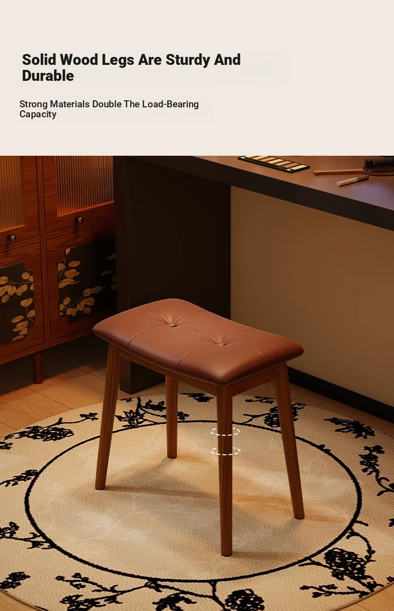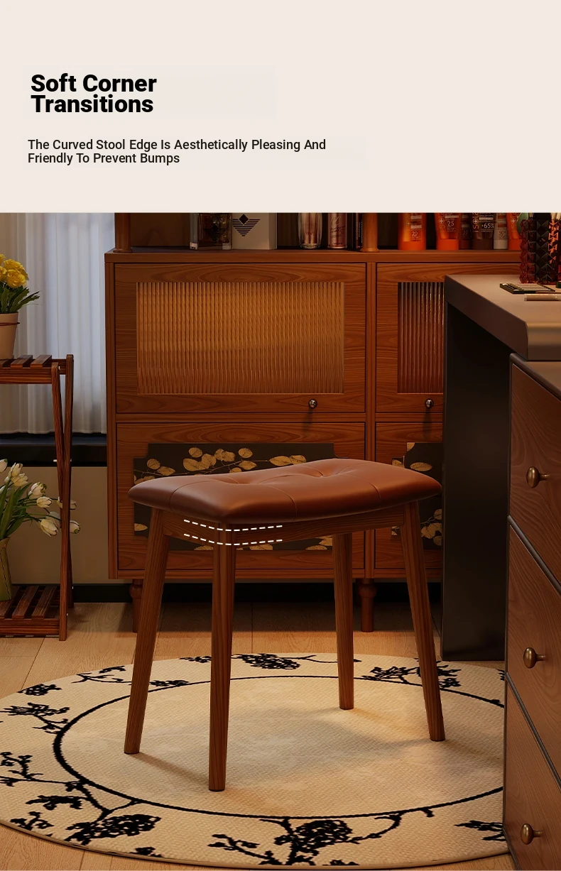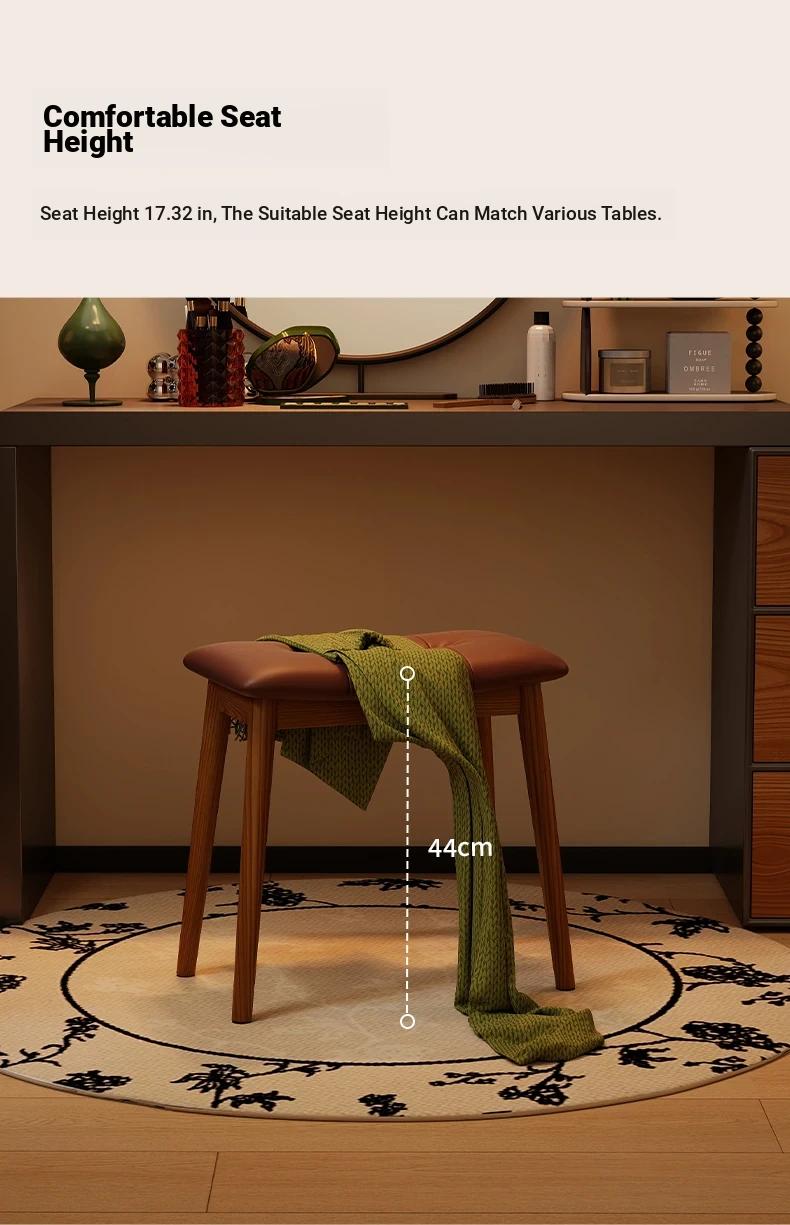 Elegant Solid Wood Vanity Stool with Soft Cushion - Perfect for Bedroom Makeup, Living Room Dining, and Stylish Desk Use for Women