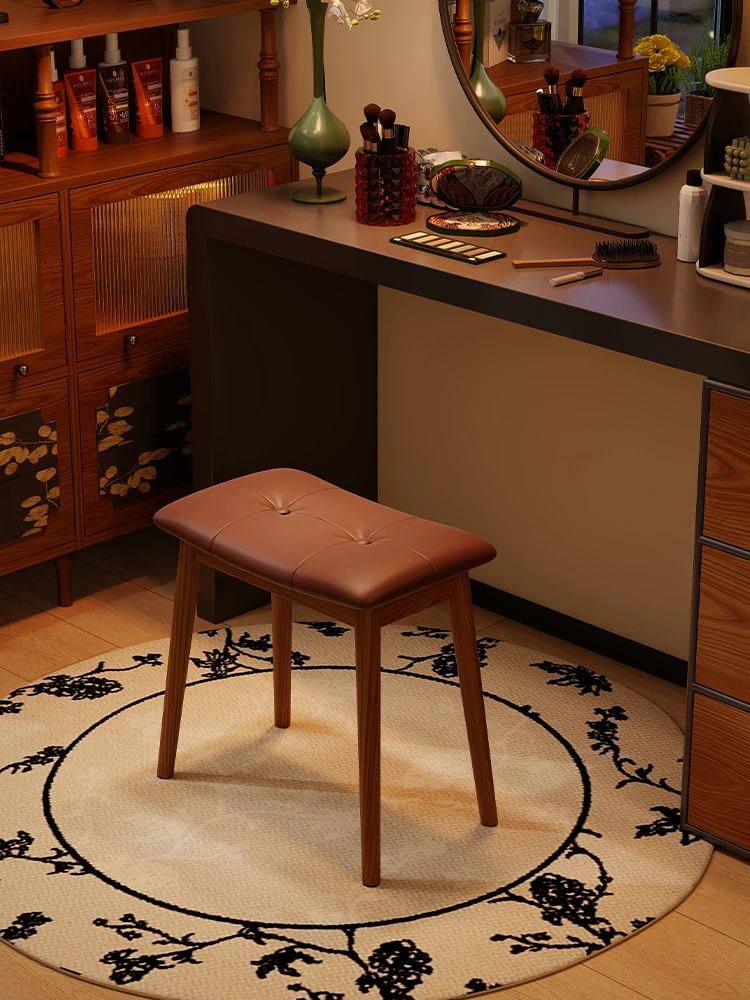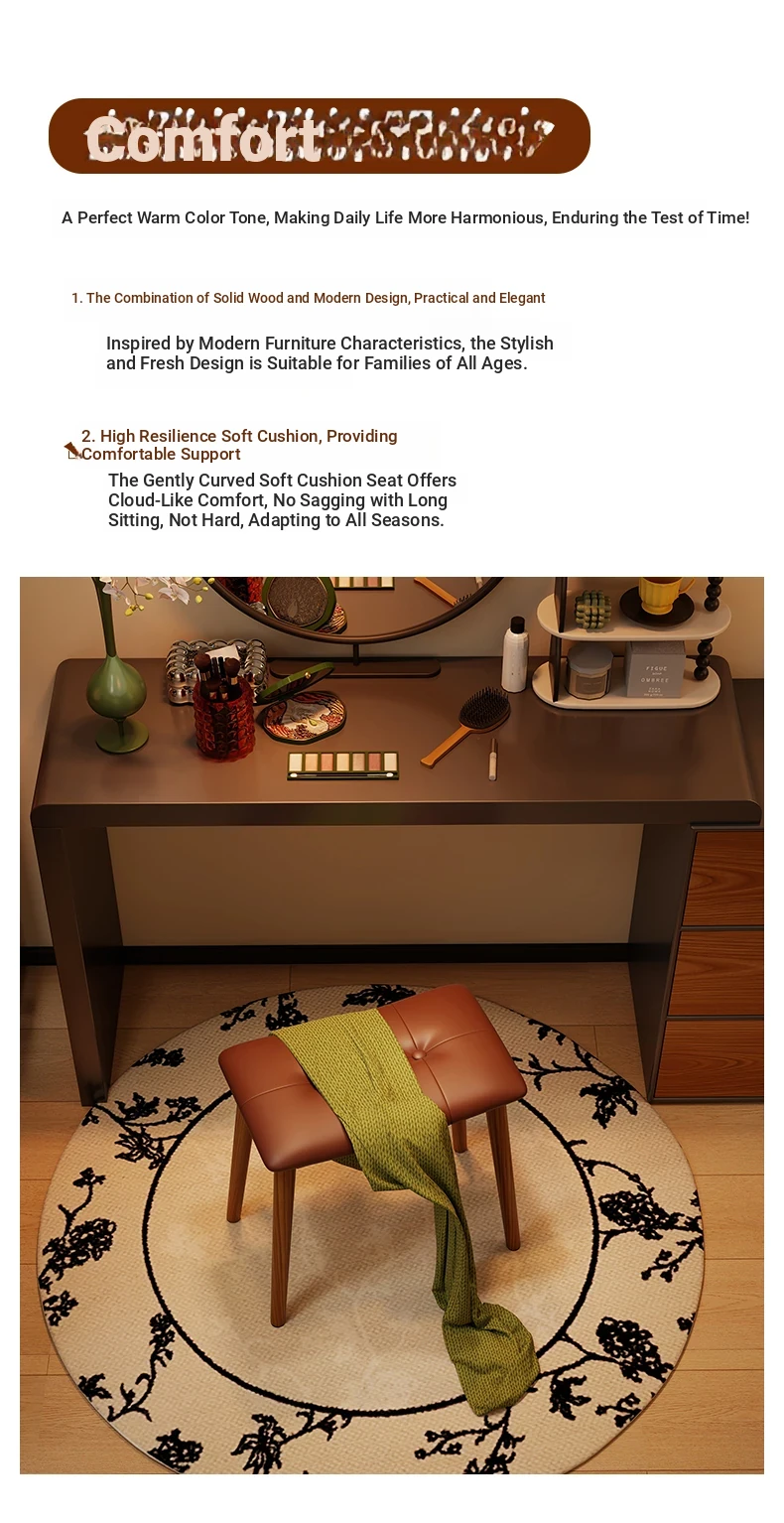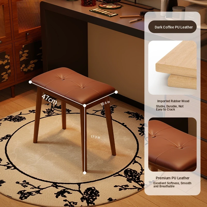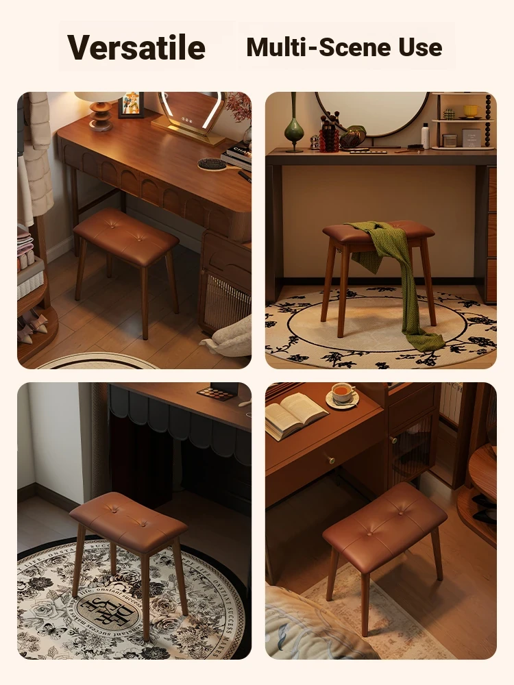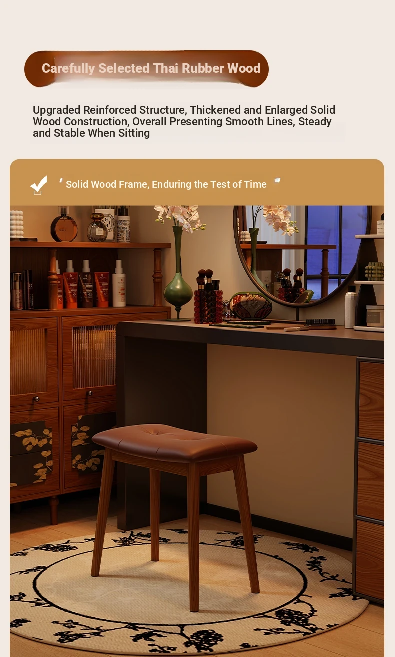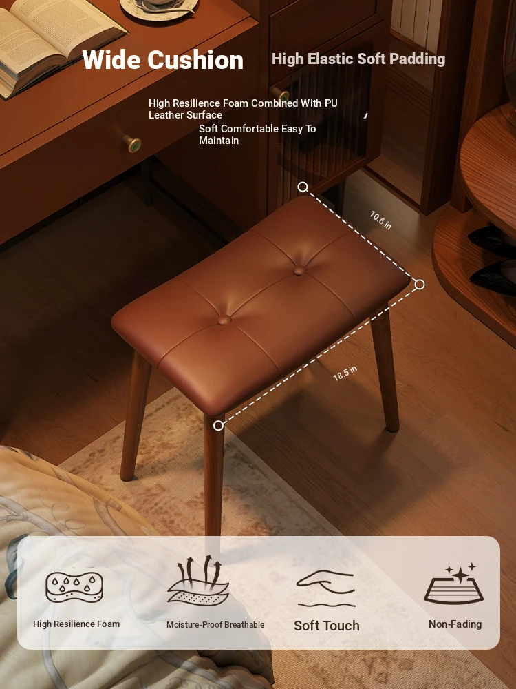 Elegant Solid Wood Vanity Stool with Soft Cushion - Perfect for Bedroom Makeup, Living Room Dining, and Stylish Desk Use for Women