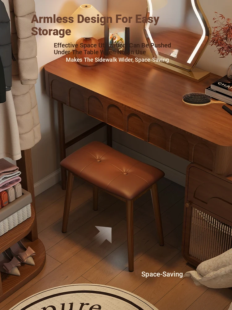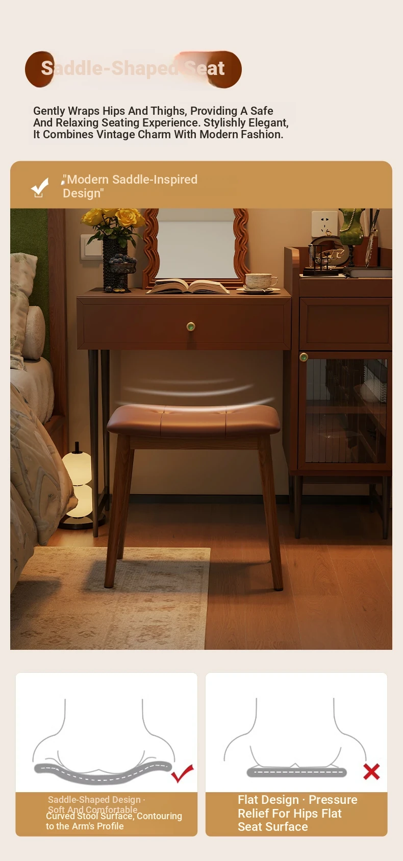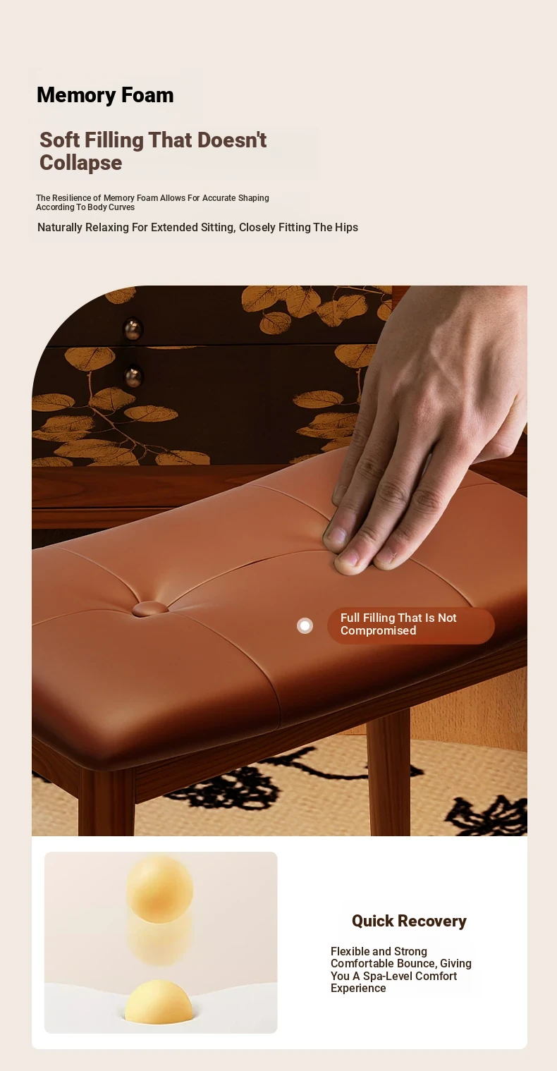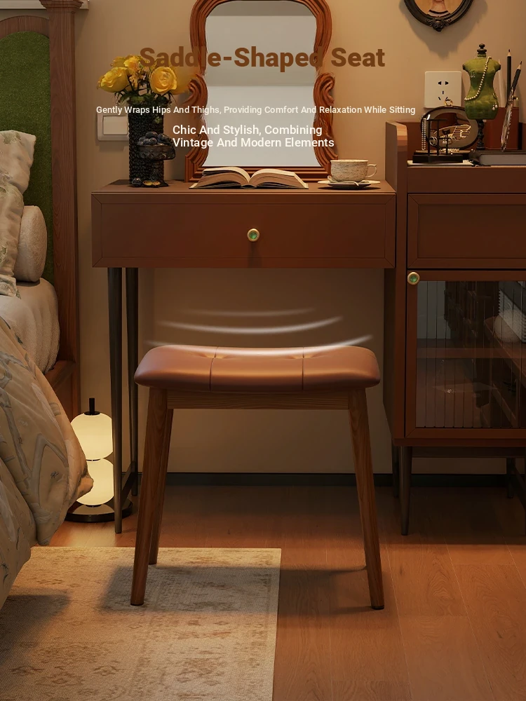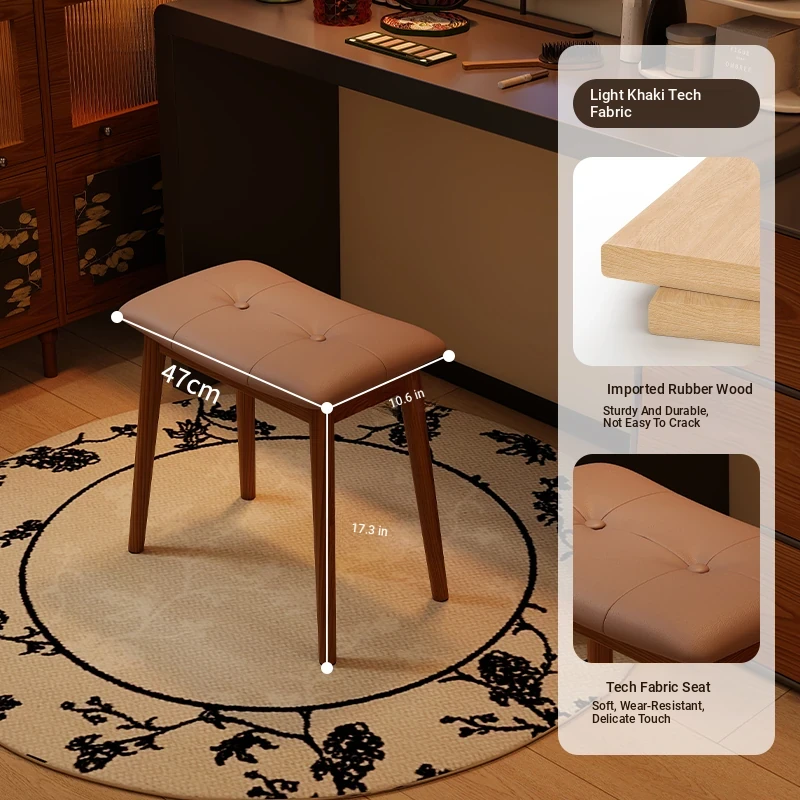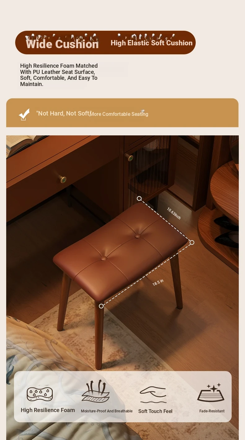 Elegant Solid Wood Vanity Stool with Soft Cushion - Perfect for Bedroom Makeup, Living Room Dining, and Stylish Desk Use for Women