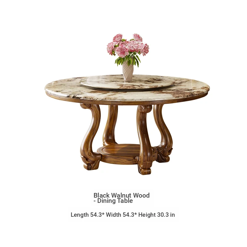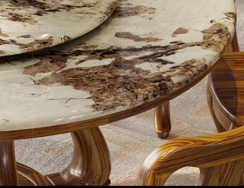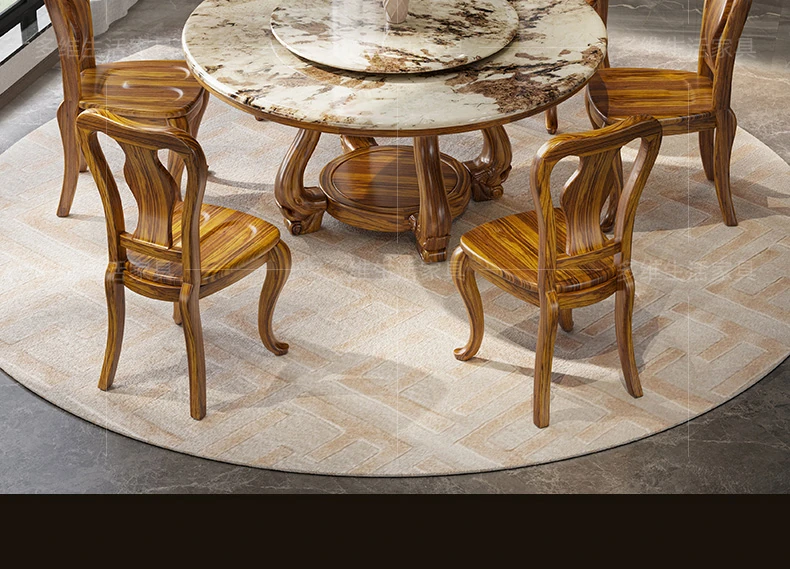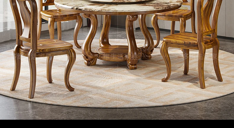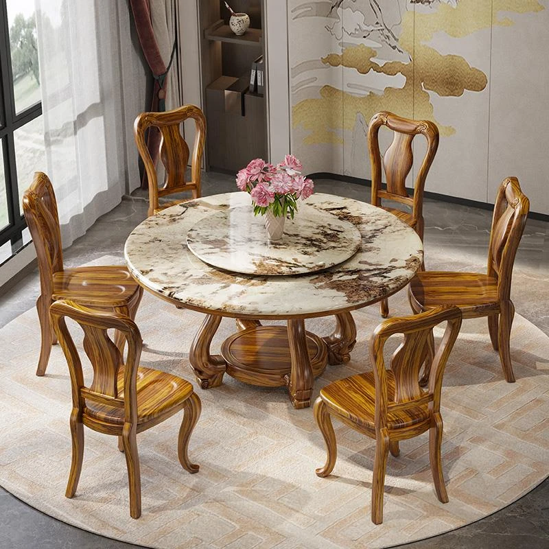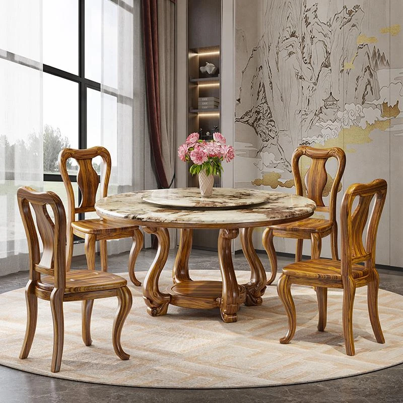 Elegant Wu Jin Wood and Marble Dining Table - Modern Chinese Style Round Table Set for Home, Featuring Solid Wood Chairs - Perfect for Your Dining Room