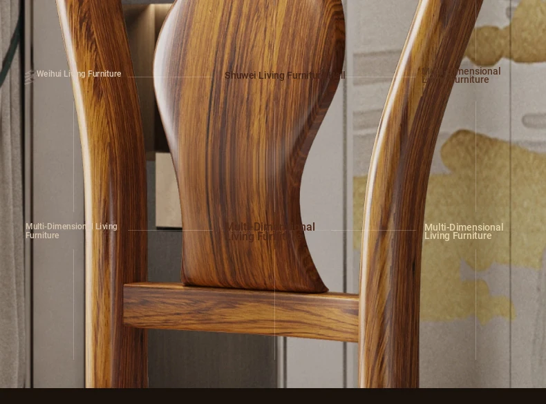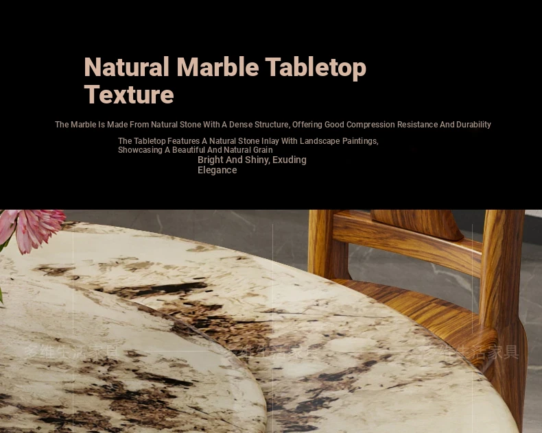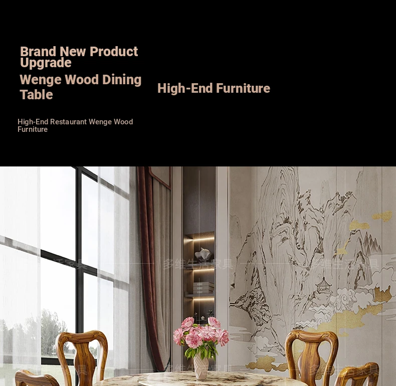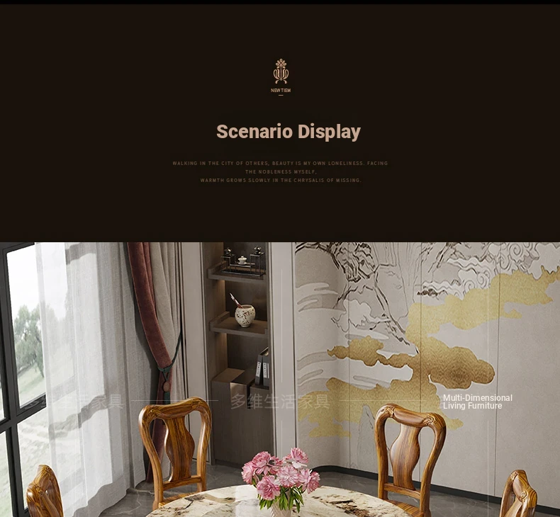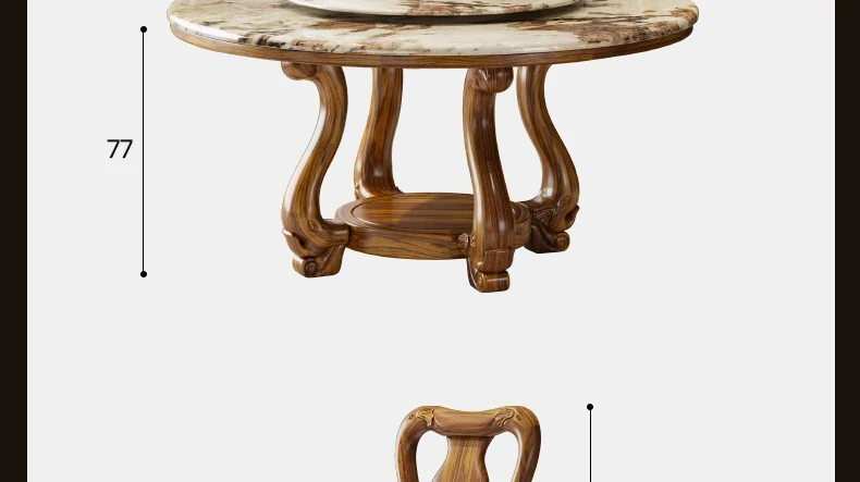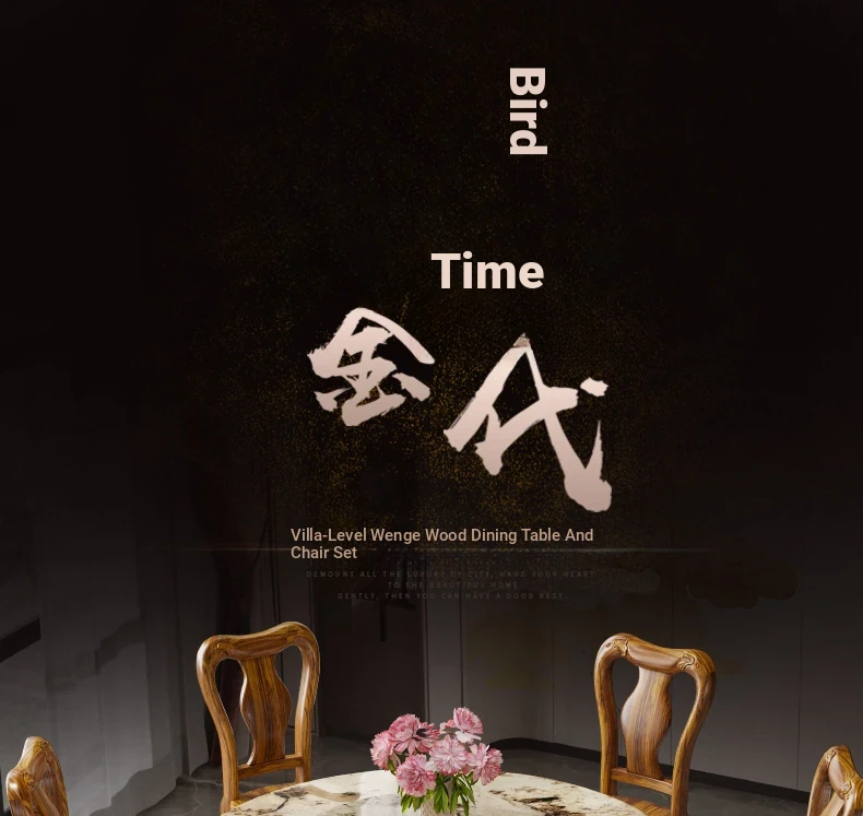 Elegant Wu Jin Wood and Marble Dining Table - Modern Chinese Style Round Table Set for Home, Featuring Solid Wood Chairs - Perfect for Your Dining Room