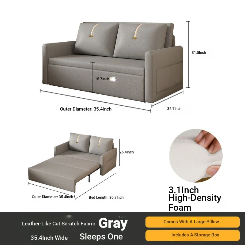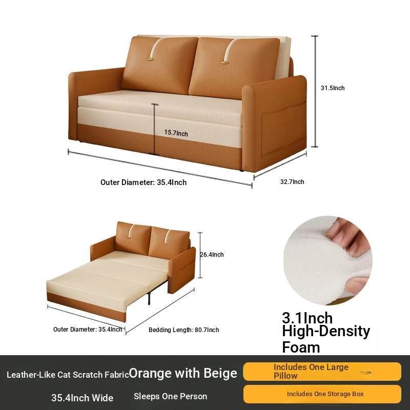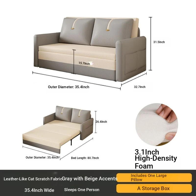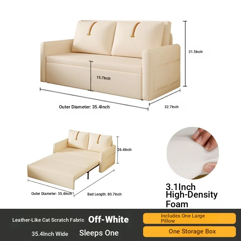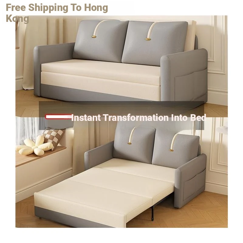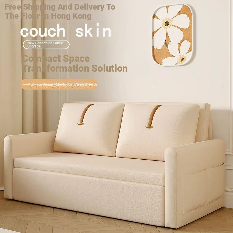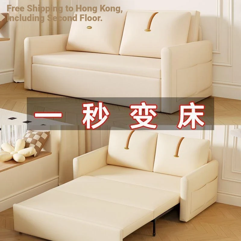 【Free Shipping in Hong Kong】Versatile Cream Sofa Bed - Foldable and Pull-Out Design for Small Living Rooms, Perfect for Sitting and Sleeping, 2024 Model