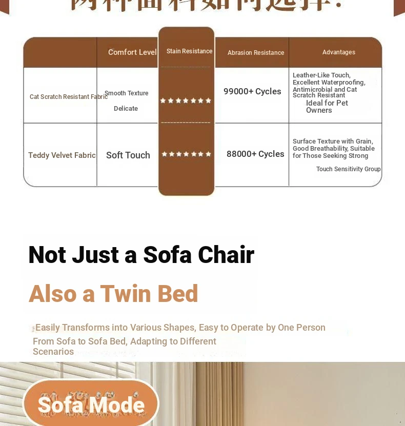 Backrest movable [41.34in Cashmere] Comfortable transparent