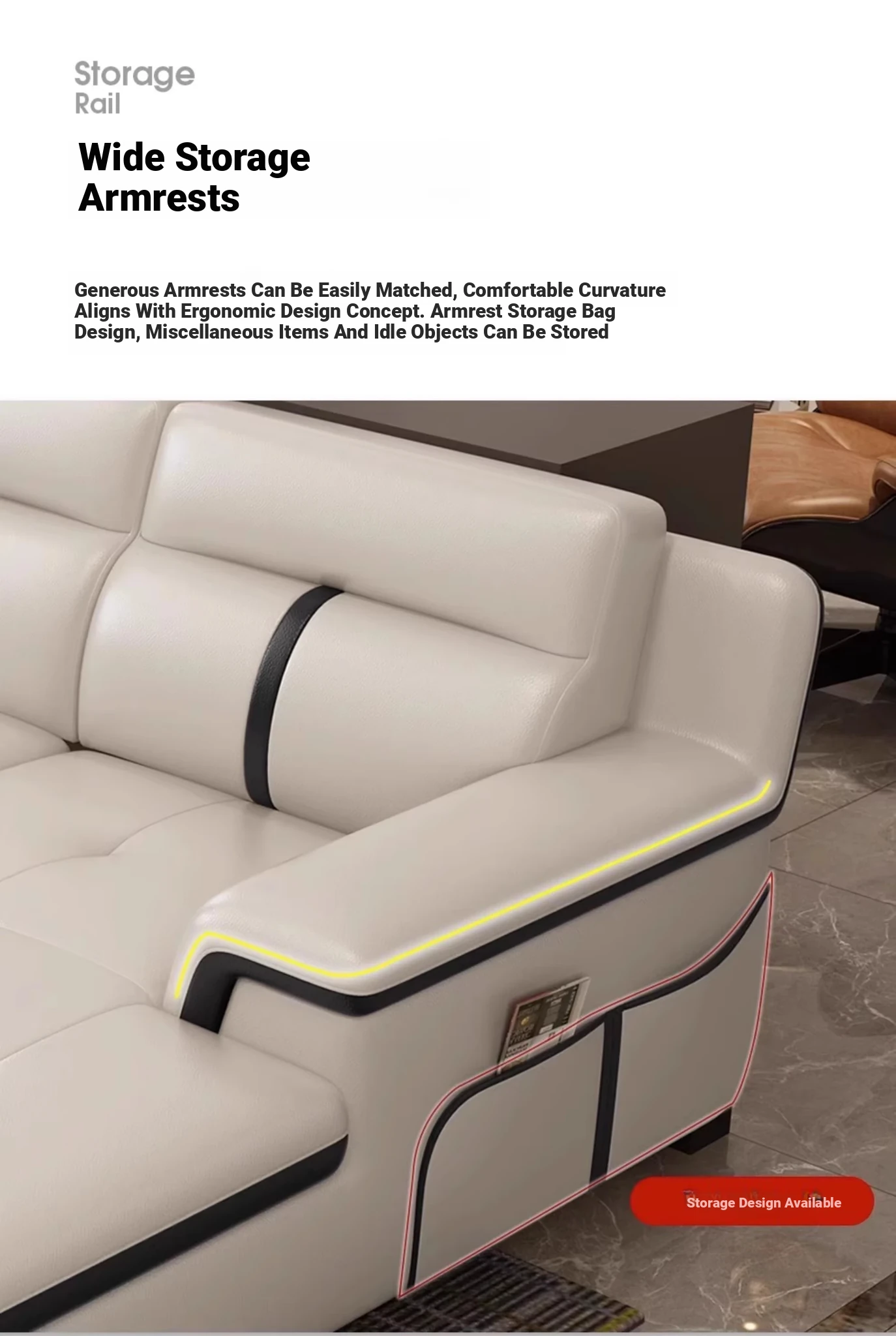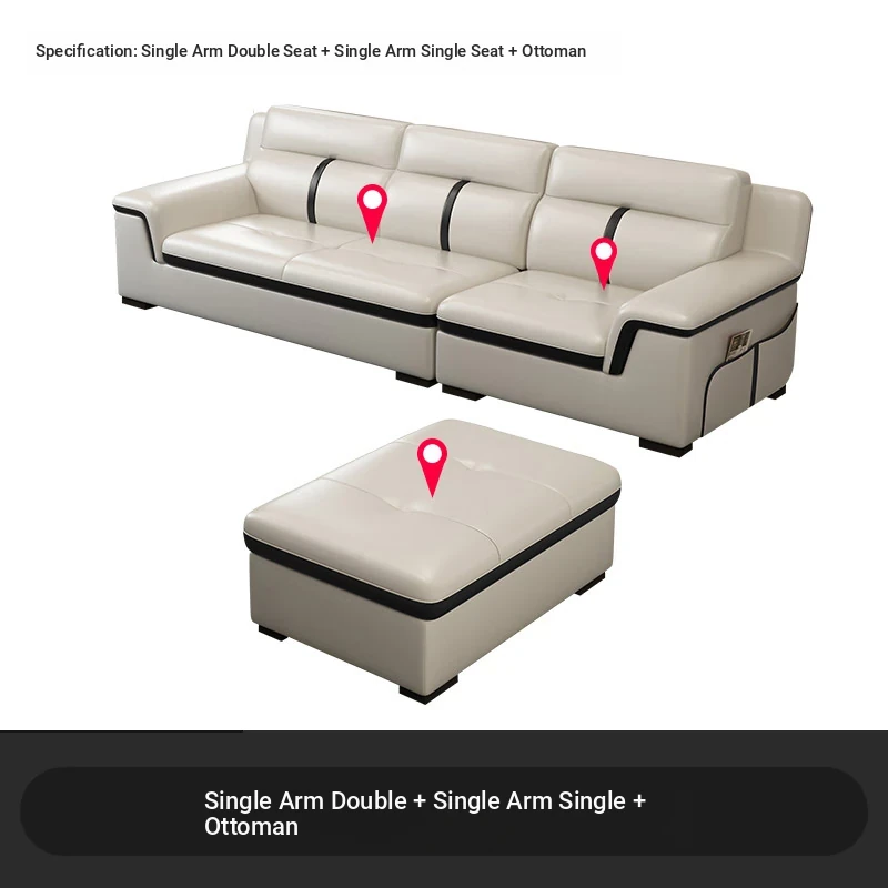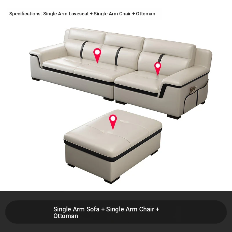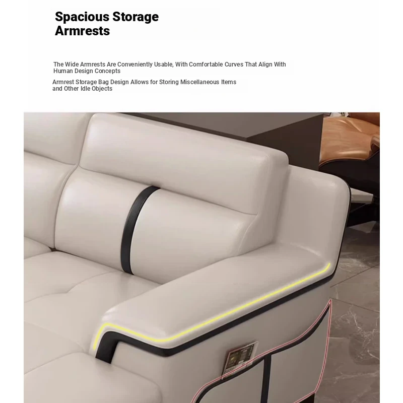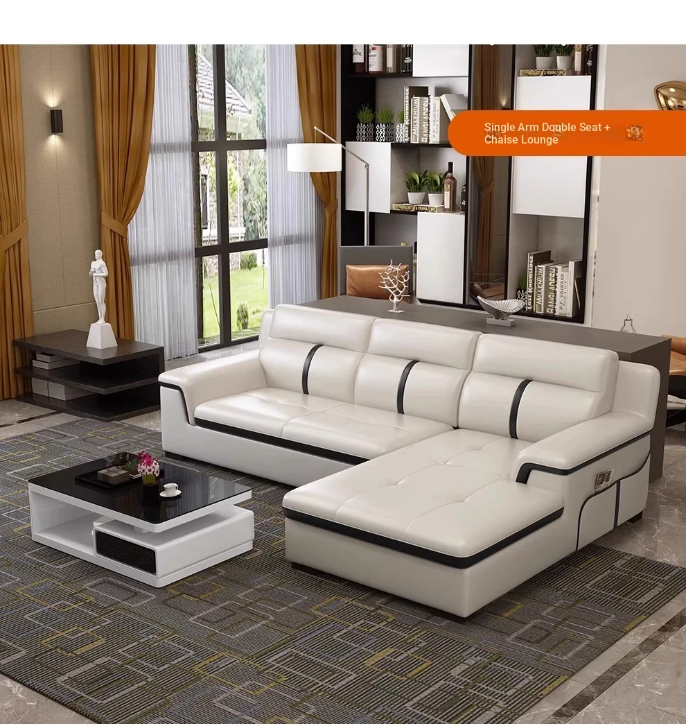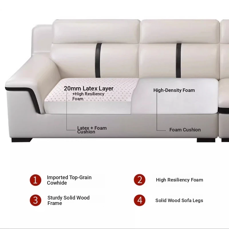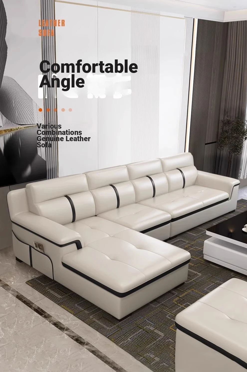 Genuine Leather Sofa Set - Premium Top-Grain Cowhide Corner Combination for Spacious Living Rooms - Scandinavian Minimalist Modern Design