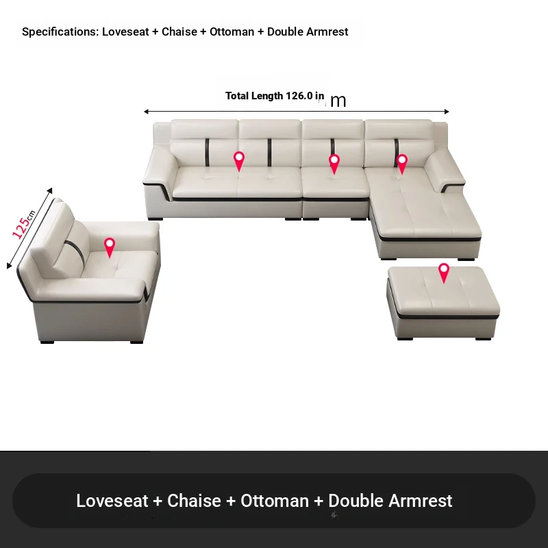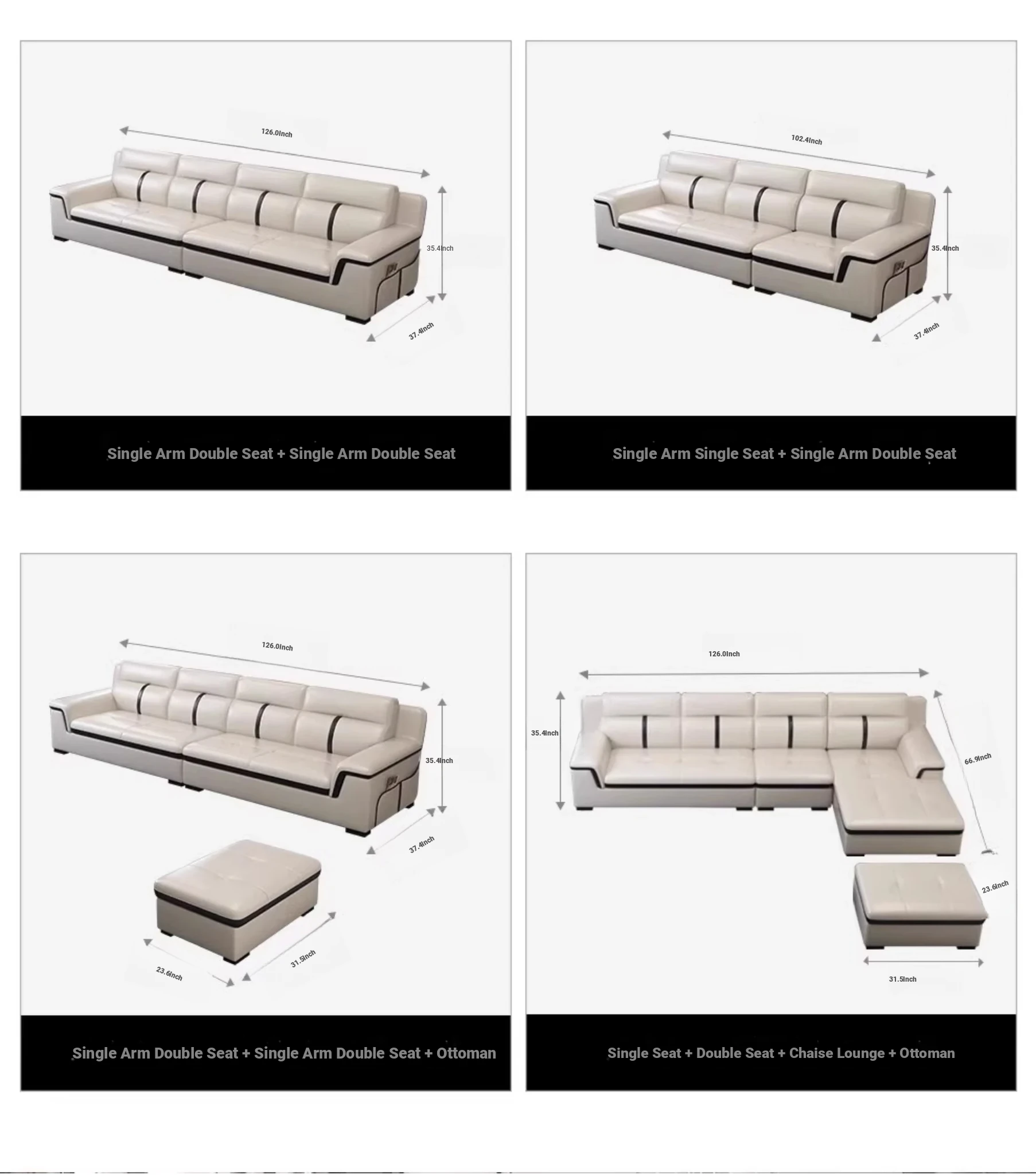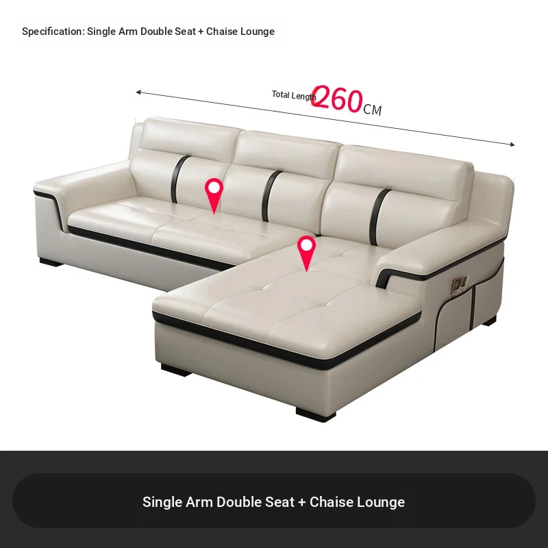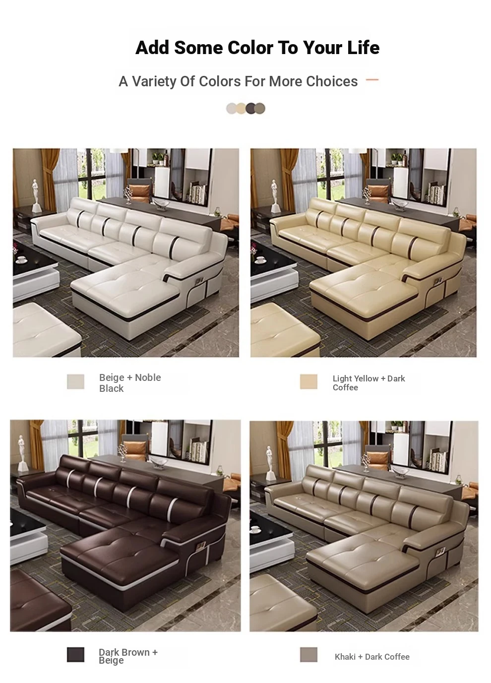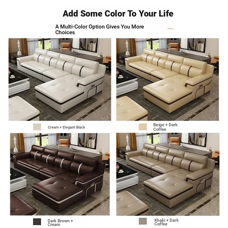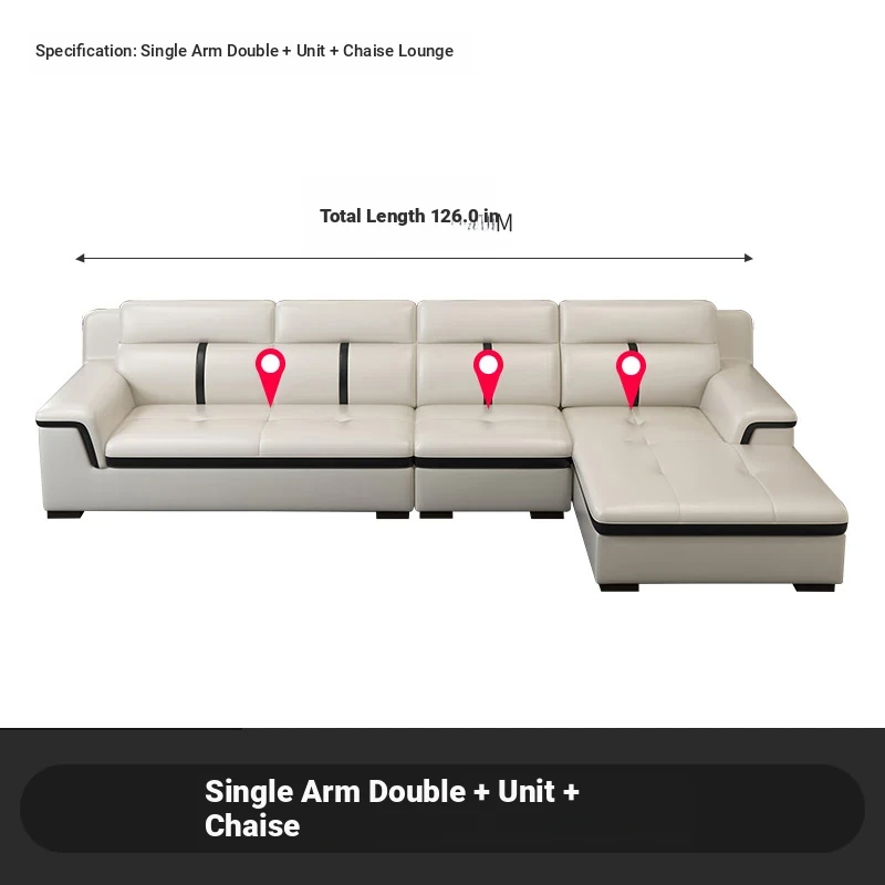 Genuine Leather Sofa Set - Premium Top-Grain Cowhide Corner Combination for Spacious Living Rooms - Scandinavian Minimalist Modern Design