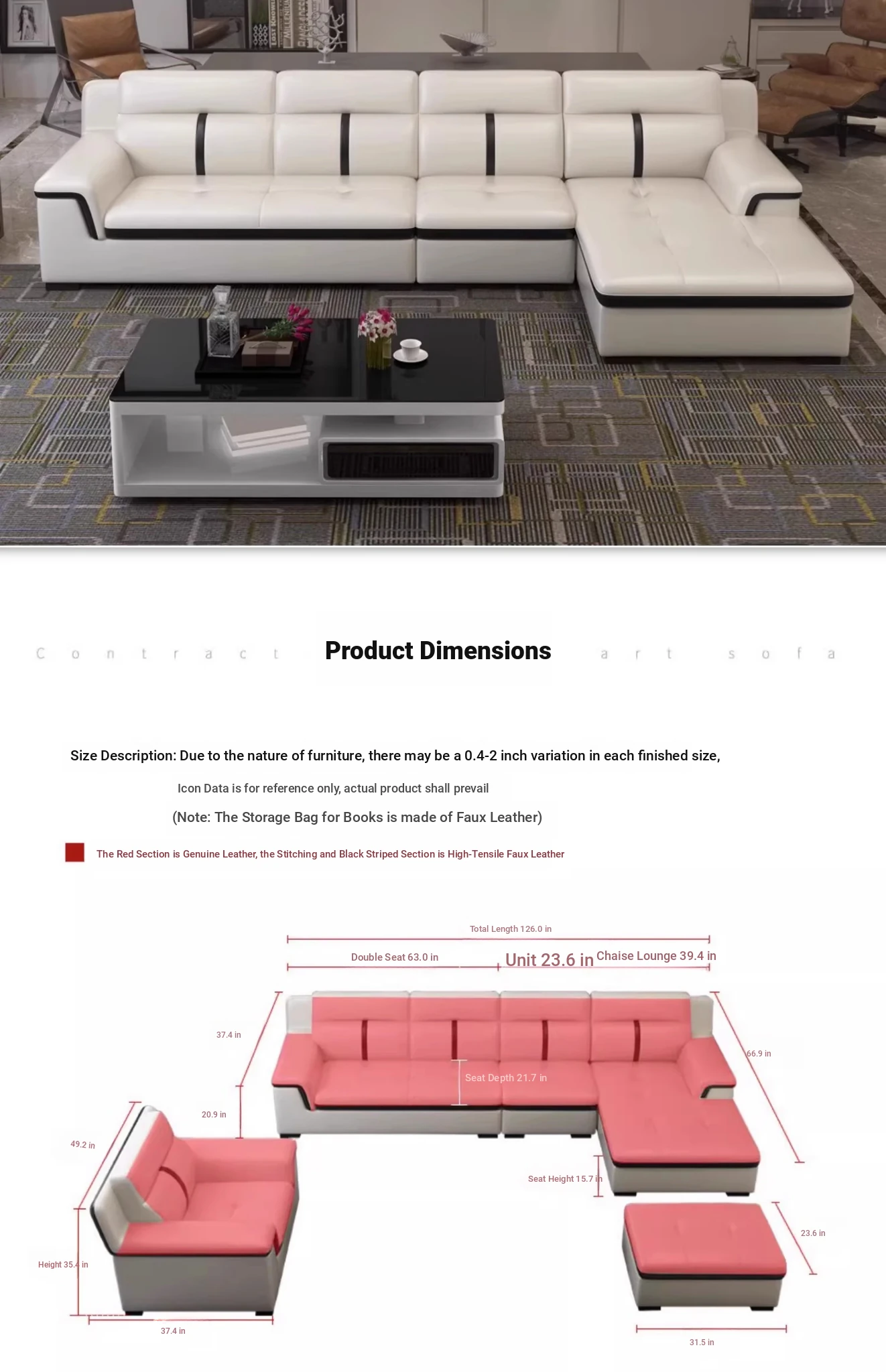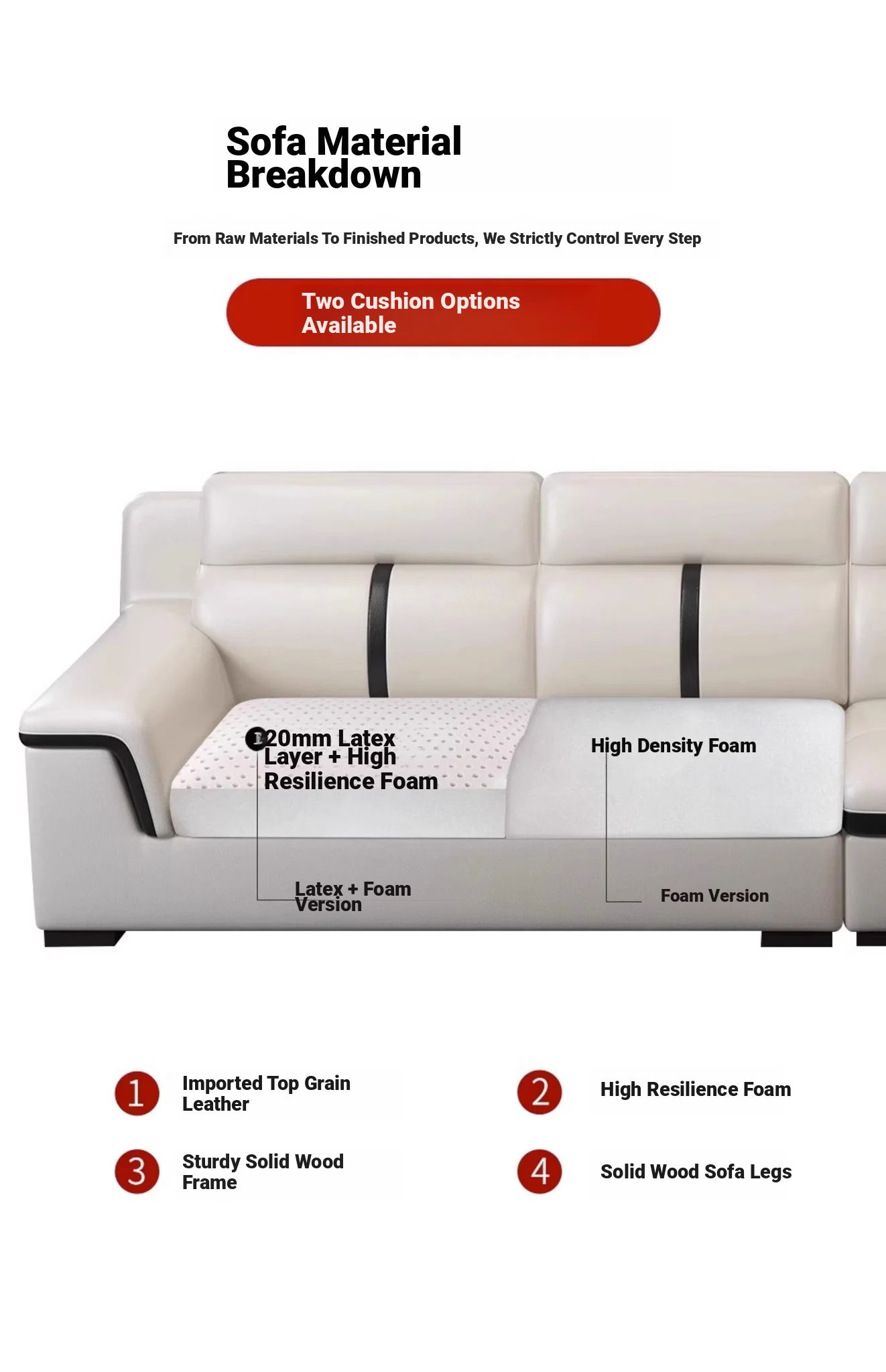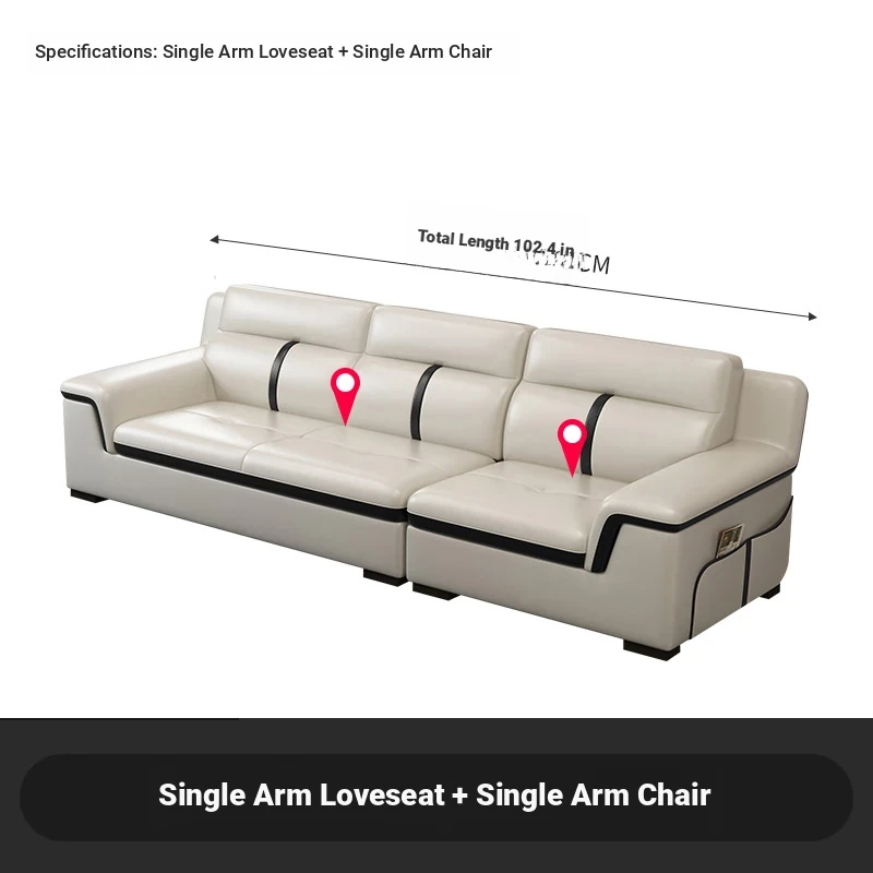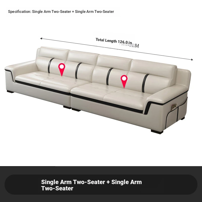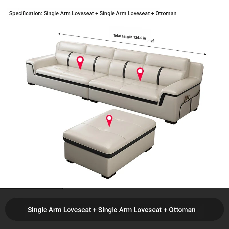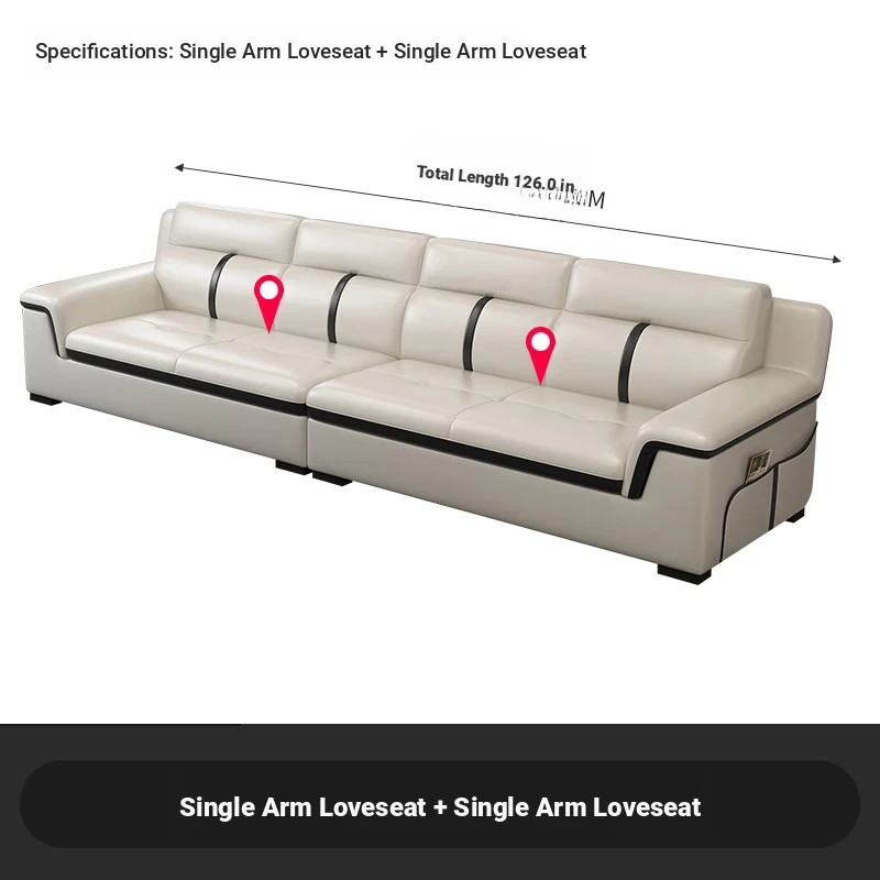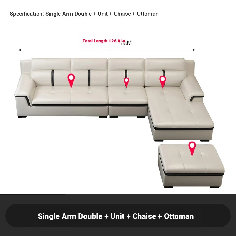 Genuine Leather Sofa Set - Premium Top-Grain Cowhide Corner Combination for Spacious Living Rooms - Scandinavian Minimalist Modern Design