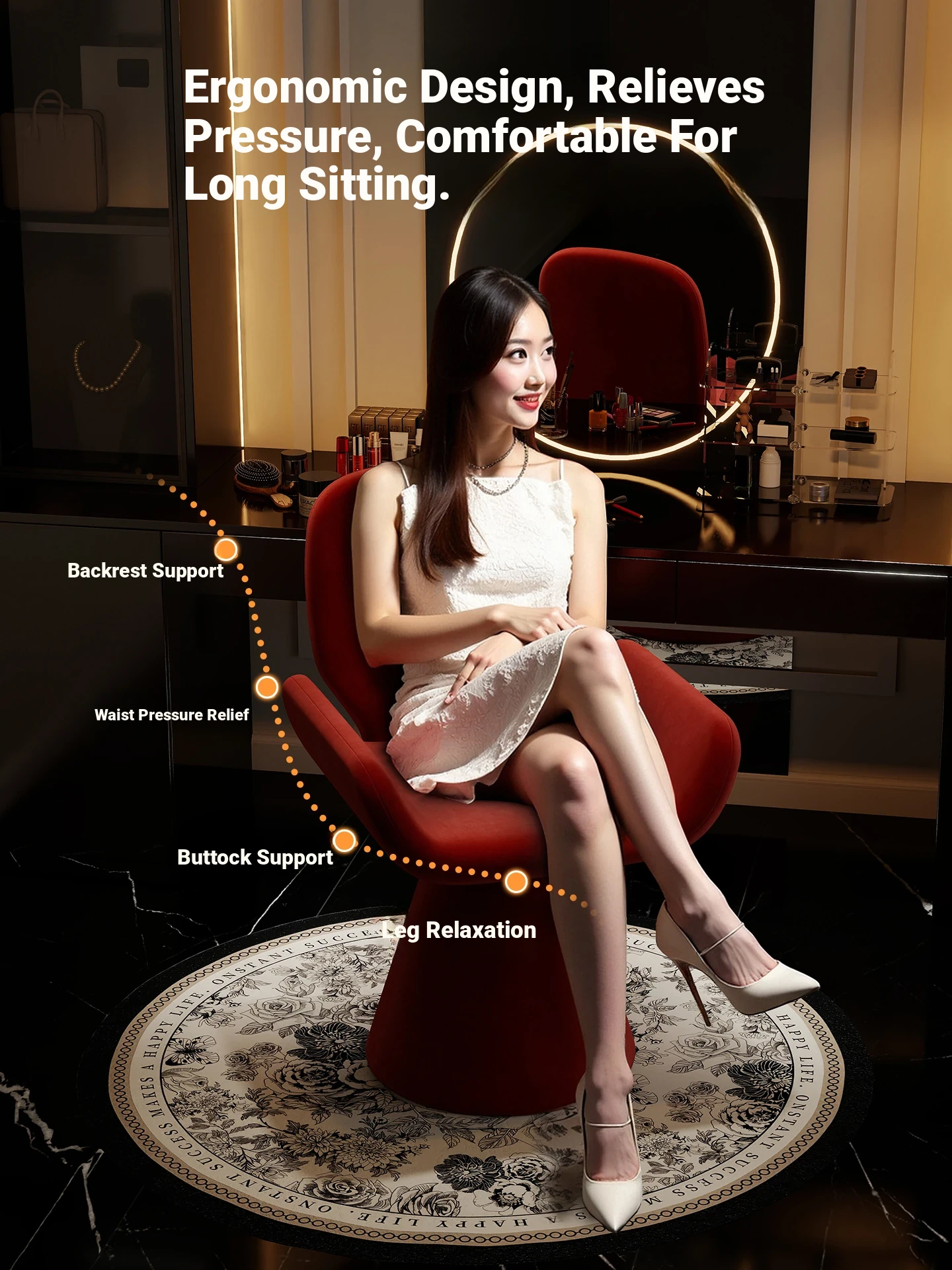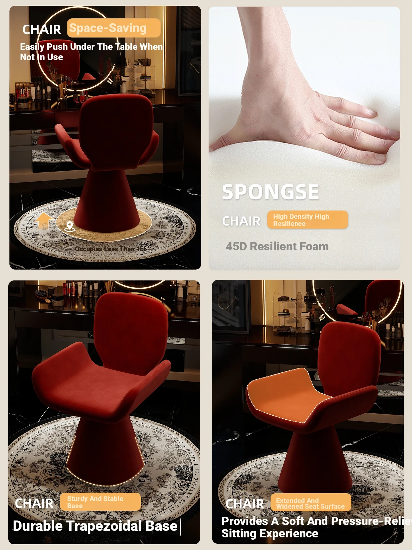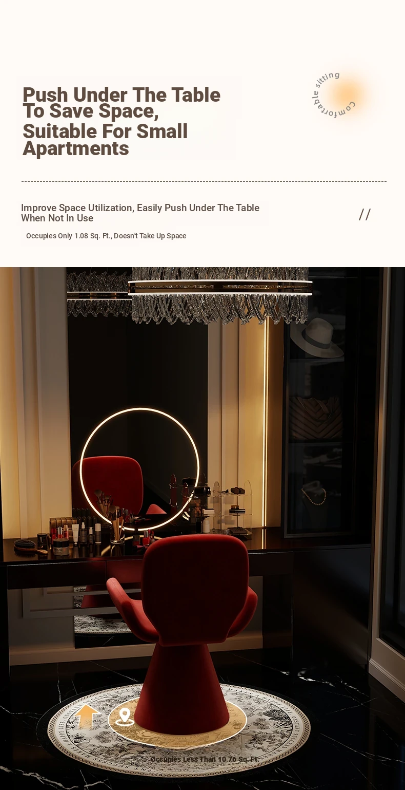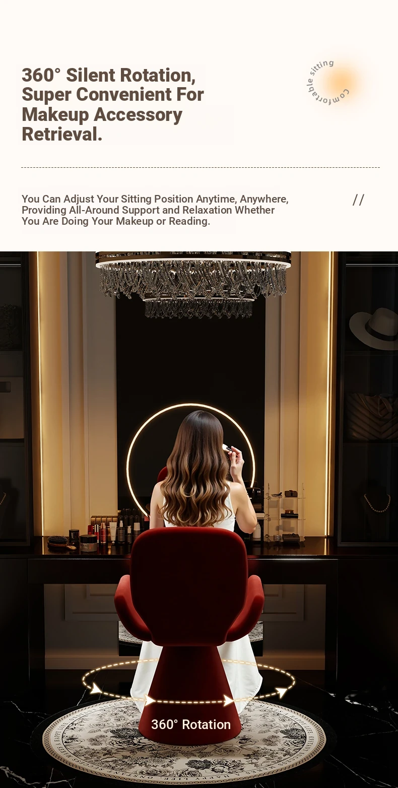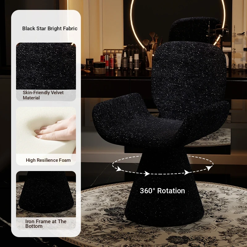 Italian Luxury Rotating Vanity Stool for Home - Elegant Makeup Chair for Women, Modern Minimalist Design for Bedroom