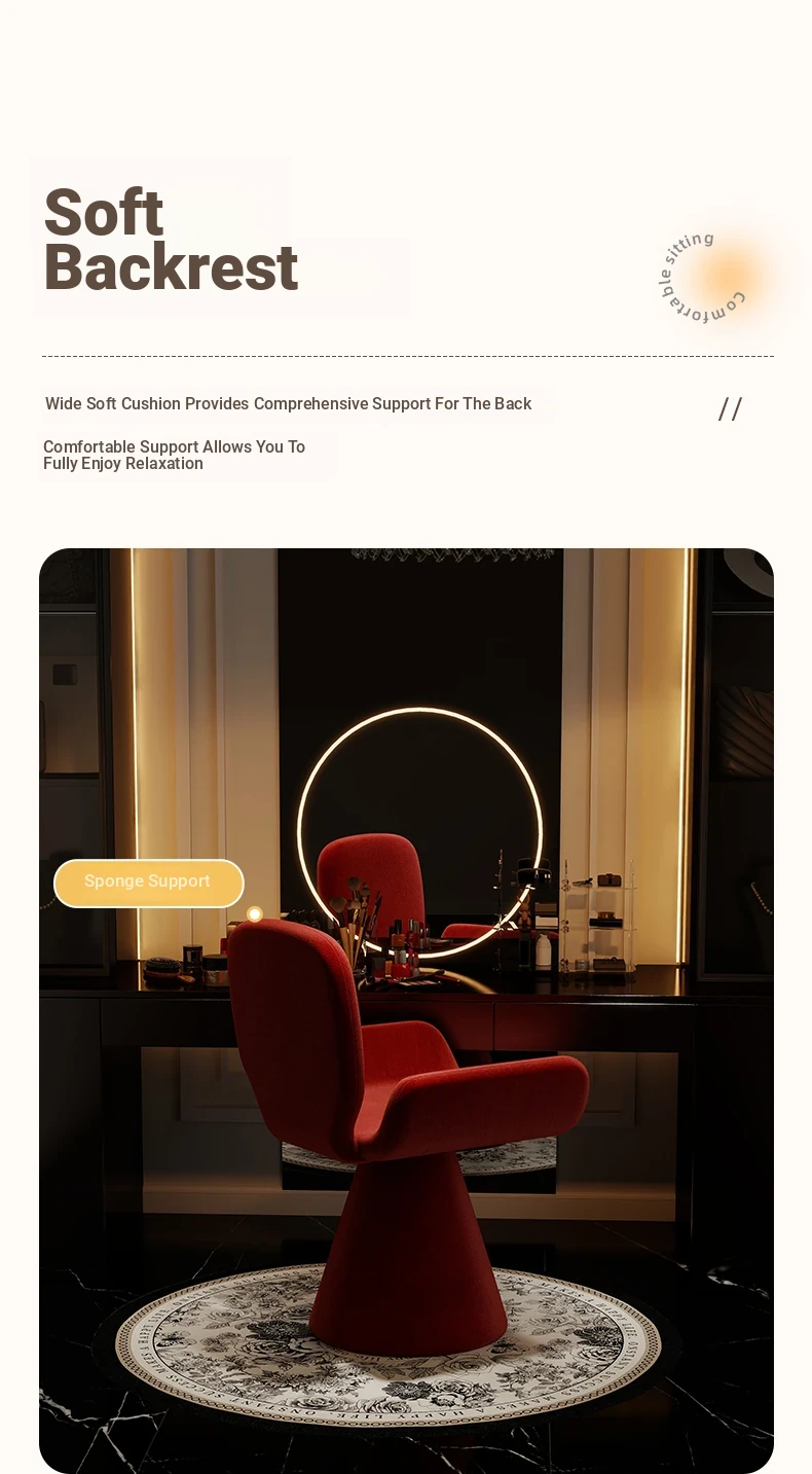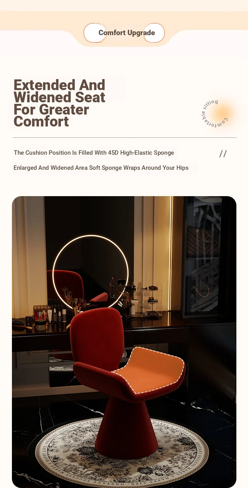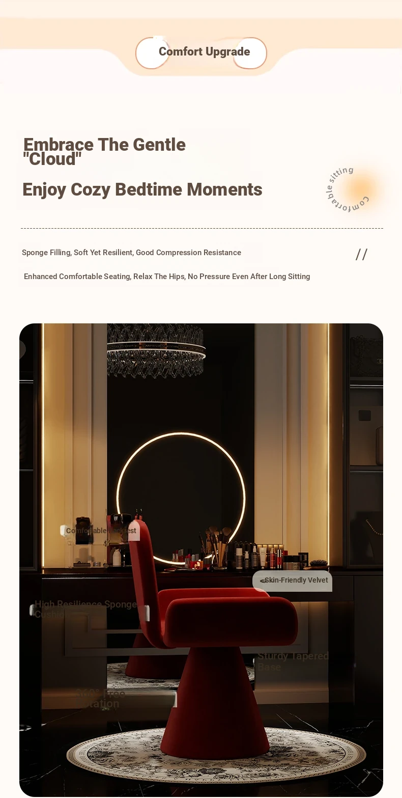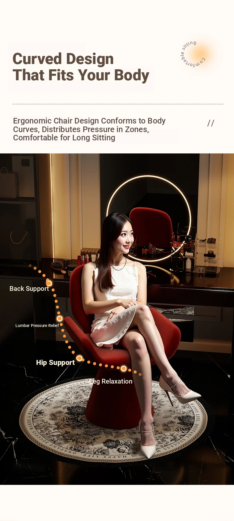 Italian Luxury Rotating Vanity Stool for Home - Elegant Makeup Chair for Women, Modern Minimalist Design for Bedroom