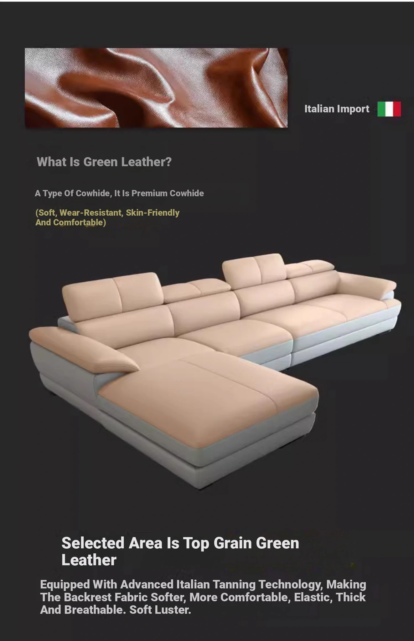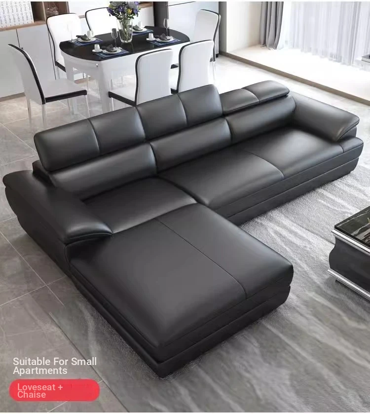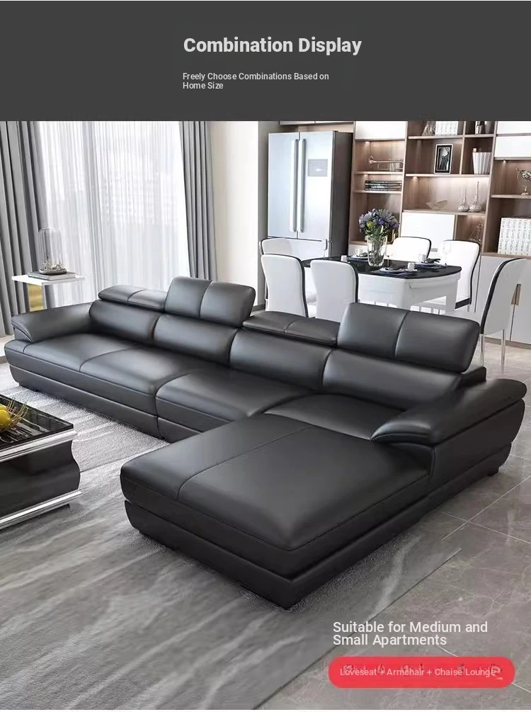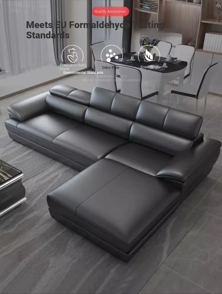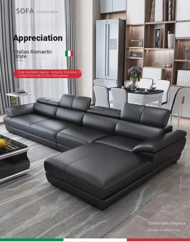 Italian Minimalist Genuine Leather Sofa - Premium Top-Grain Leather Modern Corner Chaise Lounge - Scandinavian Style Living Room Sofa Set, Left or Right Configuration. Experience Elegance and Comfort in Your Home!