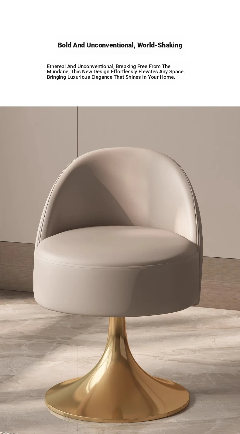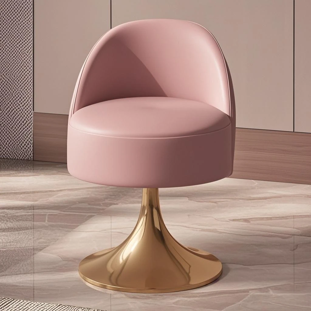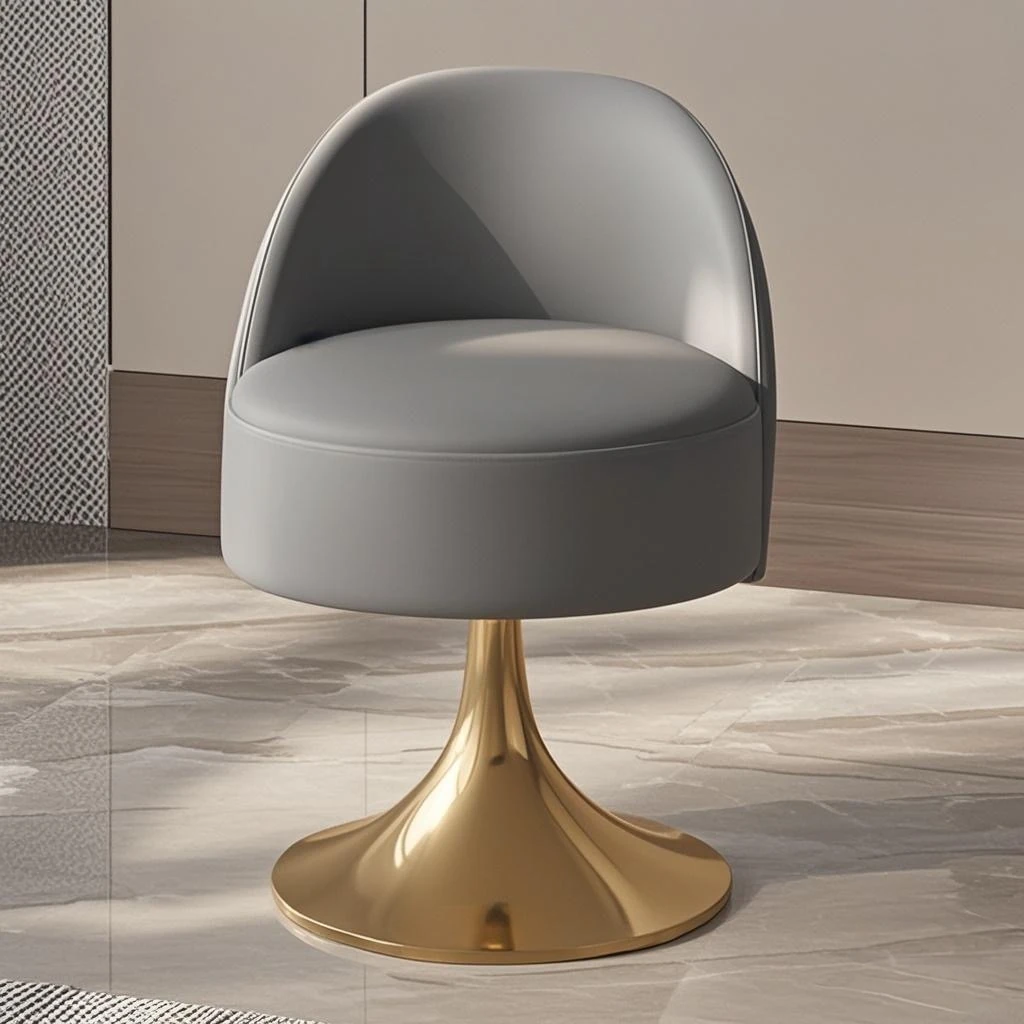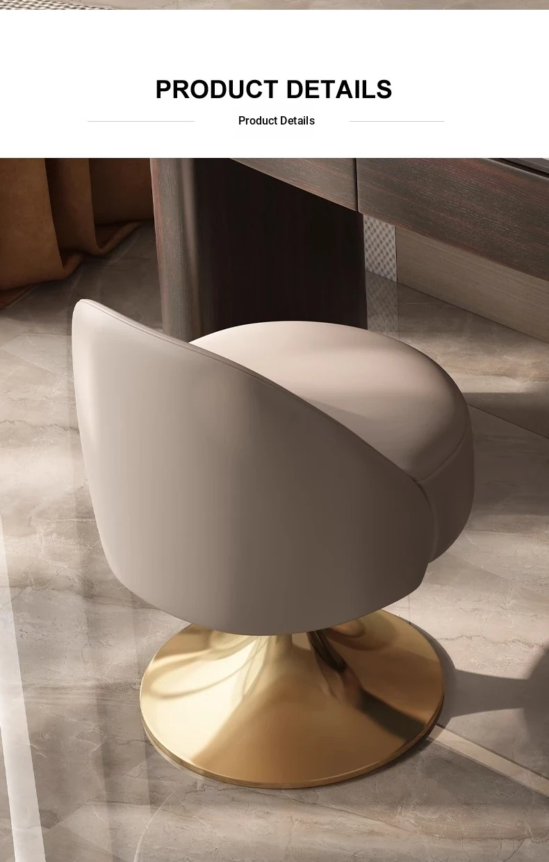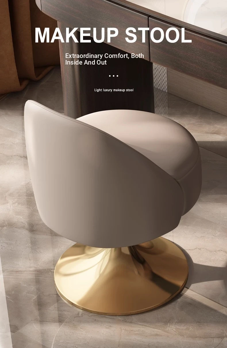Italian Minimalist Luxury Bedroom Vanity Stool with Backrest, Rotatable Design, Stainless Steel & Genuine Leather, Perfect for Small Spaces