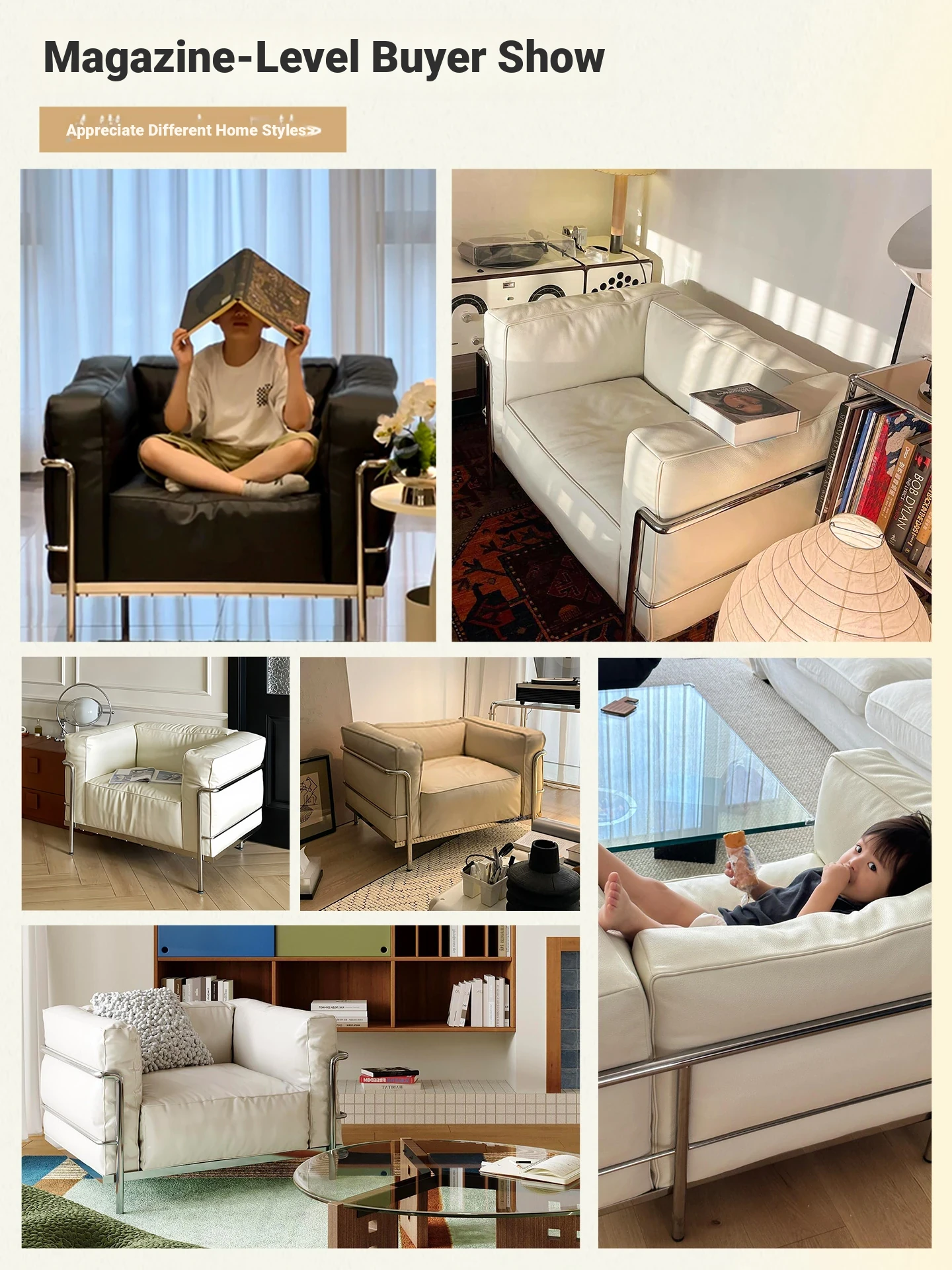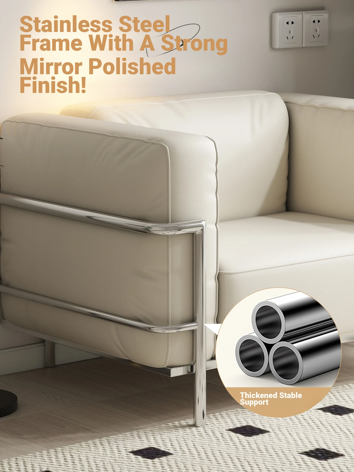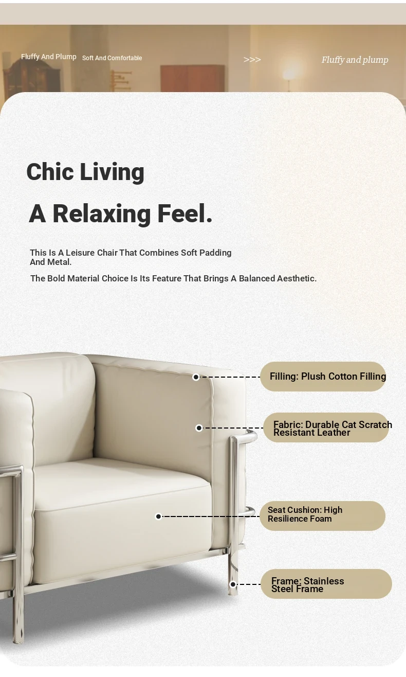 Le Corbusier LC3 Armchair - Designer Cream Minimalist Bauhaus Lounge Chair for Living Room - Perfect Relaxation Seat for Modern Spaces