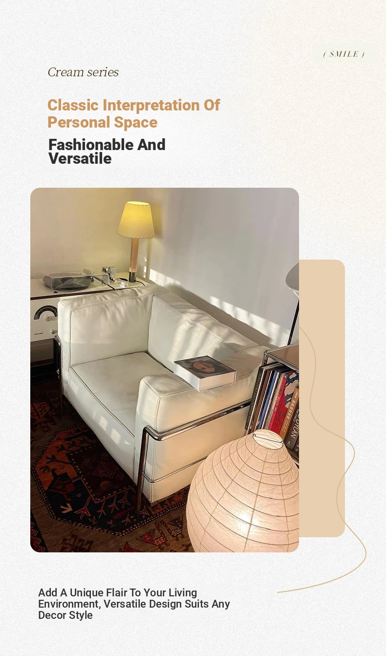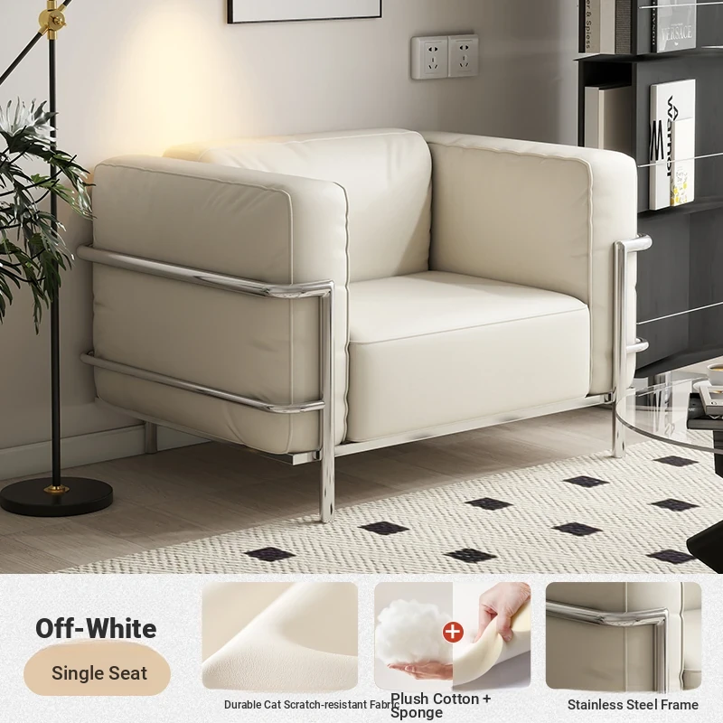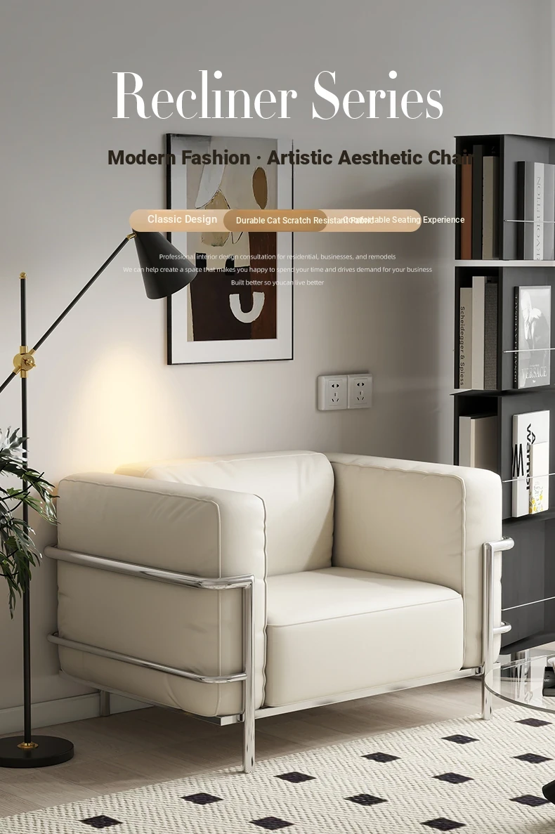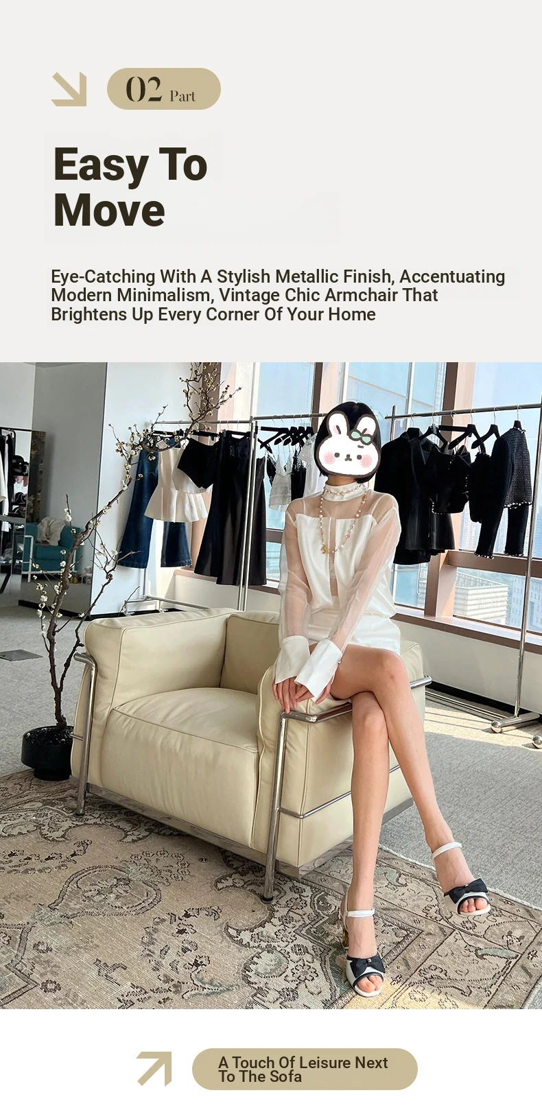 Le Corbusier LC3 Armchair - Designer Cream Minimalist Bauhaus Lounge Chair for Living Room - Perfect Relaxation Seat for Modern Spaces