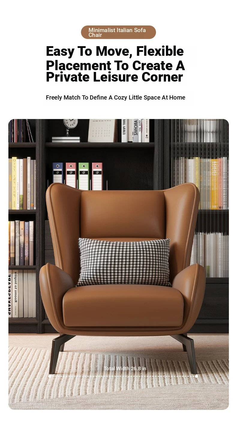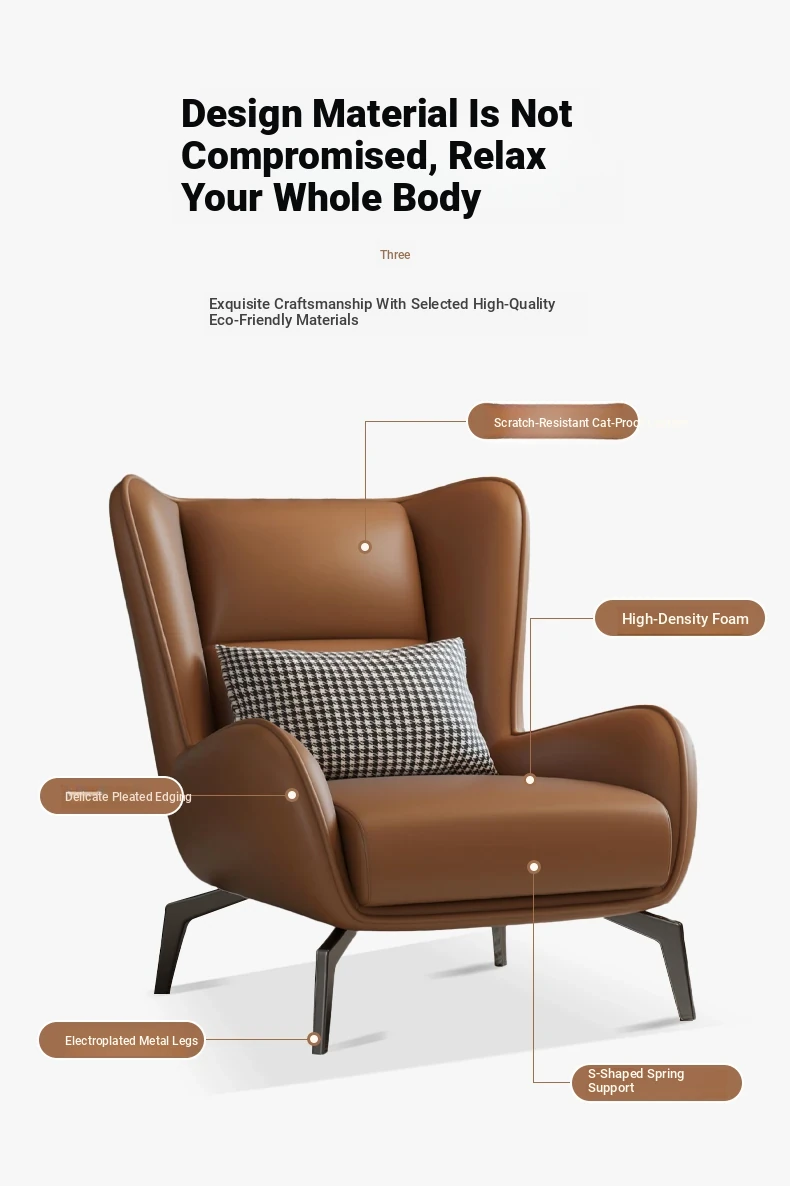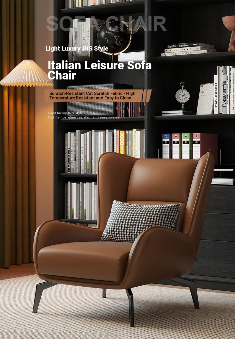 Minimalist Italian Single Sofa Chair - Luxury Leisure Tiger Chair, Designer Recliner for Relaxation, Perfect for Your Living Room