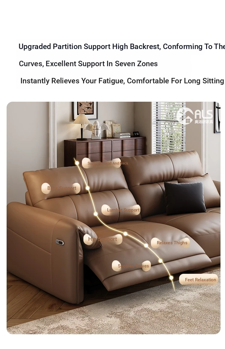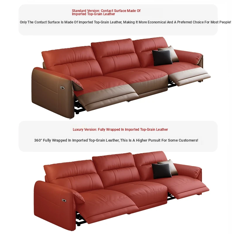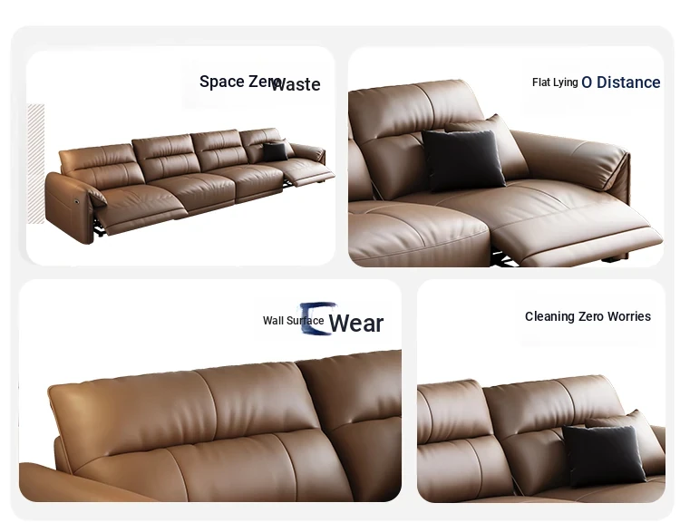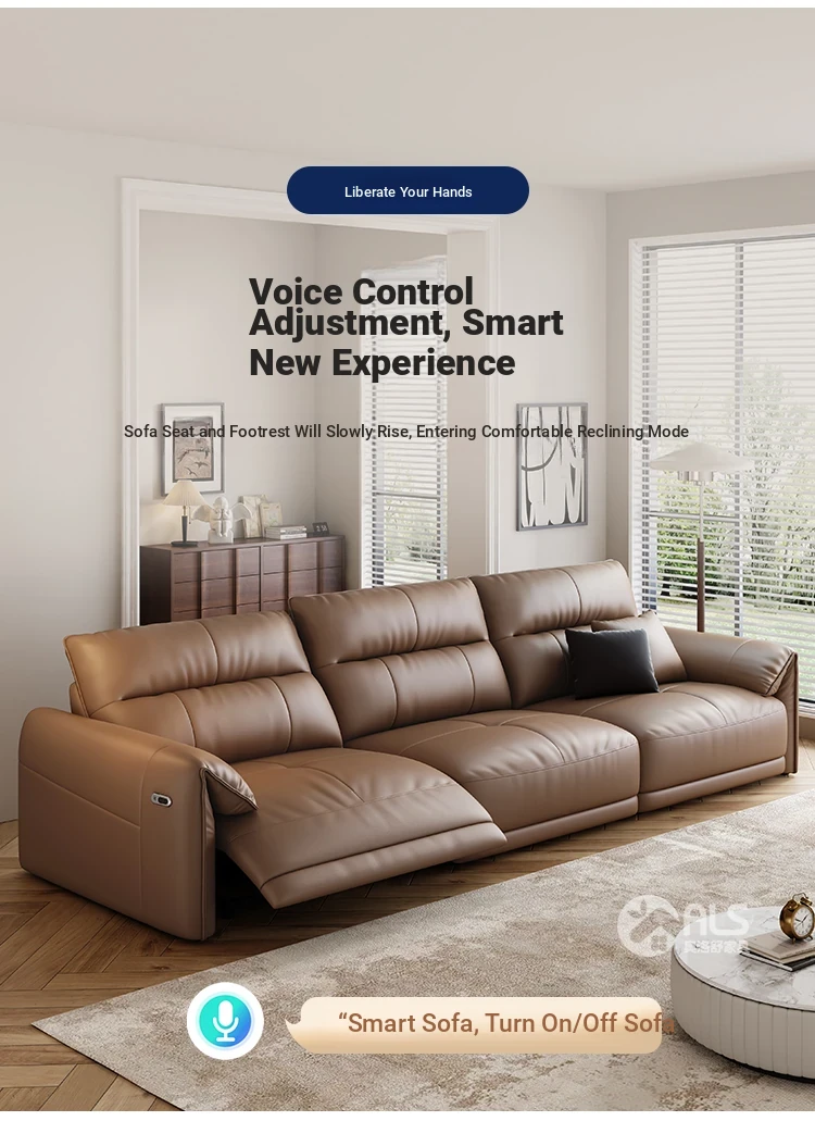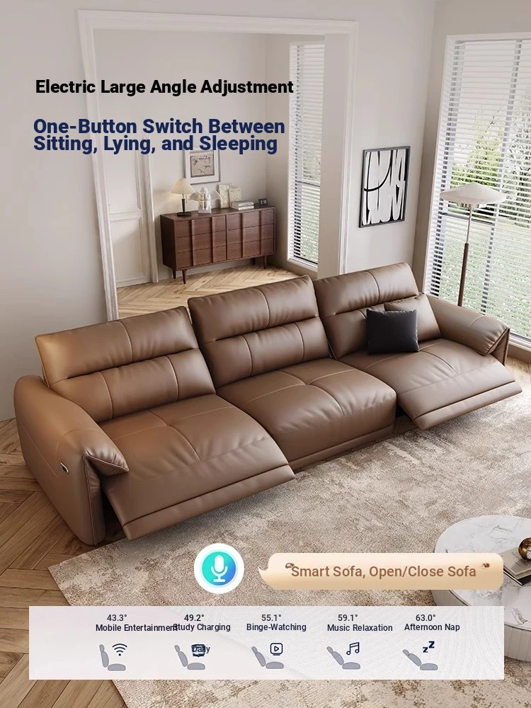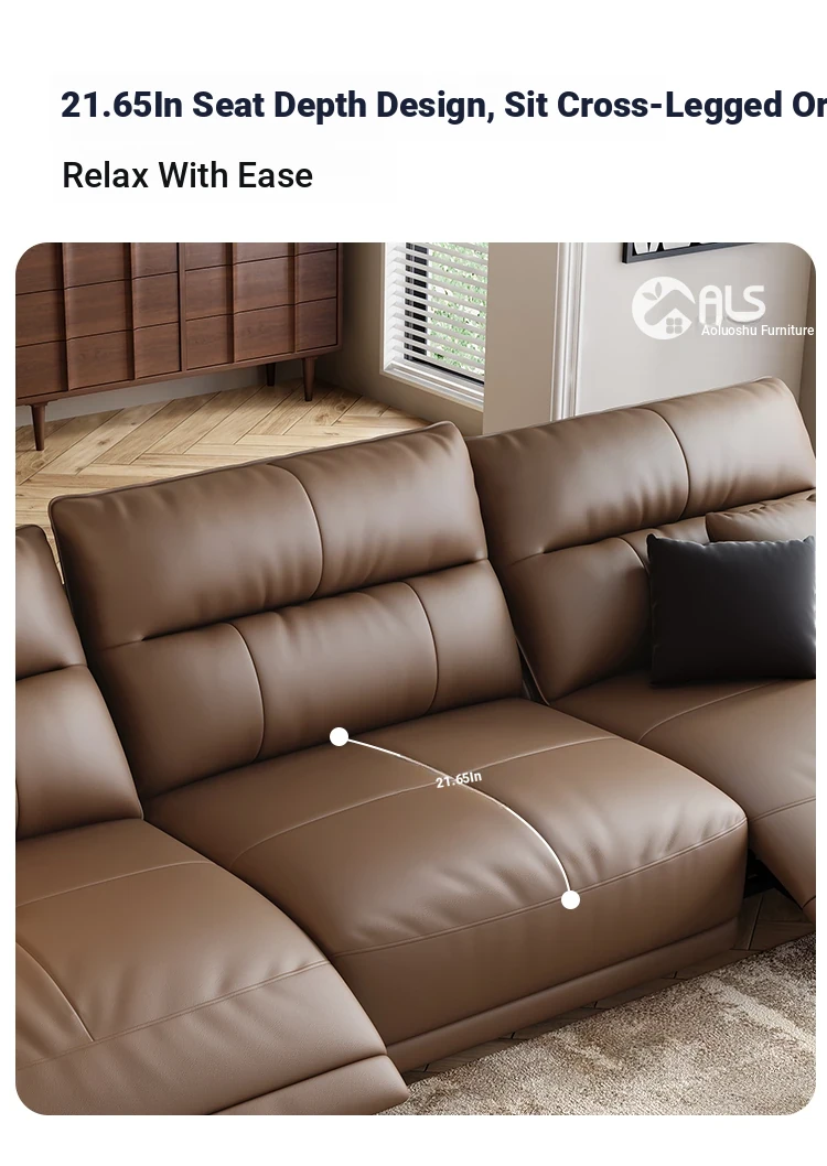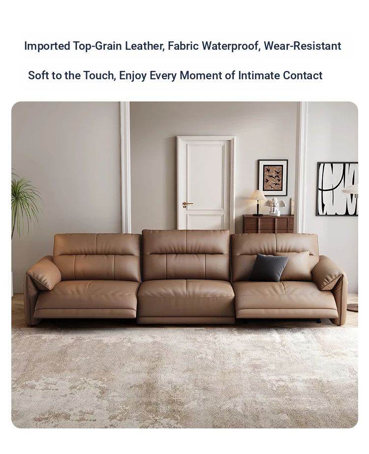 Modern Leather Sofa with Reclining Space Capsule Design for Living Room - Perfect for Small Apartments, Seats 3-4 People, Stylish Italian Aesthetic