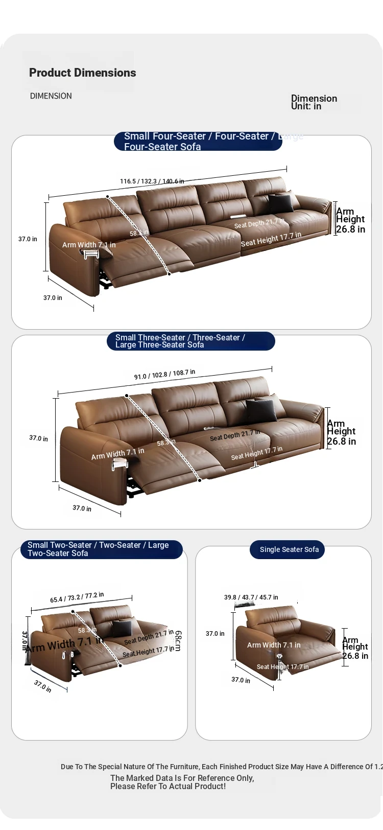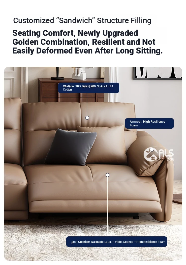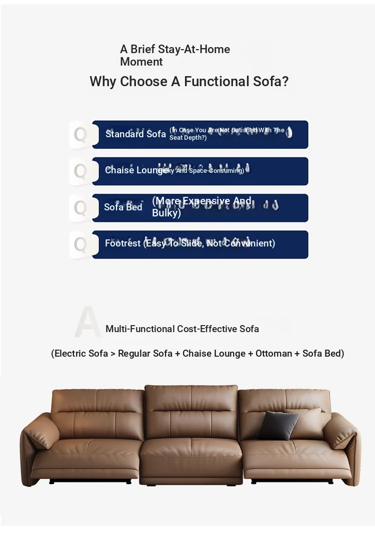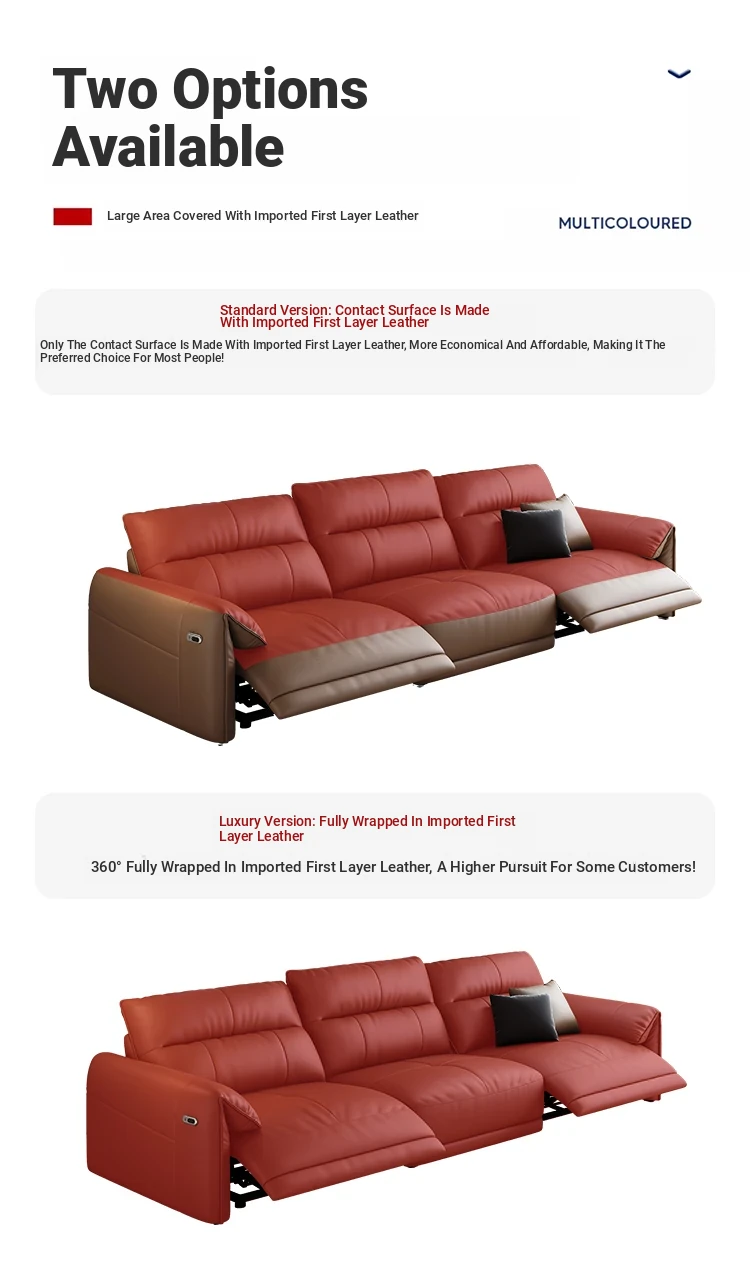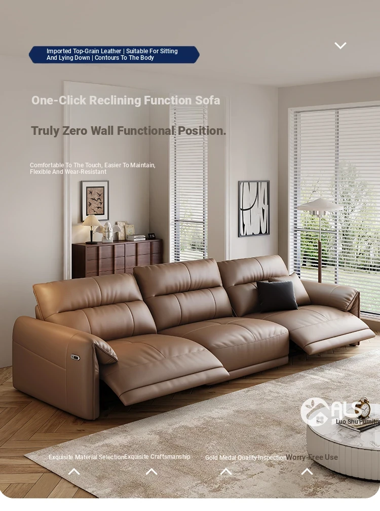 Modern Leather Sofa with Reclining Space Capsule Design for Living Room - Perfect for Small Apartments, Seats 3-4 People, Stylish Italian Aesthetic