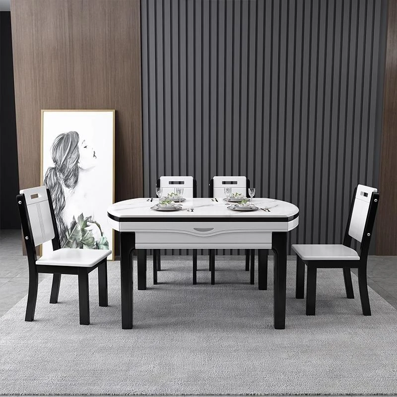 [Import rock slab/Marble] 47.24 in dining table + Solid Wood 4 chairs