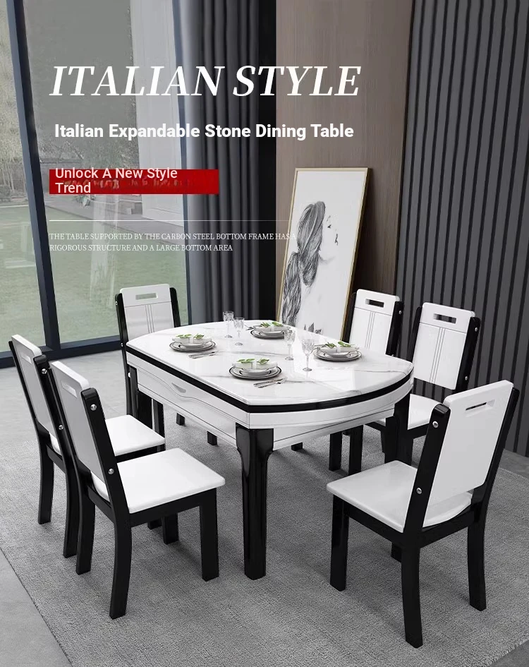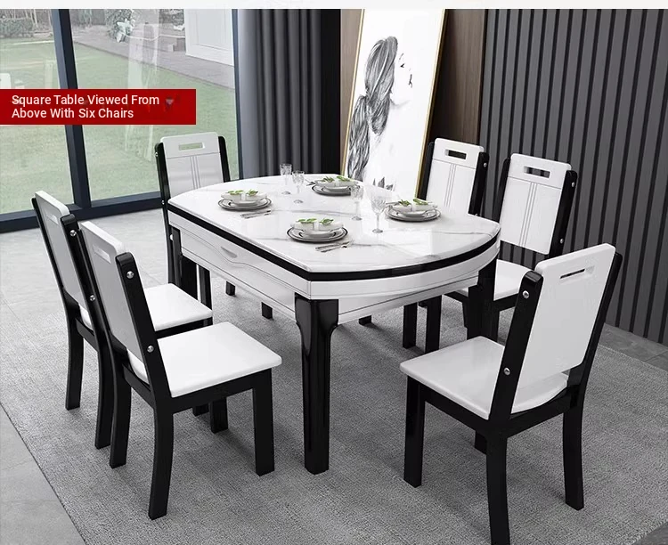 [Import rock slab/Marble] 53.15 in dining table + solid wood 6 chairs