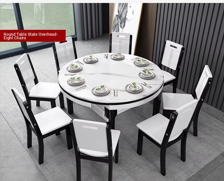 [Import rock slab/Marble] 47.24 in dining table + solid wood 8 chairs