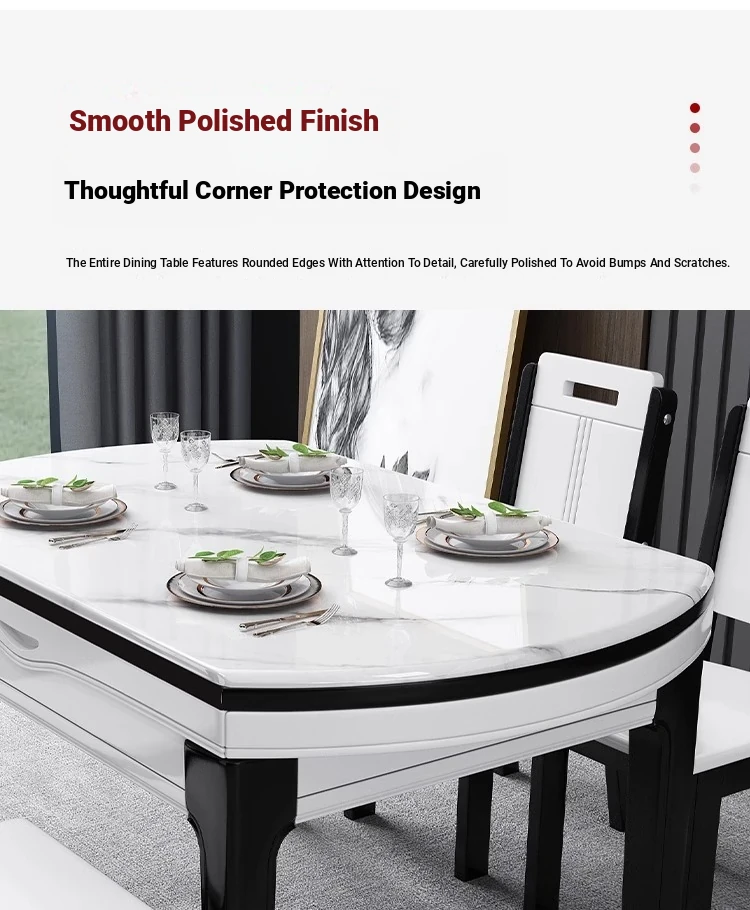 [Import rock slab/Marble] 53.15 in dining table + solid wood 8 chairs