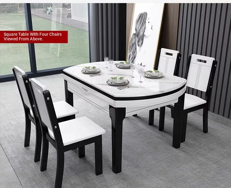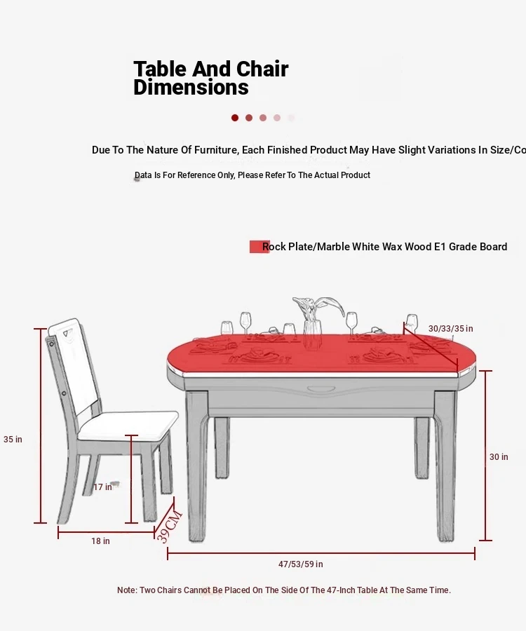 [Import rock slab/Marble] 53.15 in dining table + Solid Wood 4 chairs