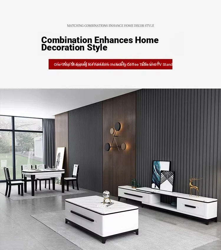 [Import] 59.06 ins 1 table 6 chairs + tea table TV cabinet