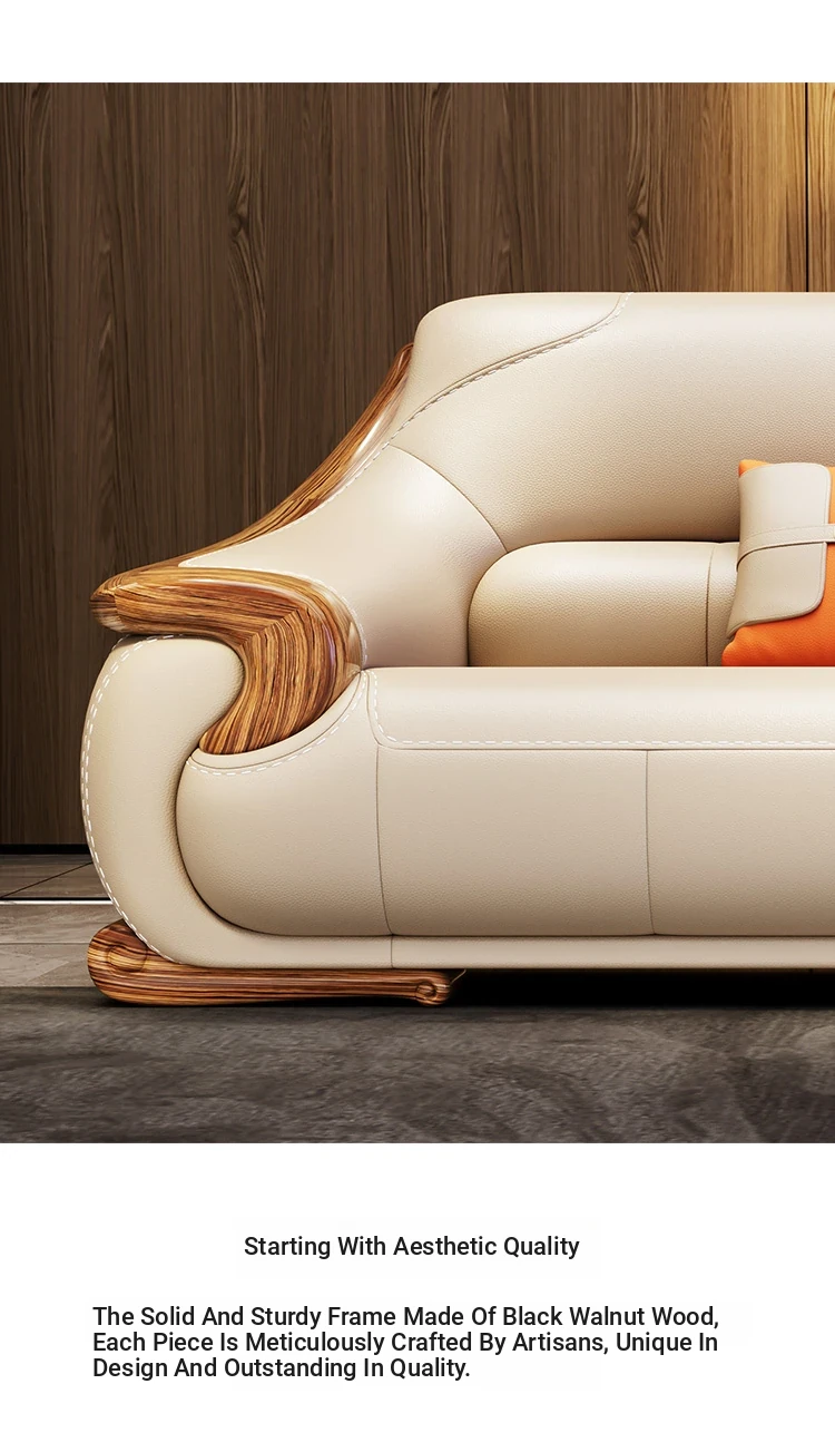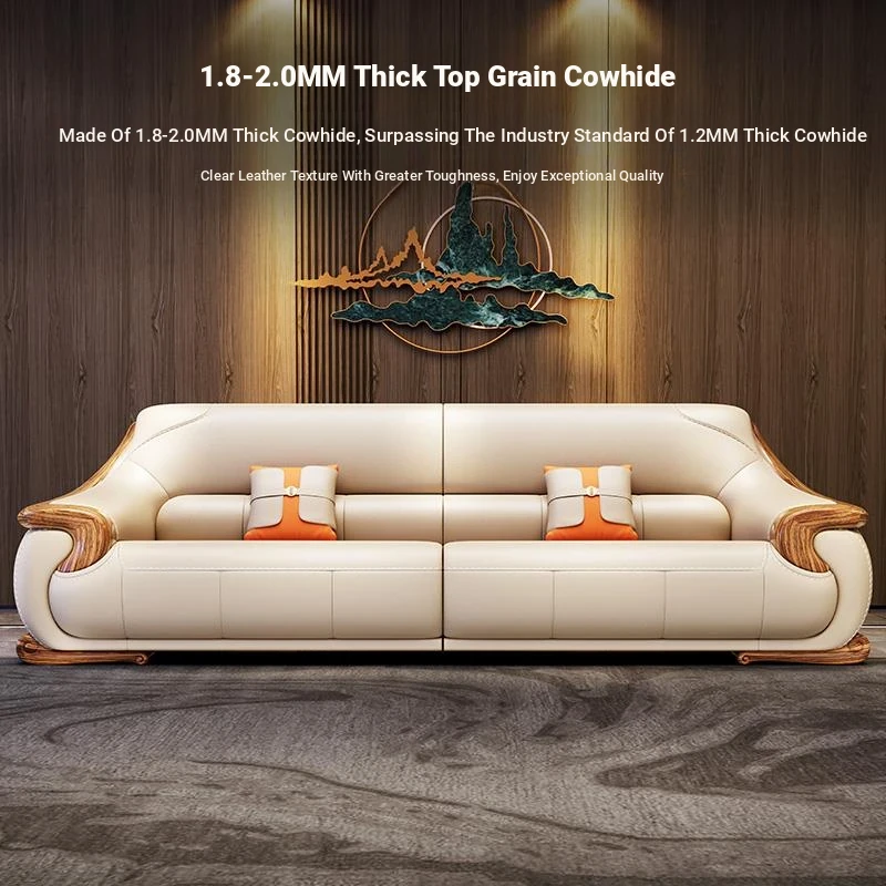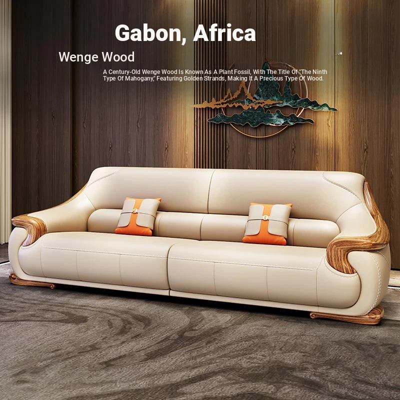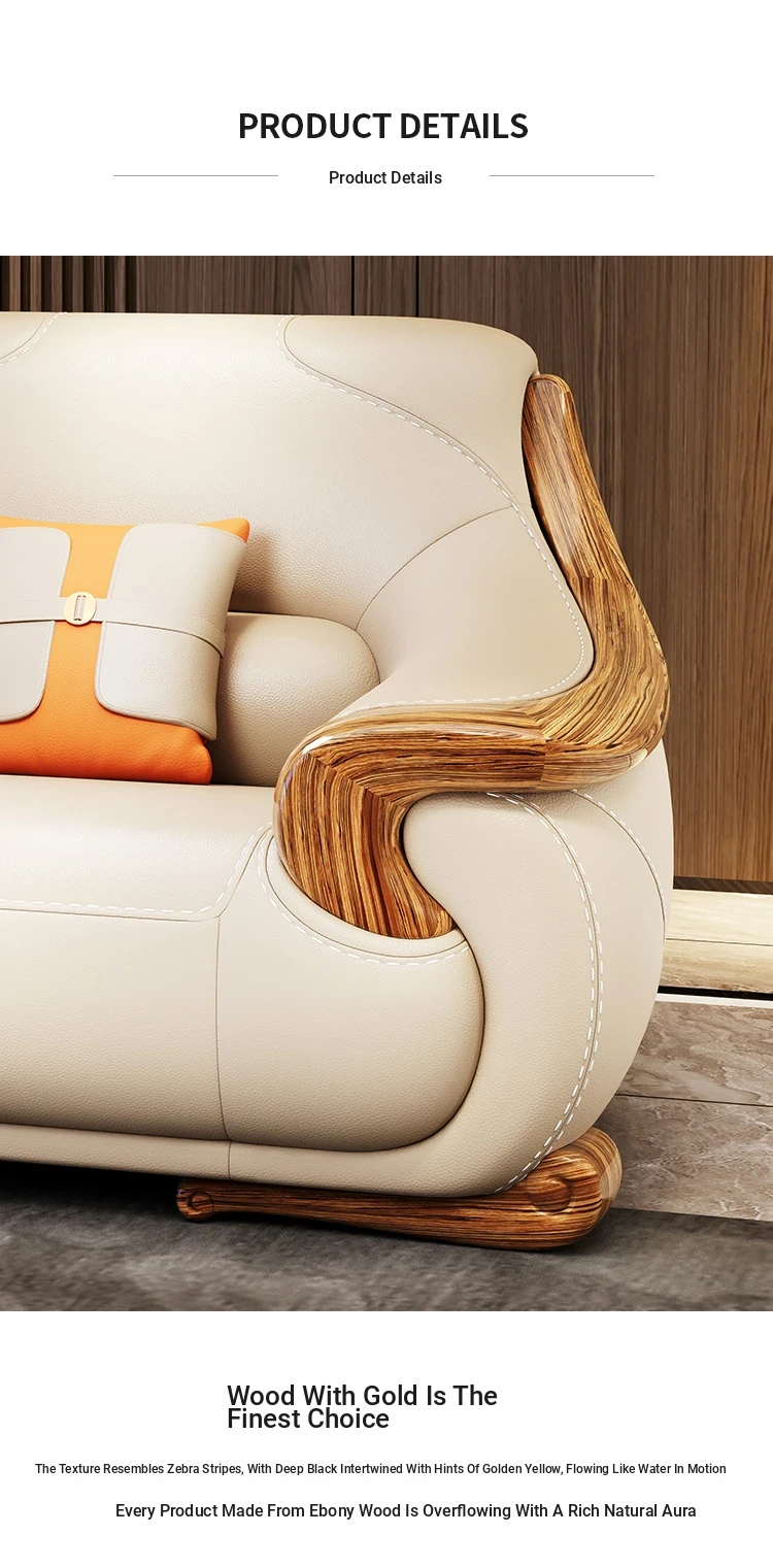 Modern Minimalist New Chinese Style Black Gold Wood and Layered Cowhide Sofa Set - Solid Wood, 2025 New Arrival, Genuine Leather for Your Living Room