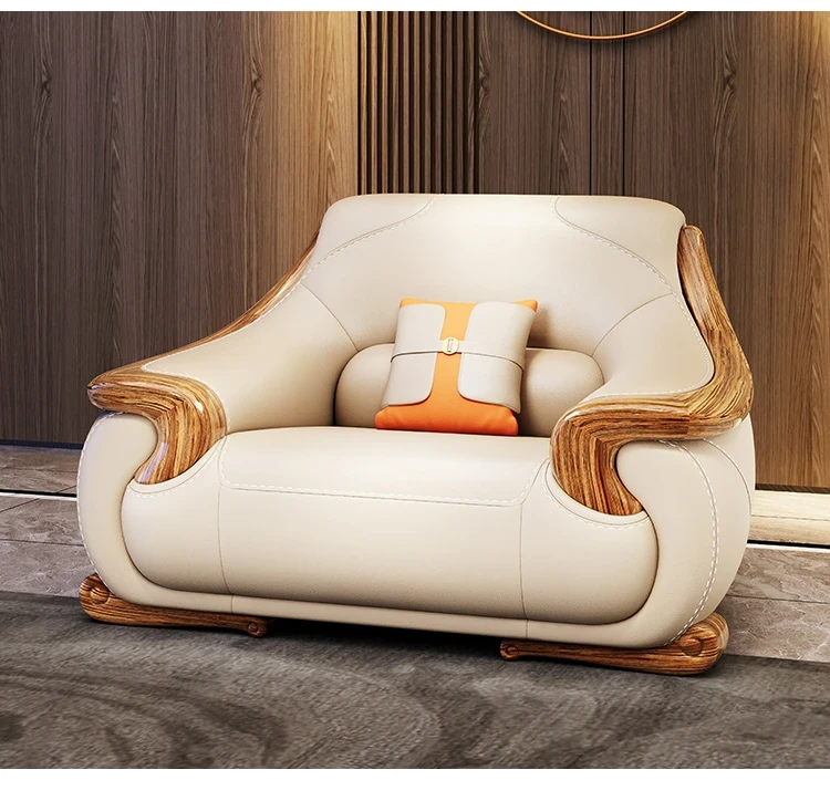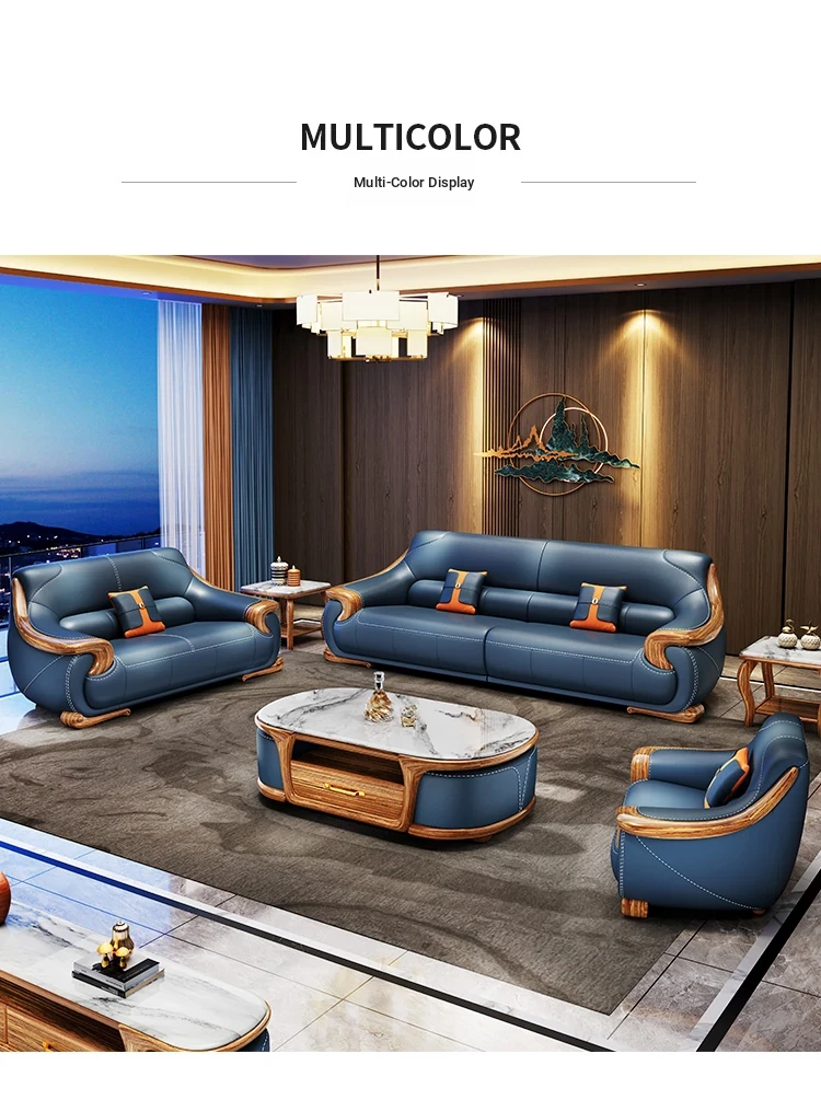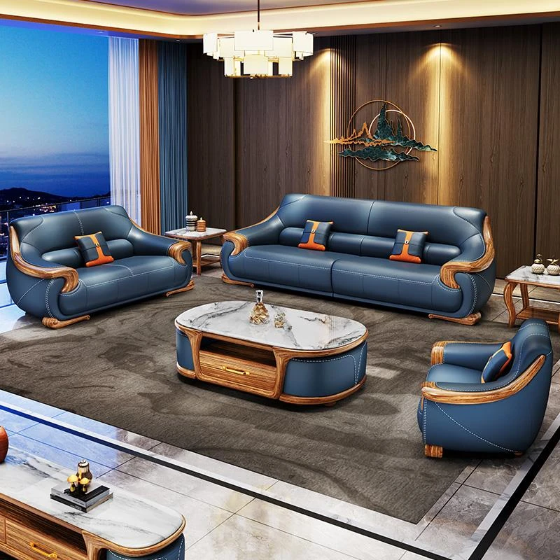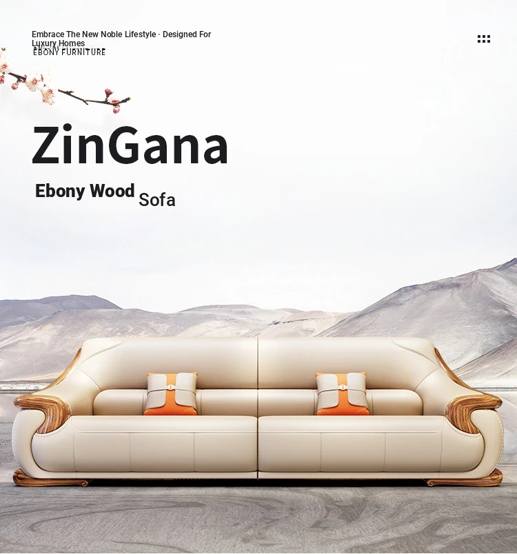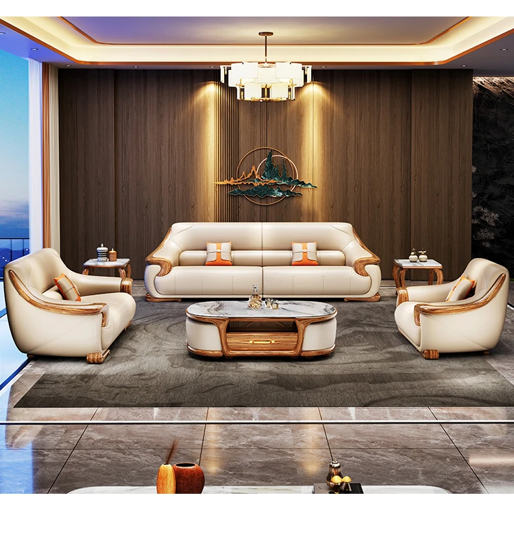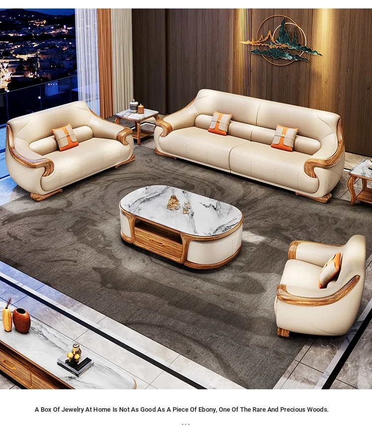 Modern Minimalist New Chinese Style Black Gold Wood and Layered Cowhide Sofa Set - Solid Wood, 2025 New Arrival, Genuine Leather for Your Living Room