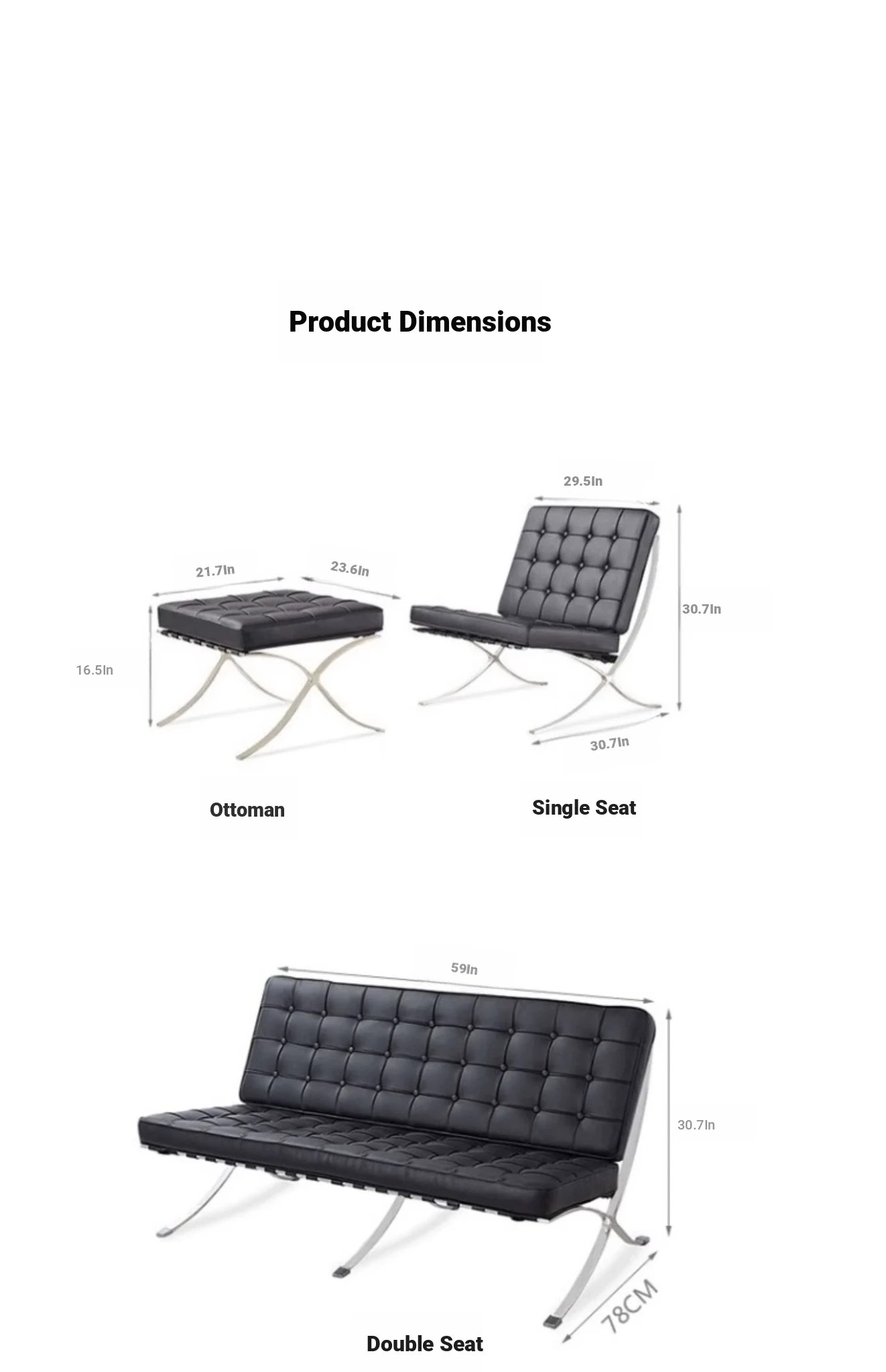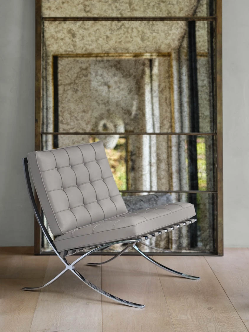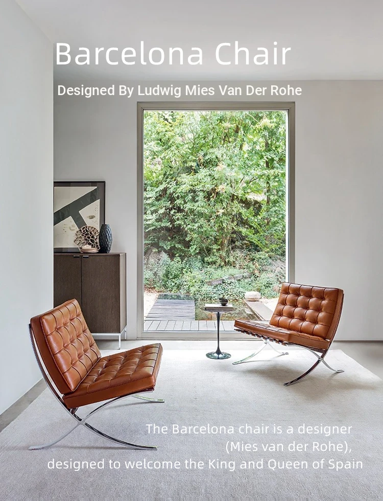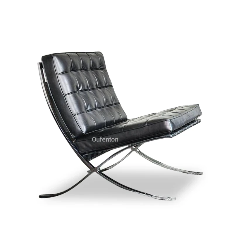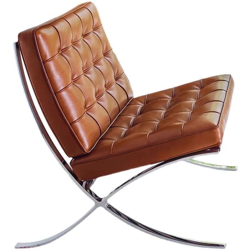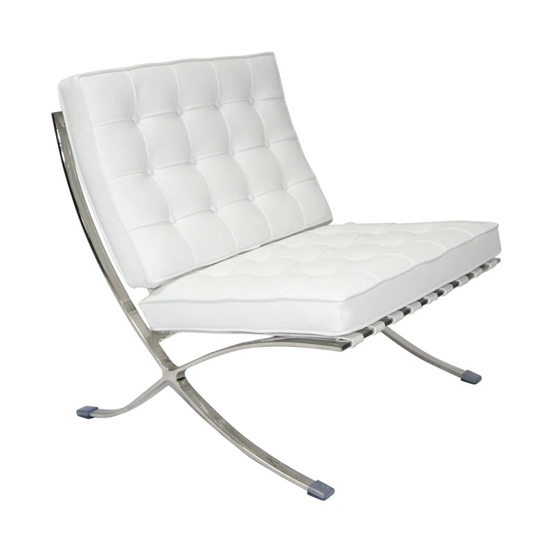 Nordic Barcelona Chair - Bauhaus Style Vintage White Leather & Stainless Steel Single Sofa - Designer Relaxation Armchair