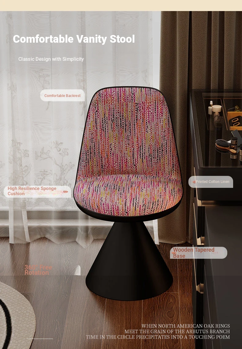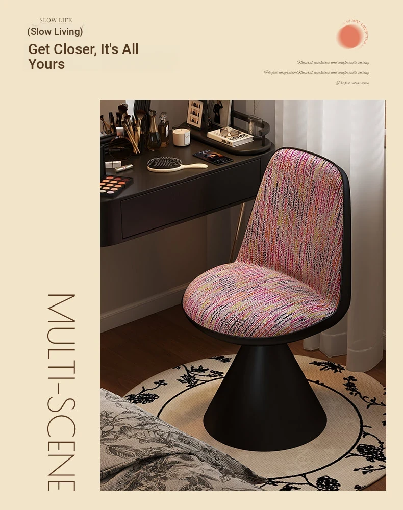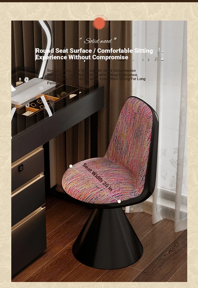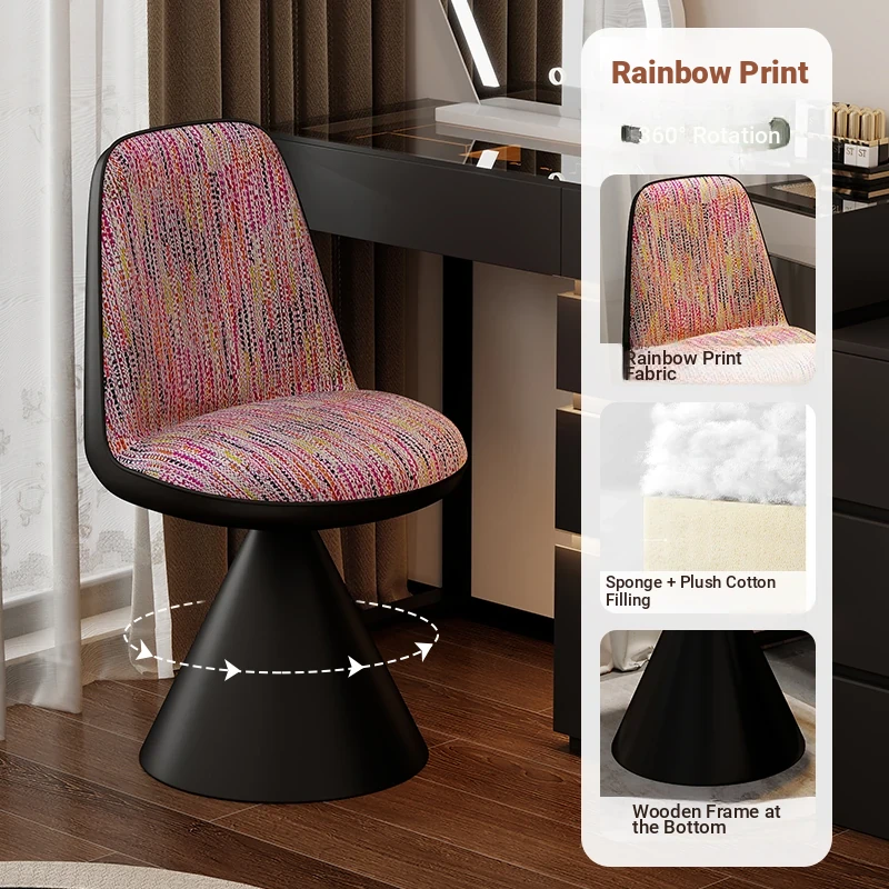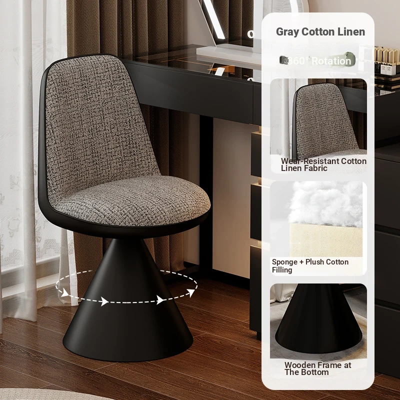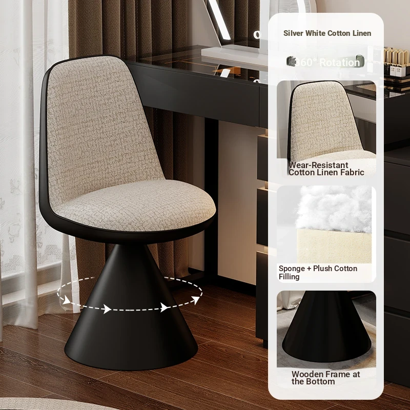 Nordic Luxury Rotatable Makeup Chair with Backrest – Stylish Vanity Stool for Bedroom, Perfect for Home Use and Elegant Grooming Experience