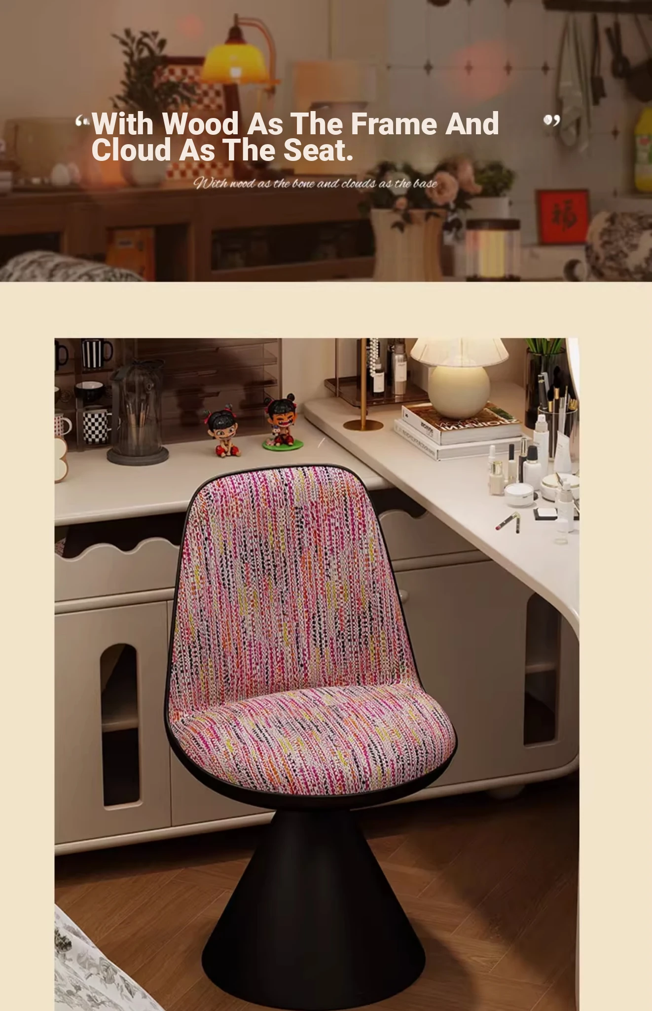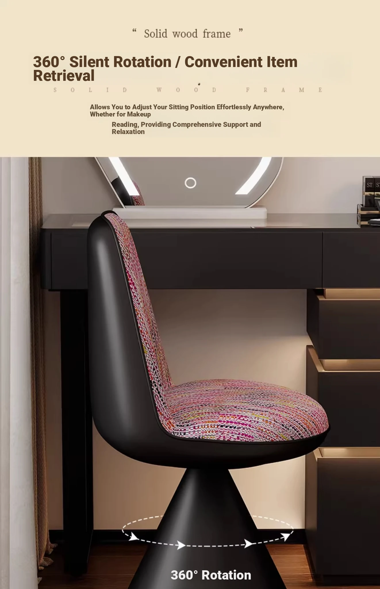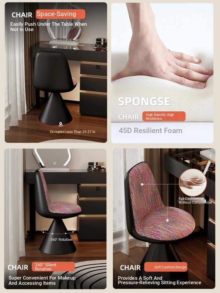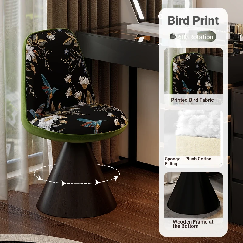 Nordic Luxury Rotatable Makeup Chair with Backrest – Stylish Vanity Stool for Bedroom, Perfect for Home Use and Elegant Grooming Experience