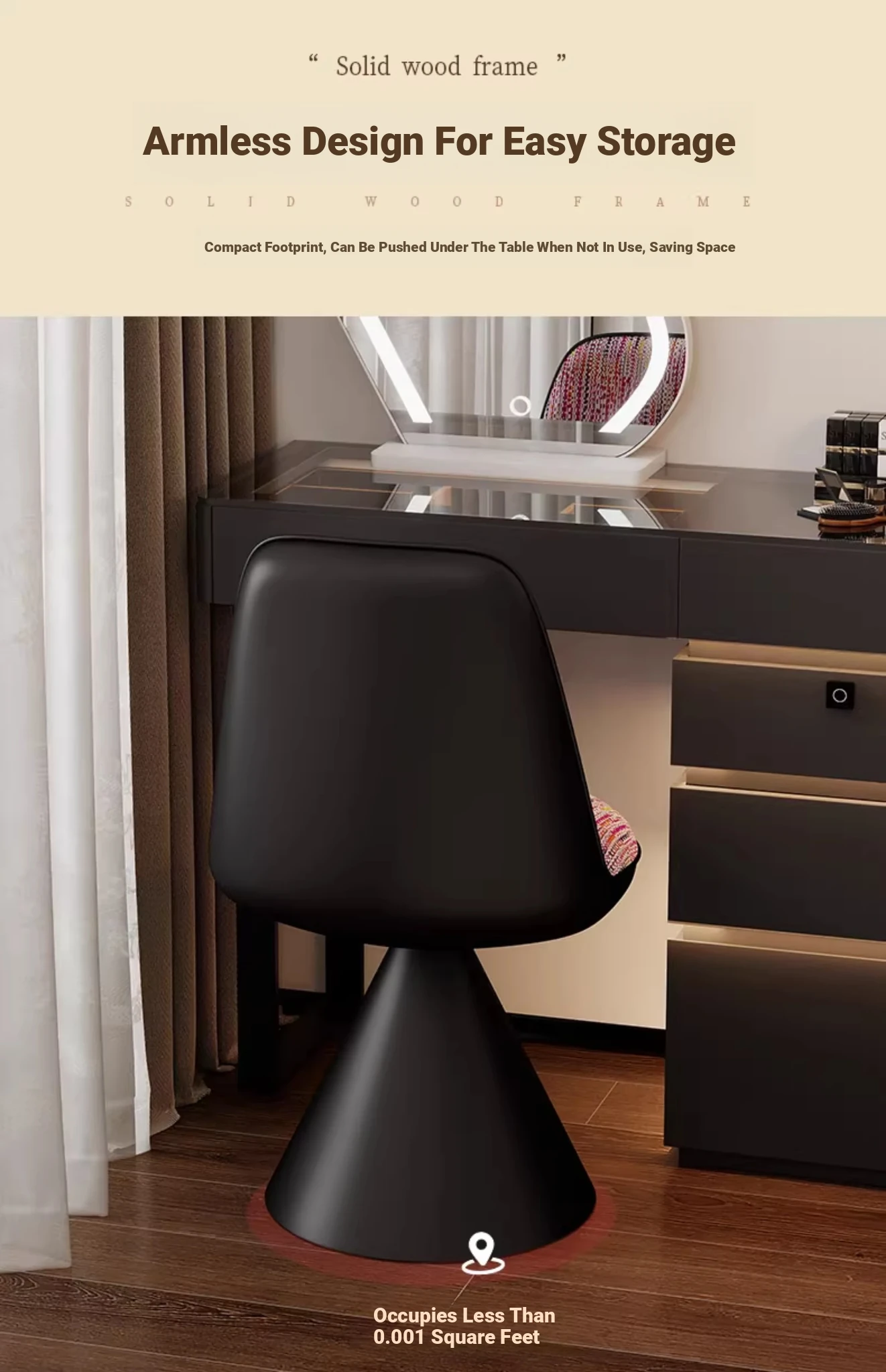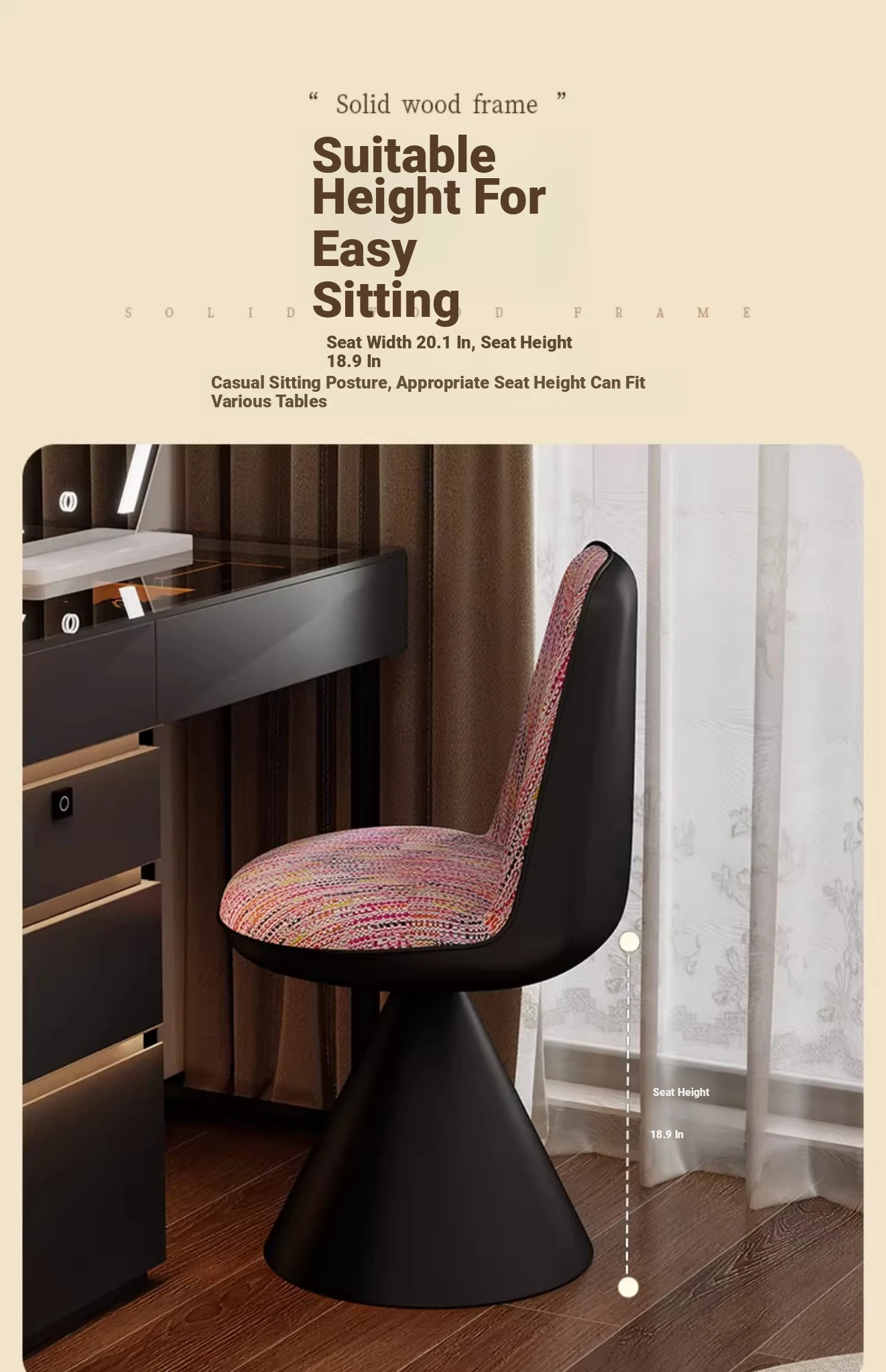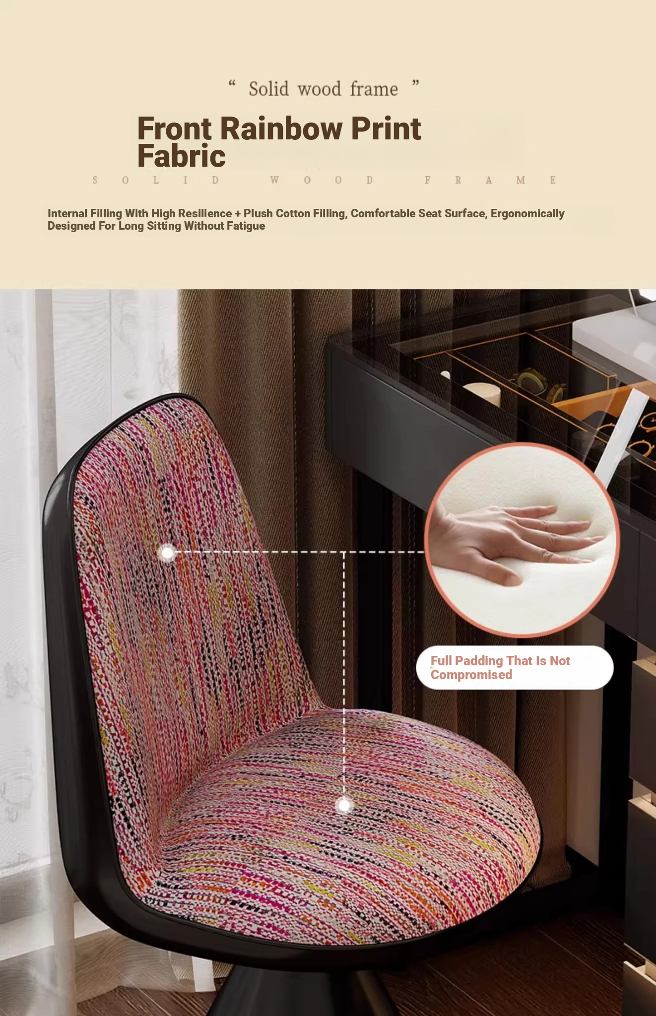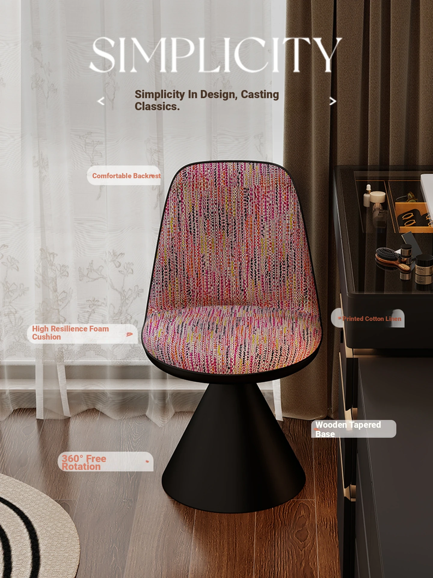 Nordic Luxury Rotatable Makeup Chair with Backrest – Stylish Vanity Stool for Bedroom, Perfect for Home Use and Elegant Grooming Experience