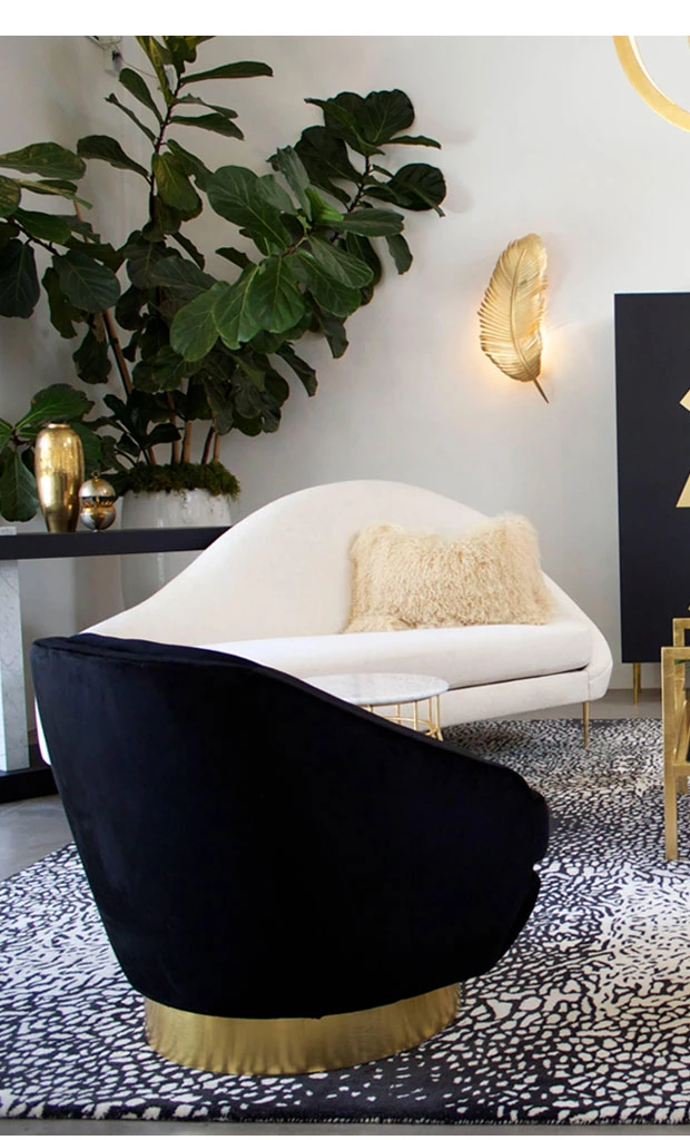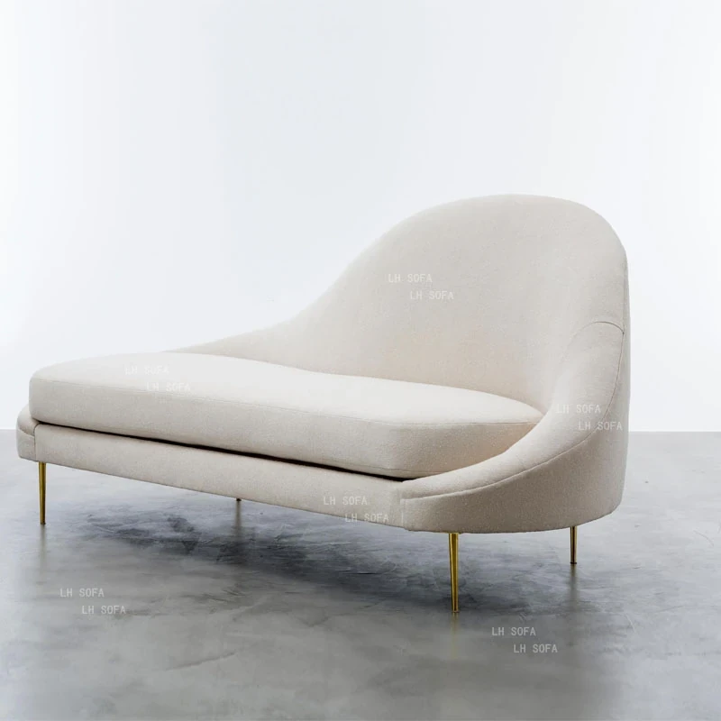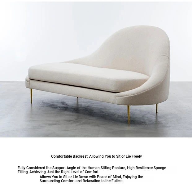 Nordic Modern Luxury Chaise Lounge - American Style Upholstered Sofa, Curved Design for Small Spaces, Minimalist Metal Frame, Perfect for Relaxation and Comfort