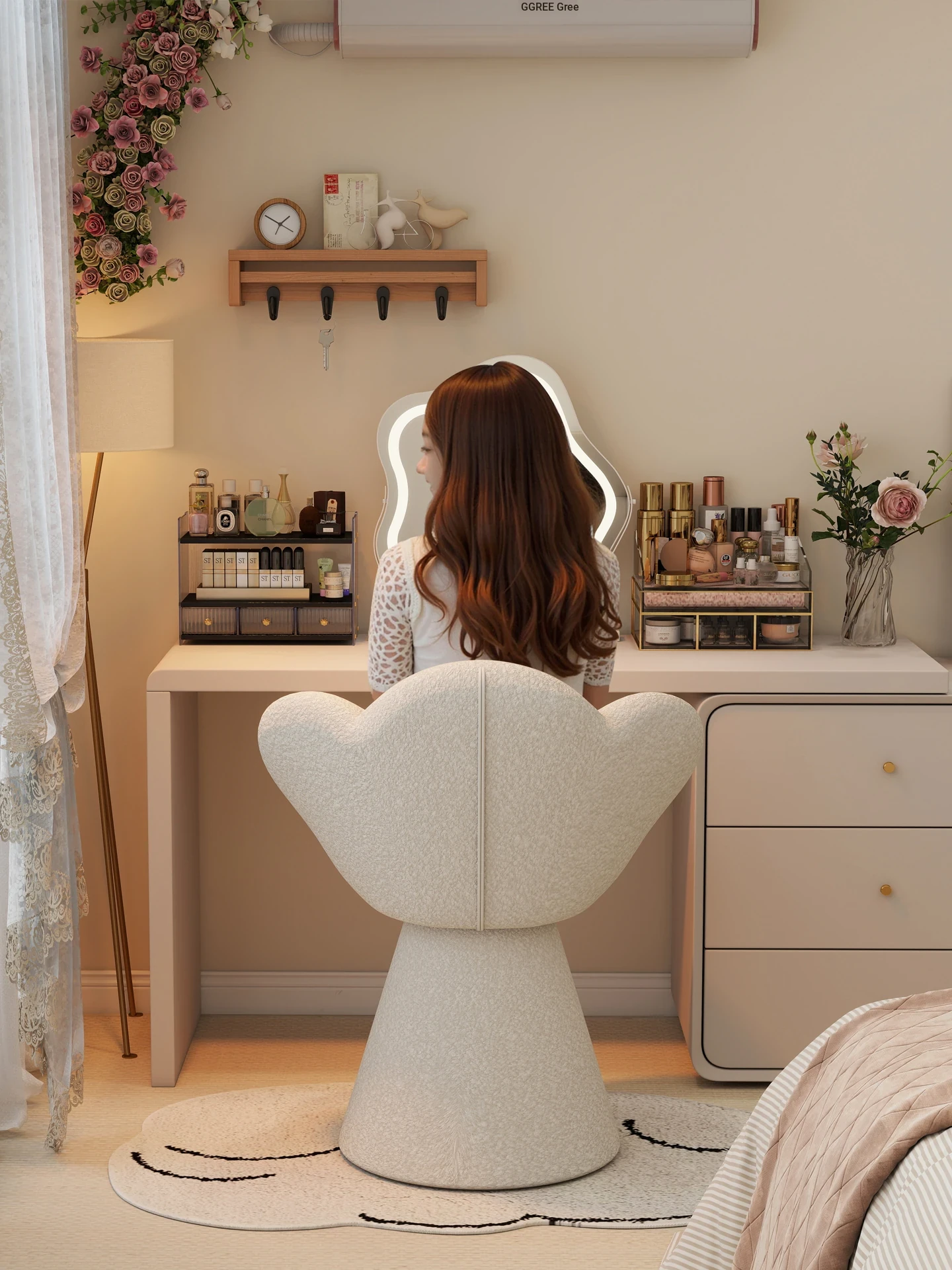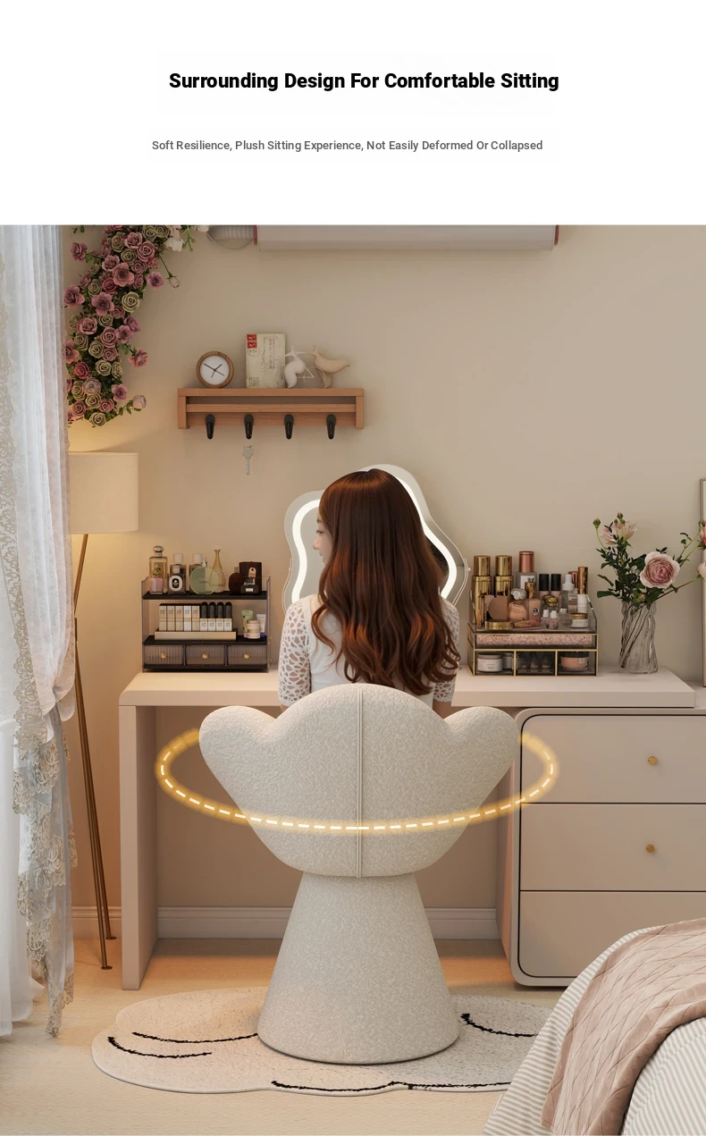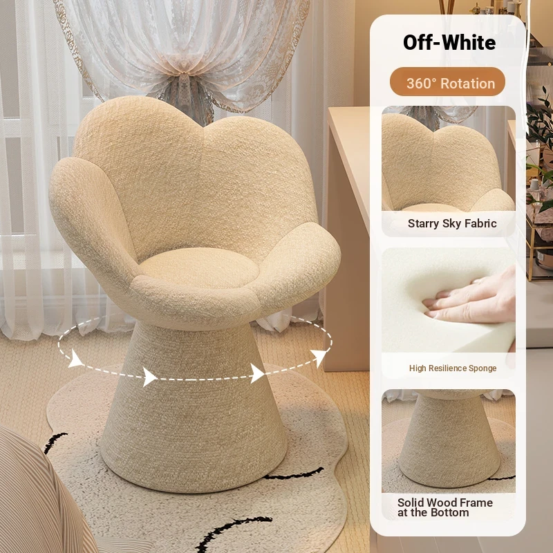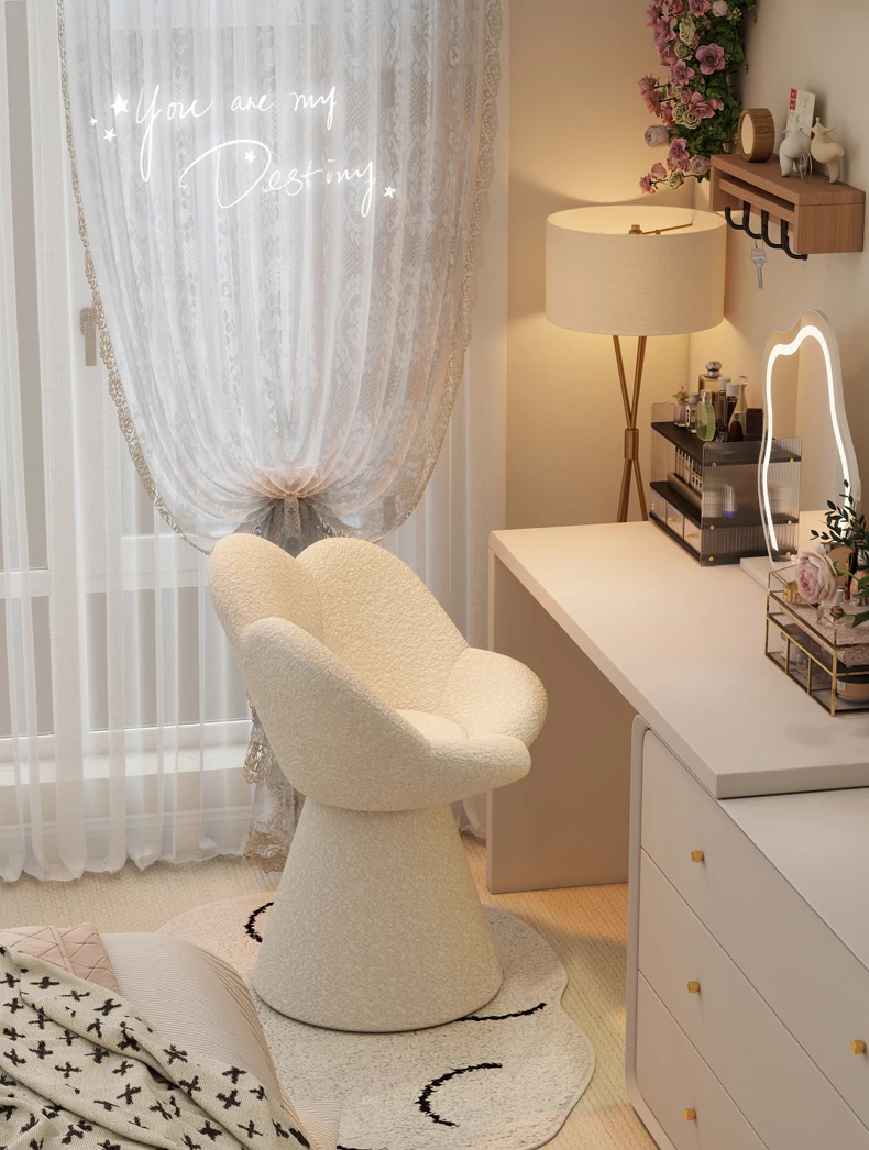 Petal Chair for Bedroom Vanity - Modern Minimalist Design, Perfect for Small Spaces, Creamy Aesthetic, High-End Quality, Ideal for Makeup and Grooming.