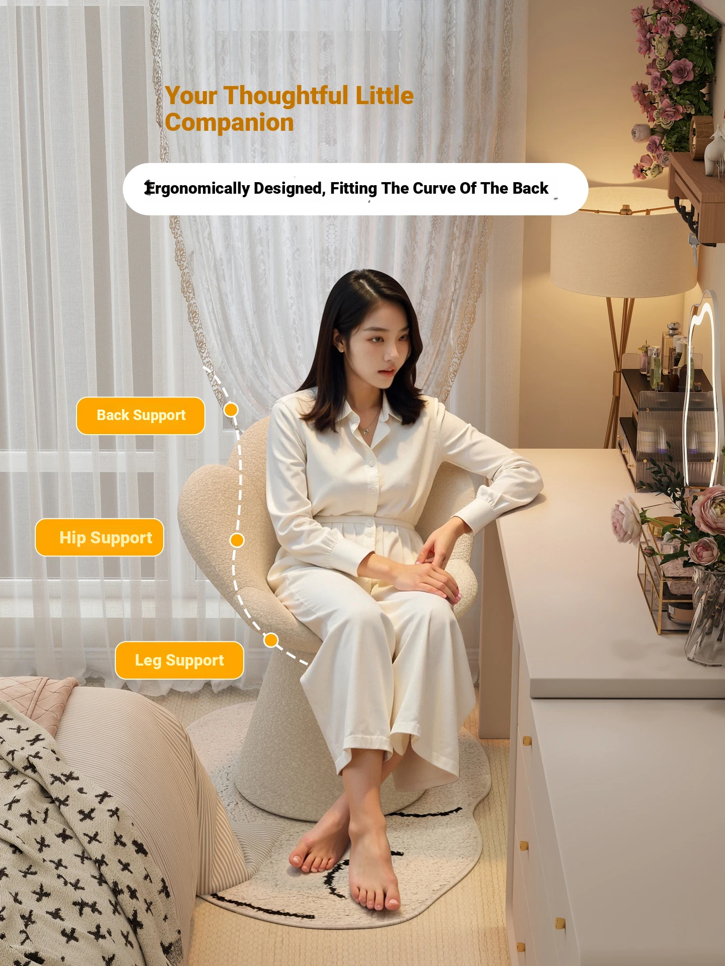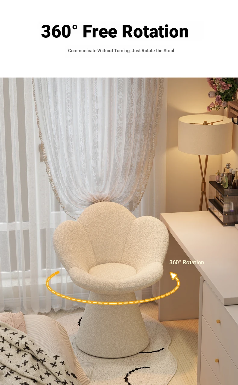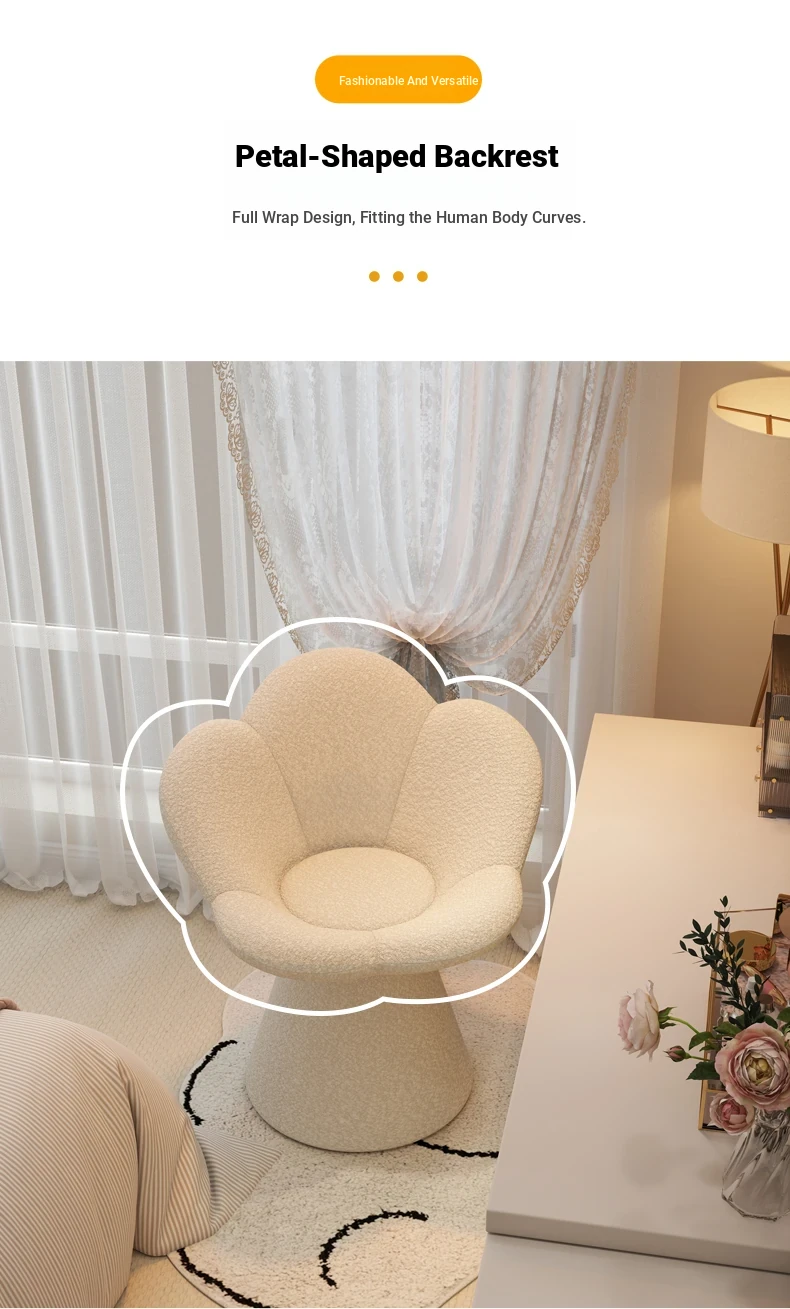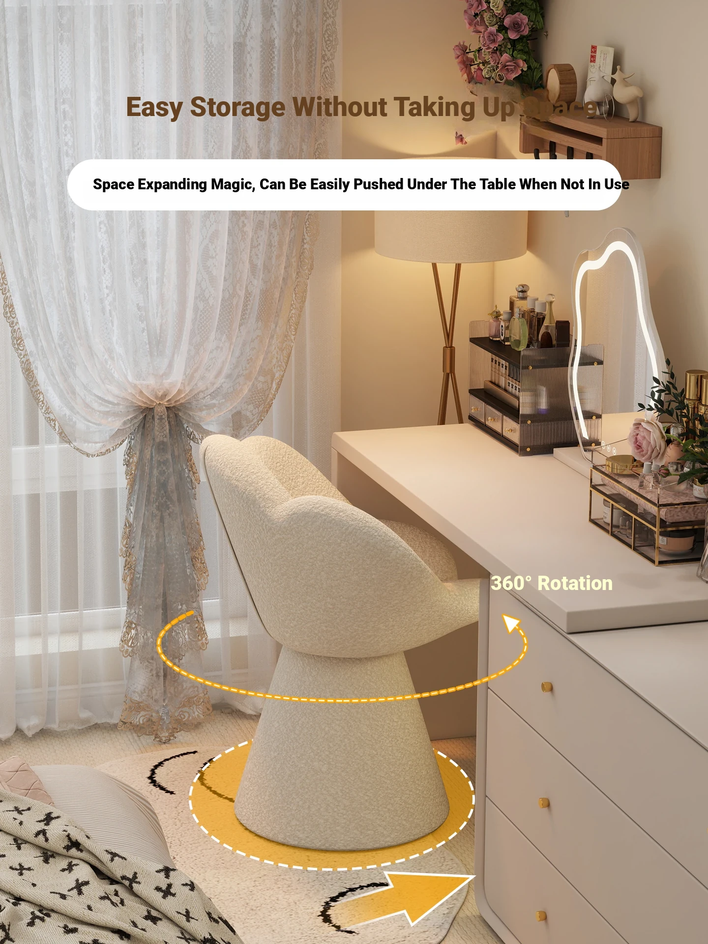 Petal Chair for Bedroom Vanity - Modern Minimalist Design, Perfect for Small Spaces, Creamy Aesthetic, High-End Quality, Ideal for Makeup and Grooming.