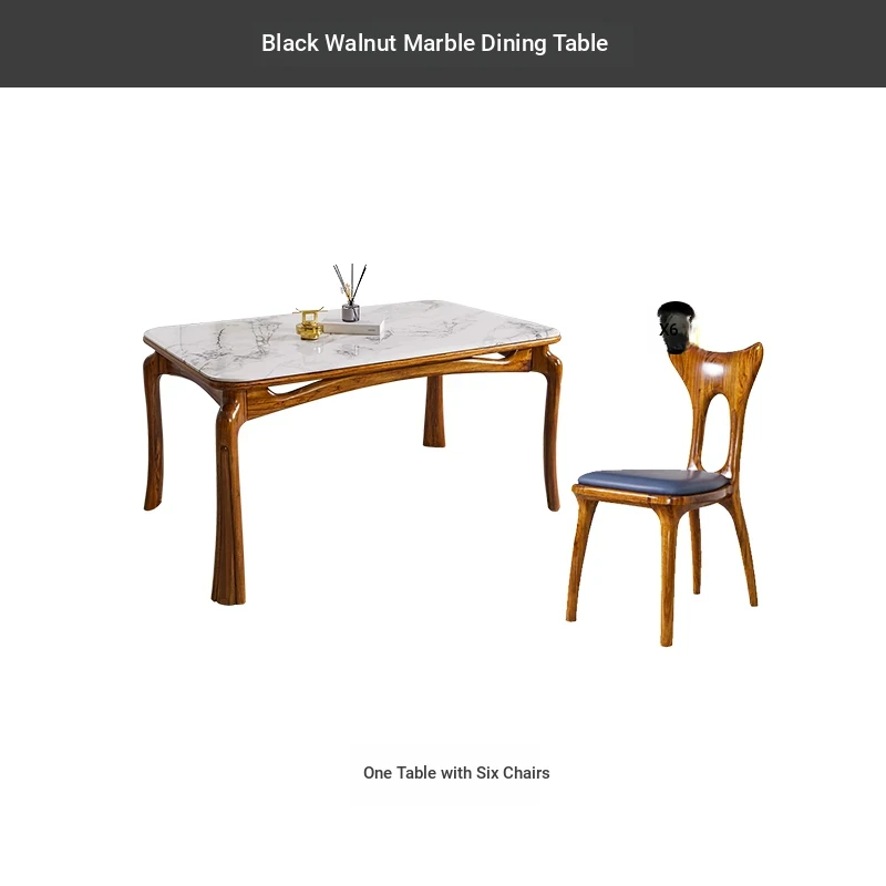 1 Table +6 chairs [ebony marble dining table and chairs]]