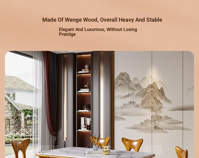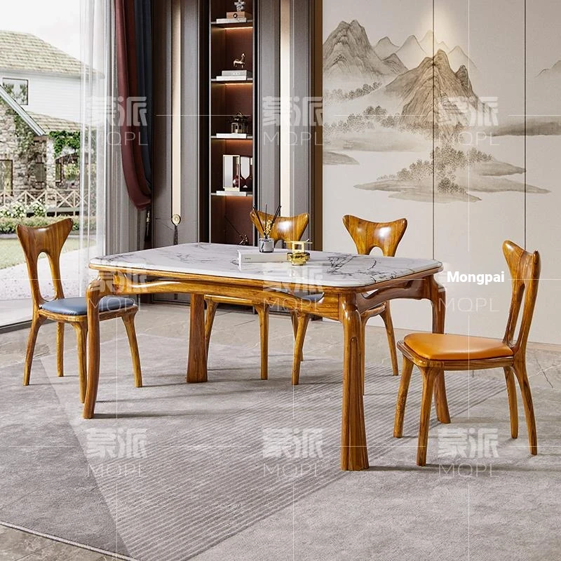 Premium Black Walnut Dining Table Set - Elegant New Chinese Style Solid Wood Dining Table and Chairs for Home Use, Crafted in Foshan, Guangdong. Perfect for Elevating Your Living Room Décor!
