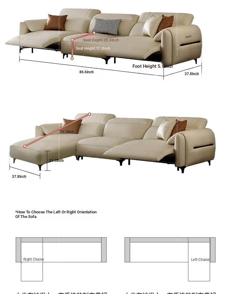 [Thickened top layer cowhide full coverage] 104.33 ins for three people [left and right Electric]]