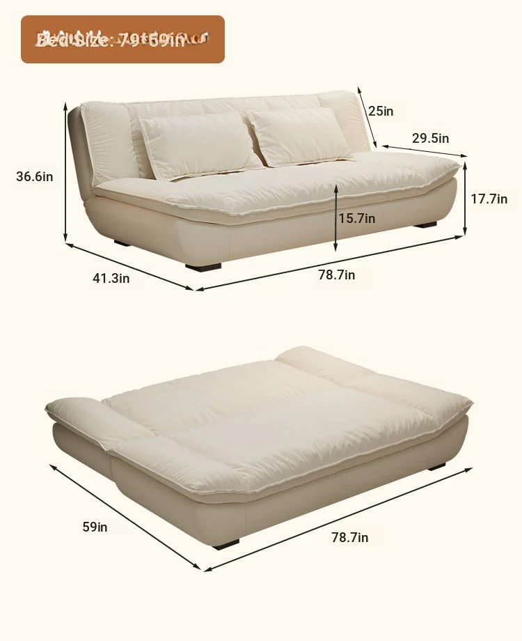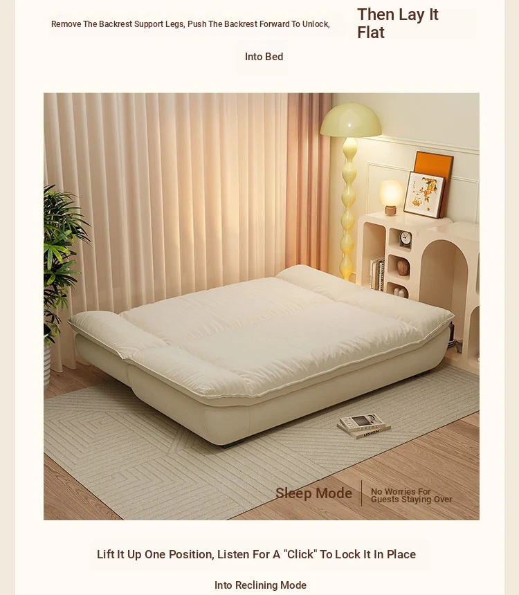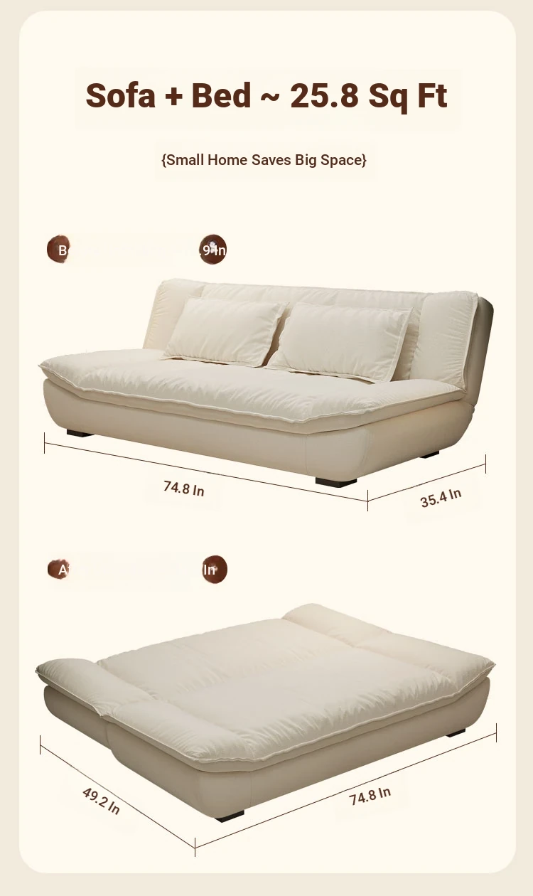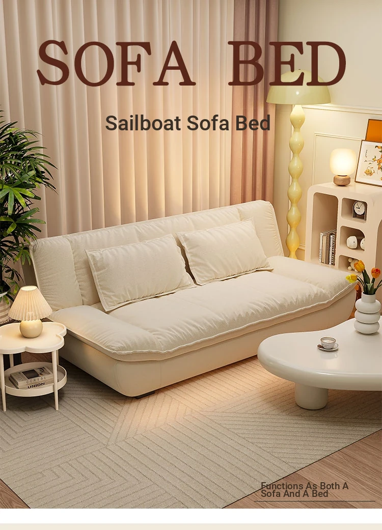 Sailboat Cream Fabric Sofa Bed - Foldable, Perfect for Small Living Rooms - 2025 New French Style, Dual-Use for Apartments, Stylish and Space-Saving!