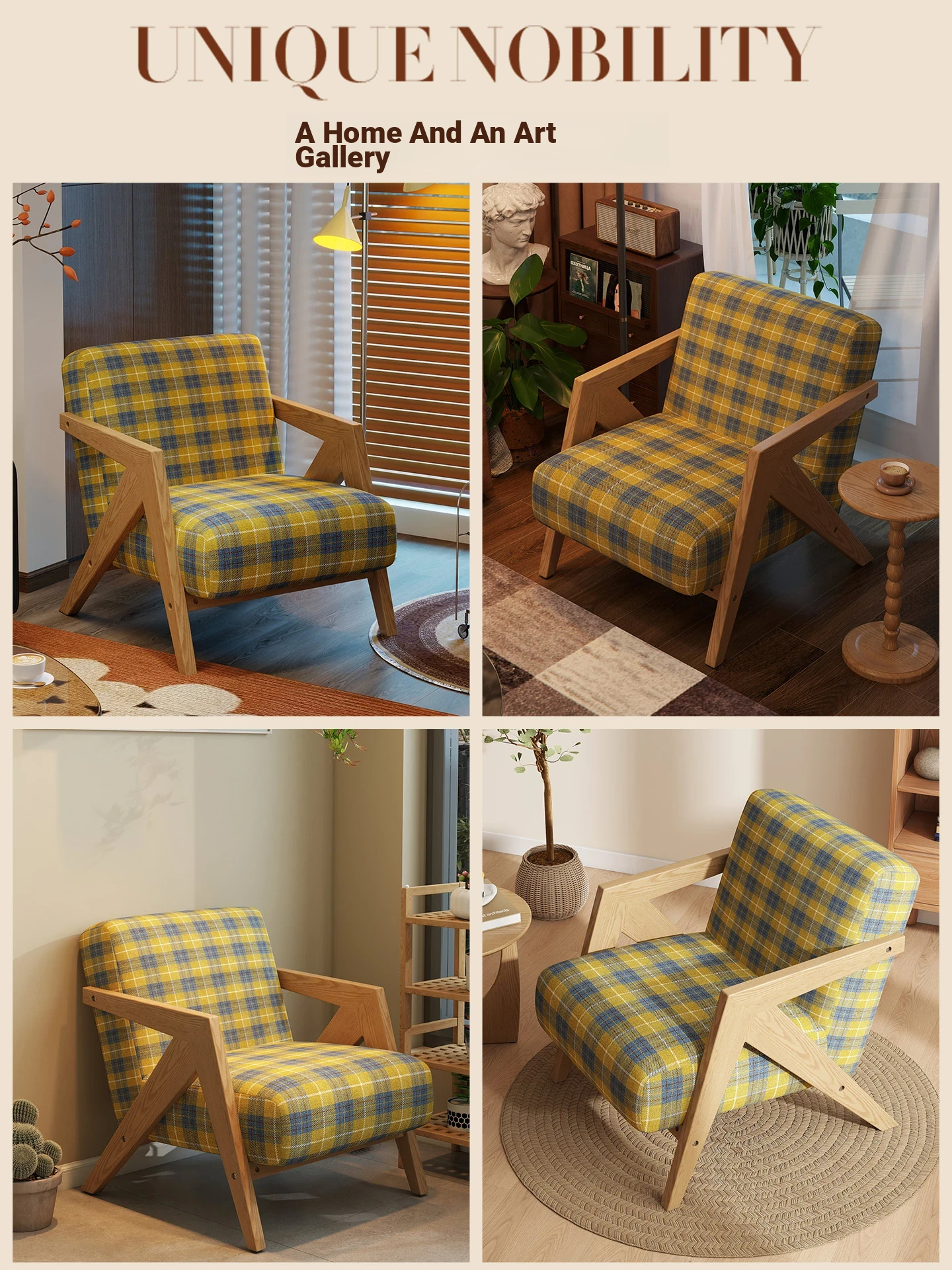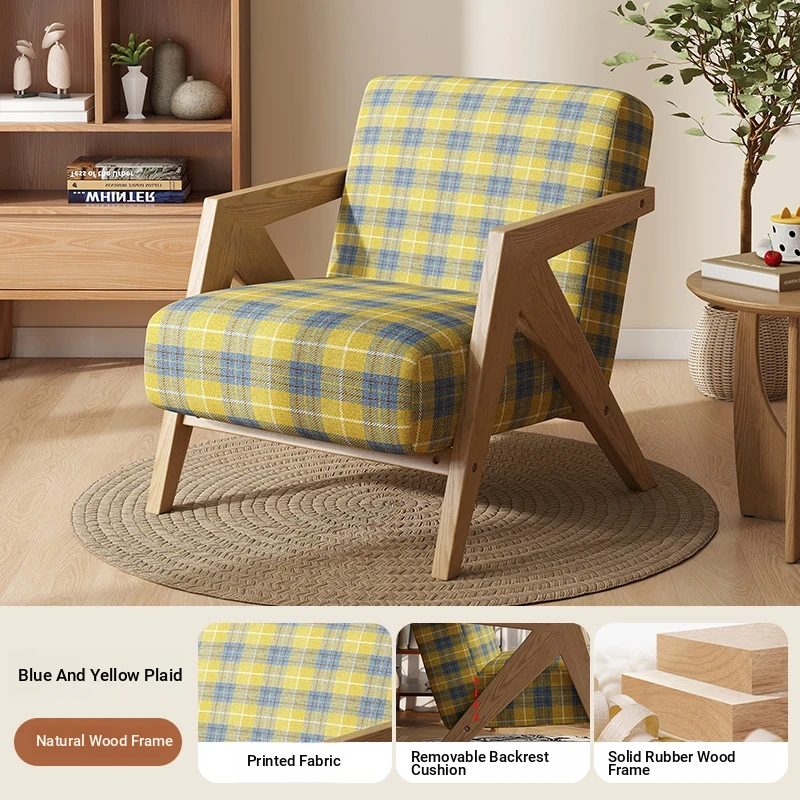 Blue and yellow check [delicate Print + log color wooden frame]]