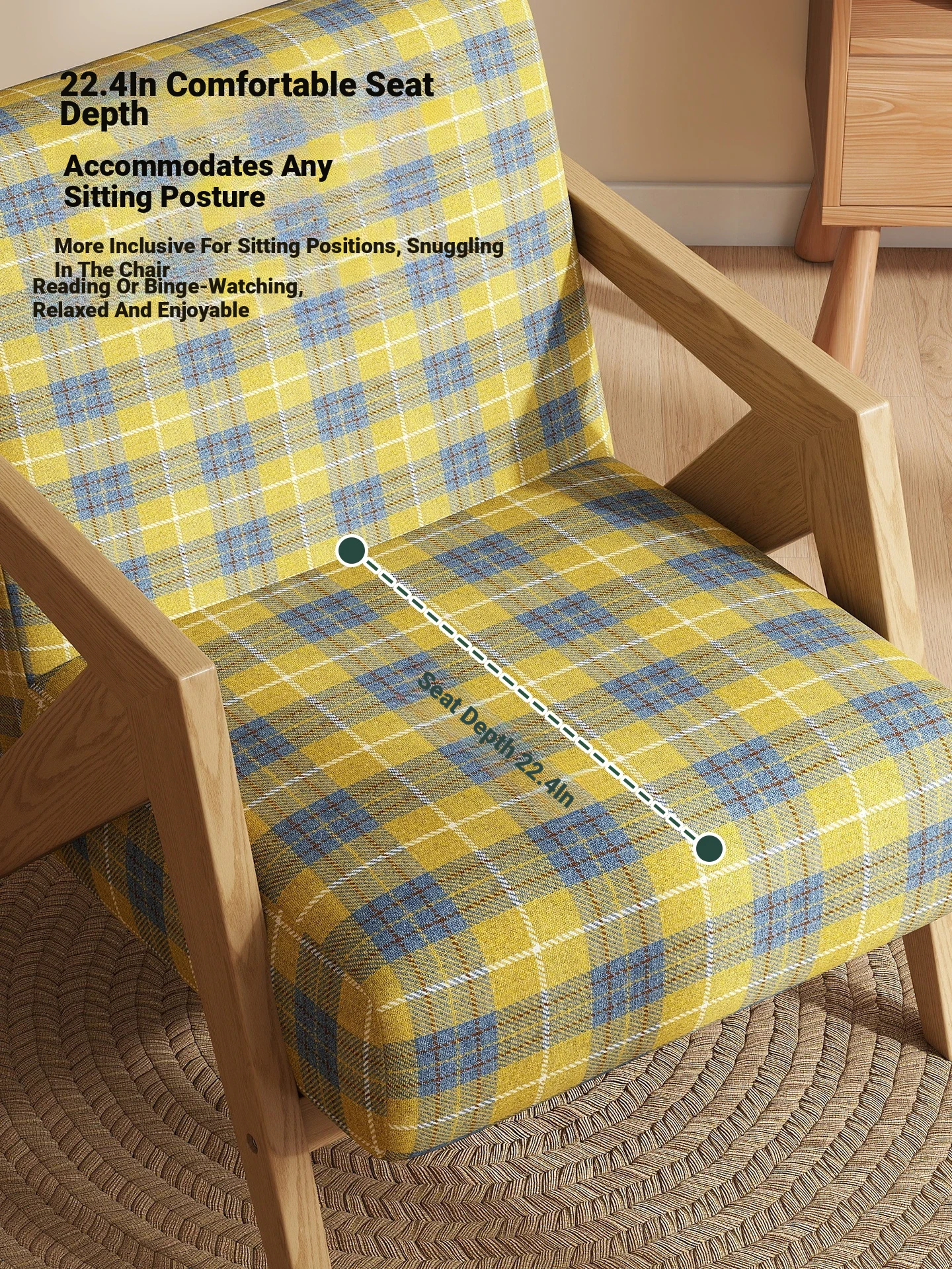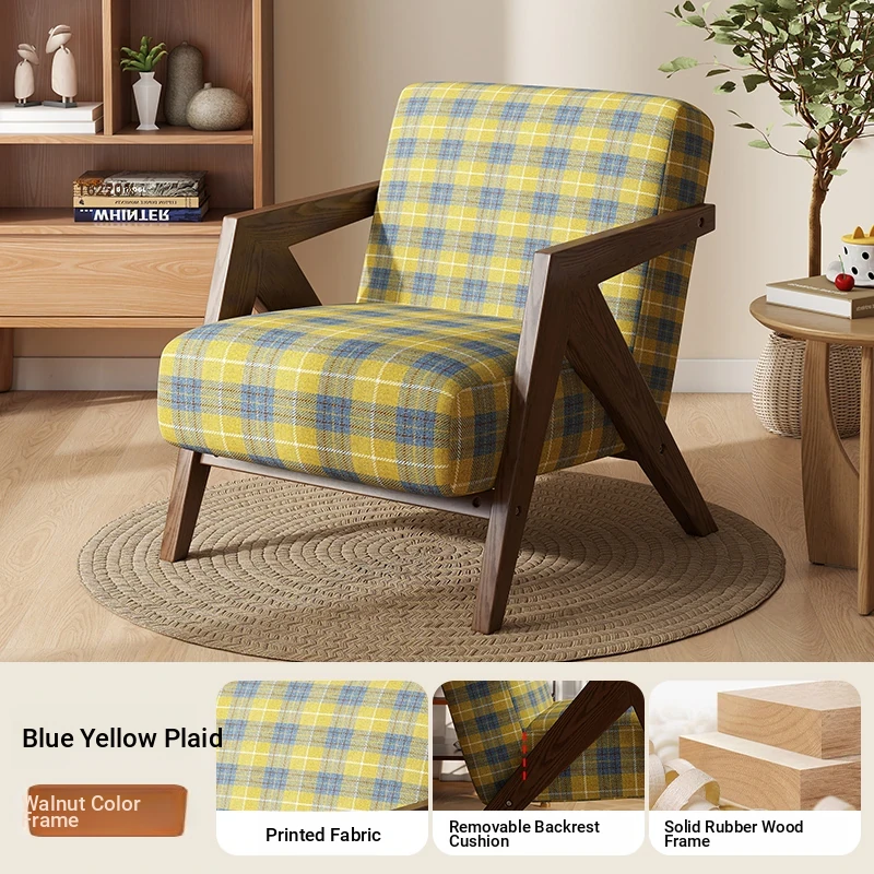 Blue and yellow check [delicate Print + walnut color wooden frame]]