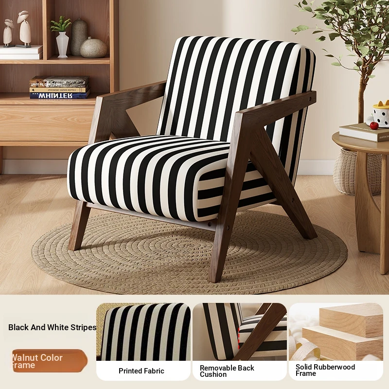 Black and white Stripes [delicate Print + walnut color wooden frame]]