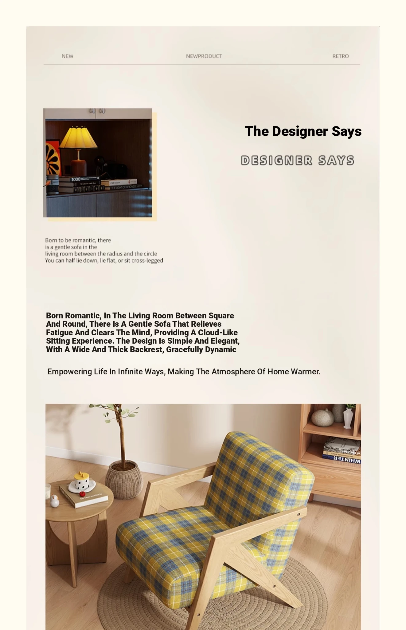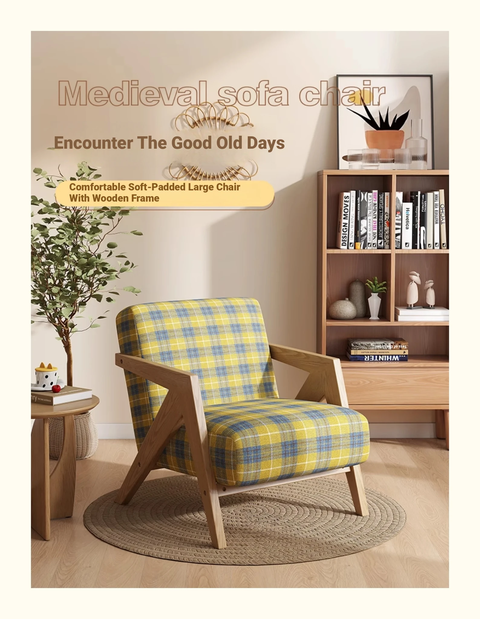 Creamy-white [Comfortable Cashmere + log color wooden frame]]